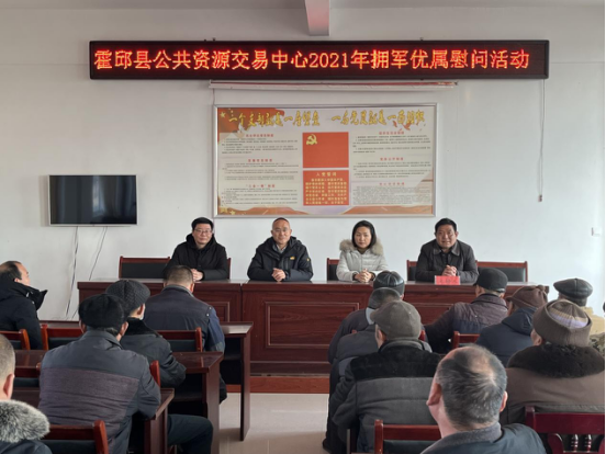 为巩固提升我县双拥模范县创建成果,积极响应县双拥委号召,12月29日在2022年元旦节即将到来之际,霍邱县公共资源交易中心主任、双拥工作领导小组组长彭顶山带领我中心双拥慰问小组成员赴乌龙镇松树庙村开展拥军优属慰问退伍军人及家庭活动。