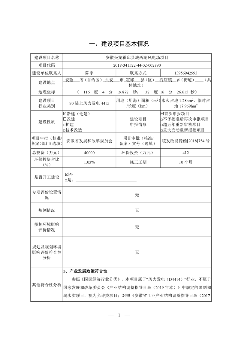 关于安徽兴龙霍邱县城西湖风电场项目环境影响报告表受理公示