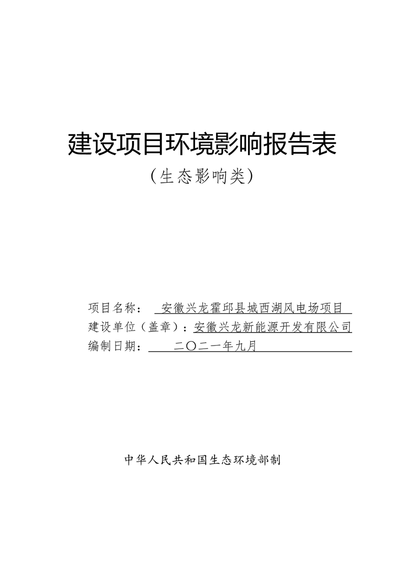 根据建设项目环境影响评价审批程序的有关规定,2021年9月9日我局受理了《安徽兴龙霍邱县城西湖风电场项目环境影响报告表》,现将受理情况予以公示,本次公示的起止时间:自公告发布之日起5个工作日。