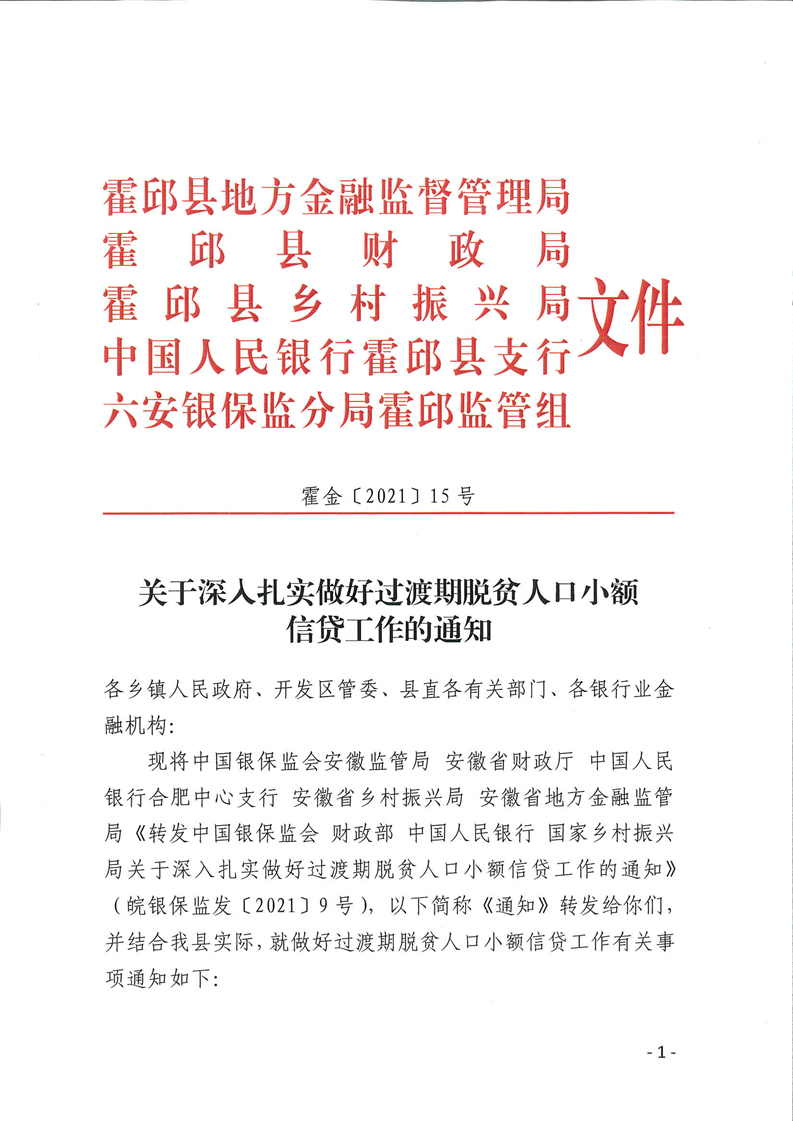 关于深入扎实做好过渡期脱贫人口小额信贷工作的通知