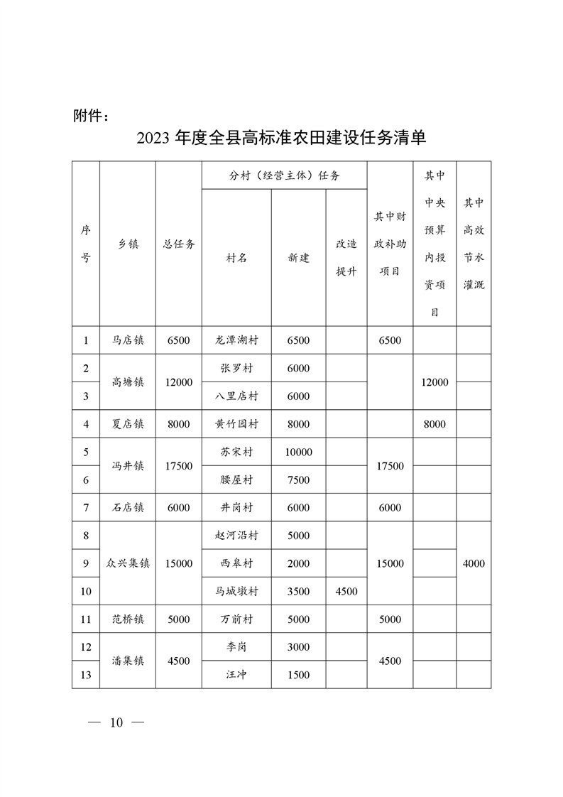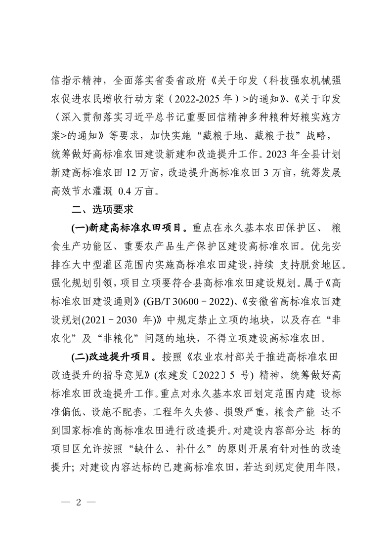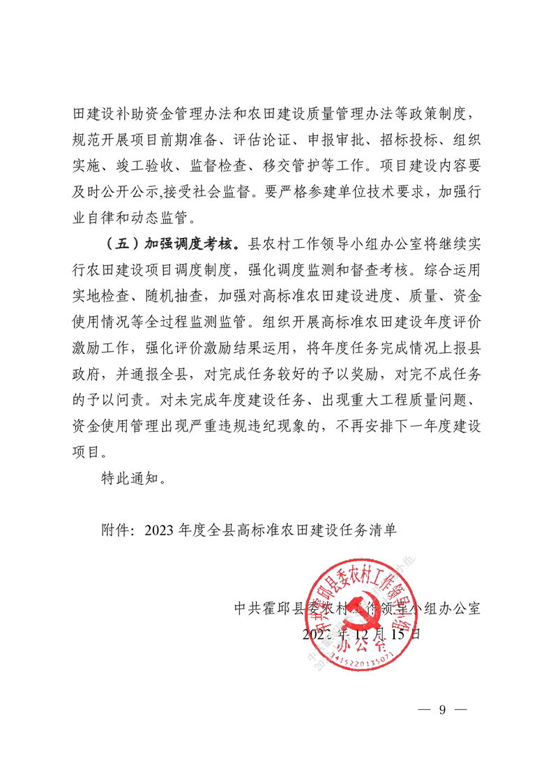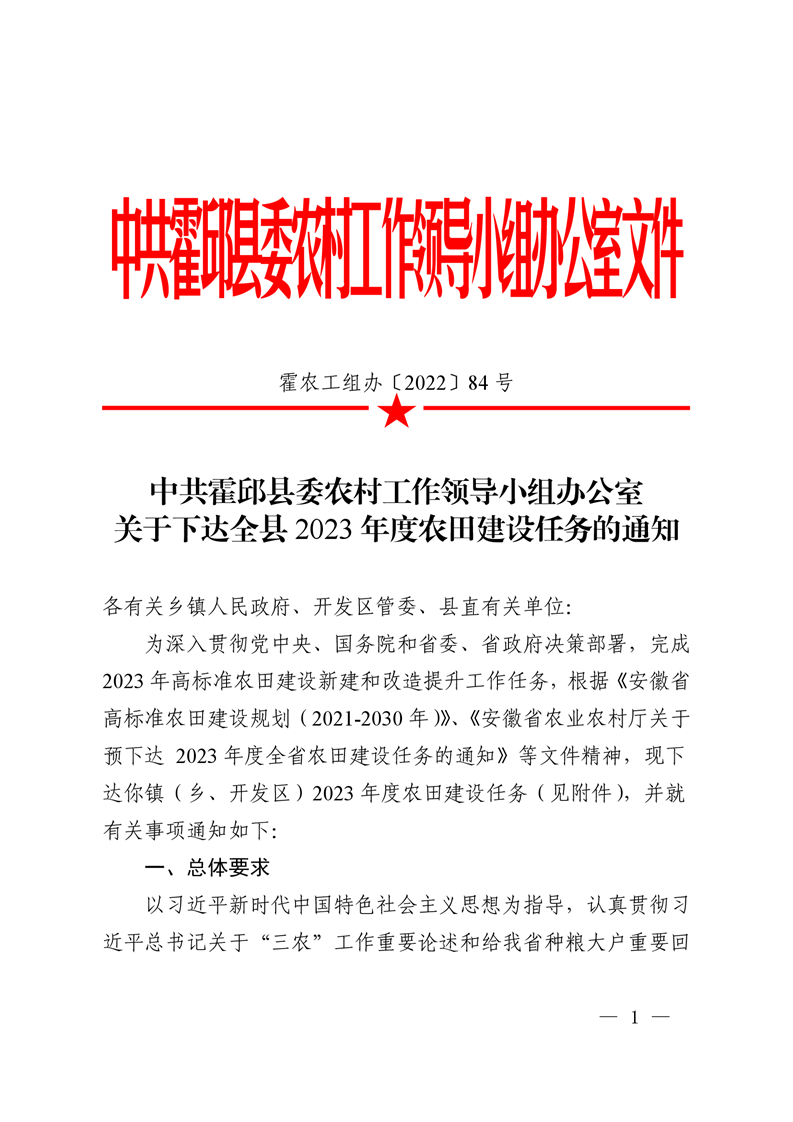 中共霍邱县委农村工作领导小组办公室关于下达全县2023年度农田建设任务的通知