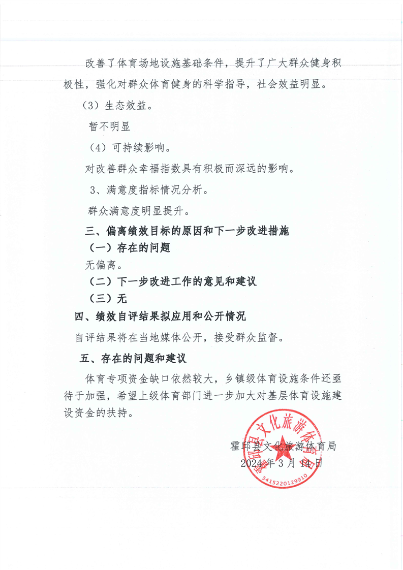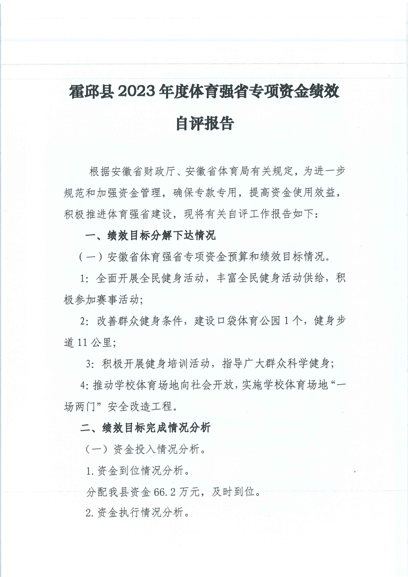 霍邱县2023年度体育强省专项资金绩效自评报告