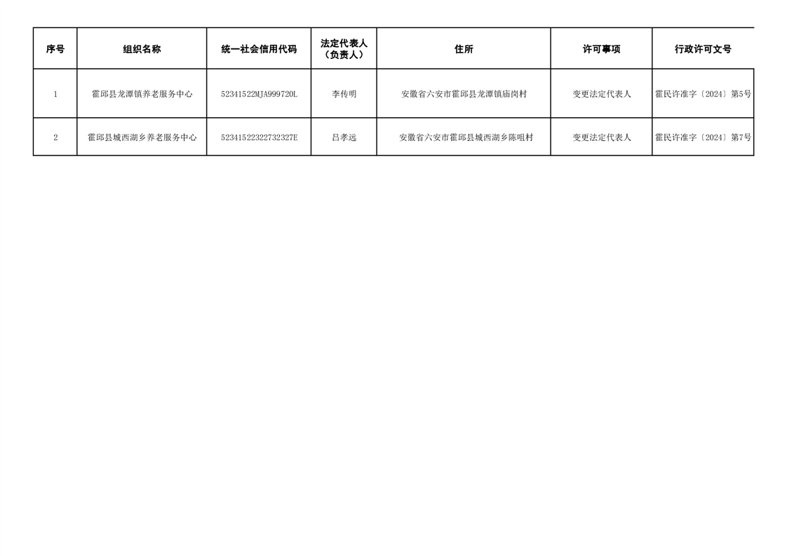 霍邱县2024年第一季度民办非企业单位成立登记、变更、注销登记信息