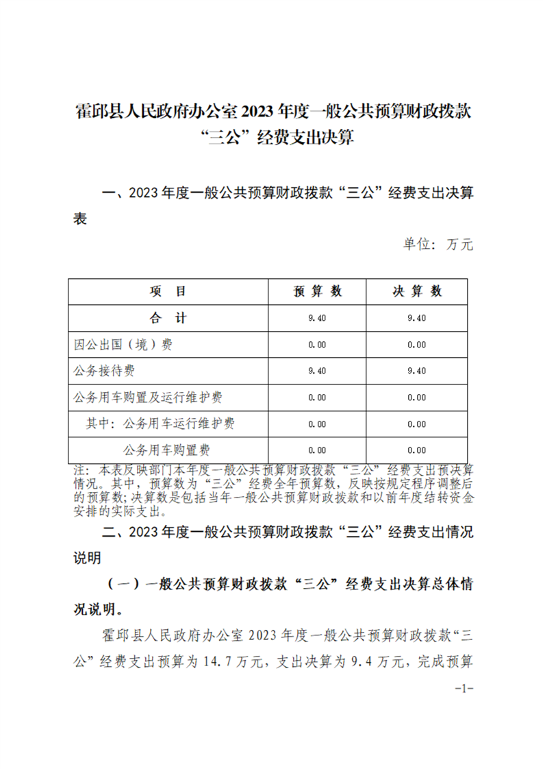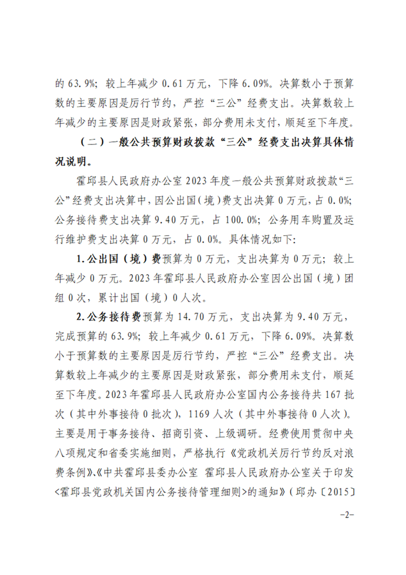 霍邱县人民政府办公室2023年度一般公共预算财政拨款“三公”经费支出决算