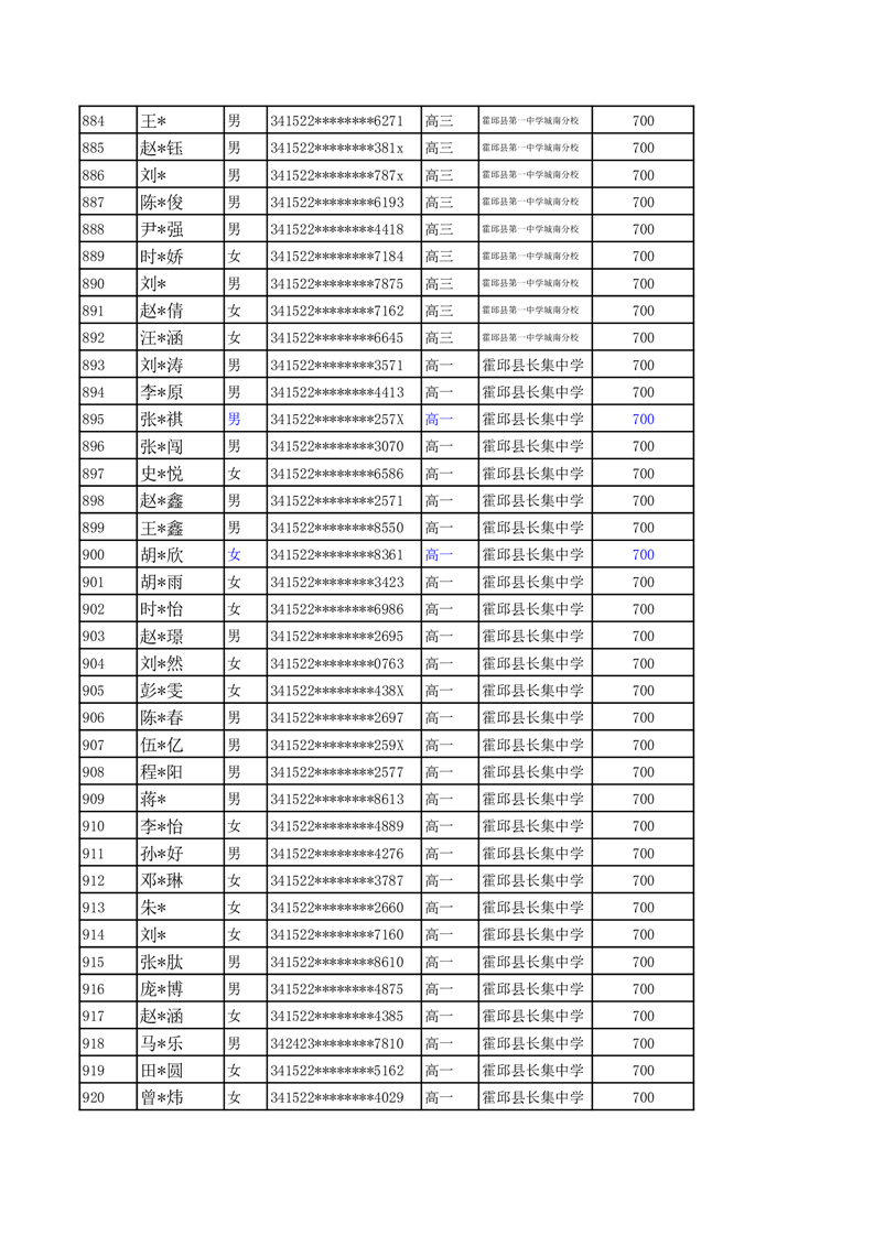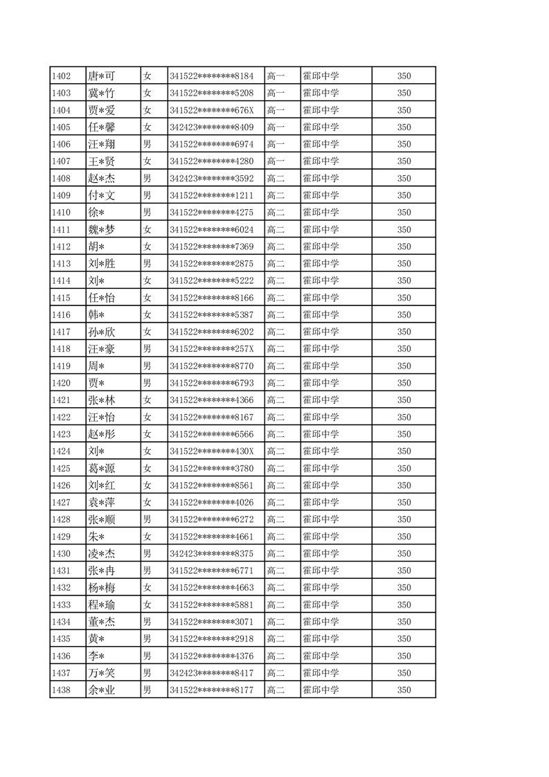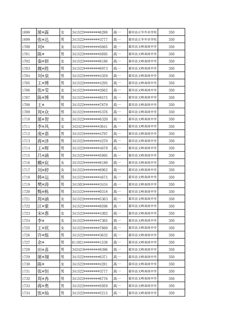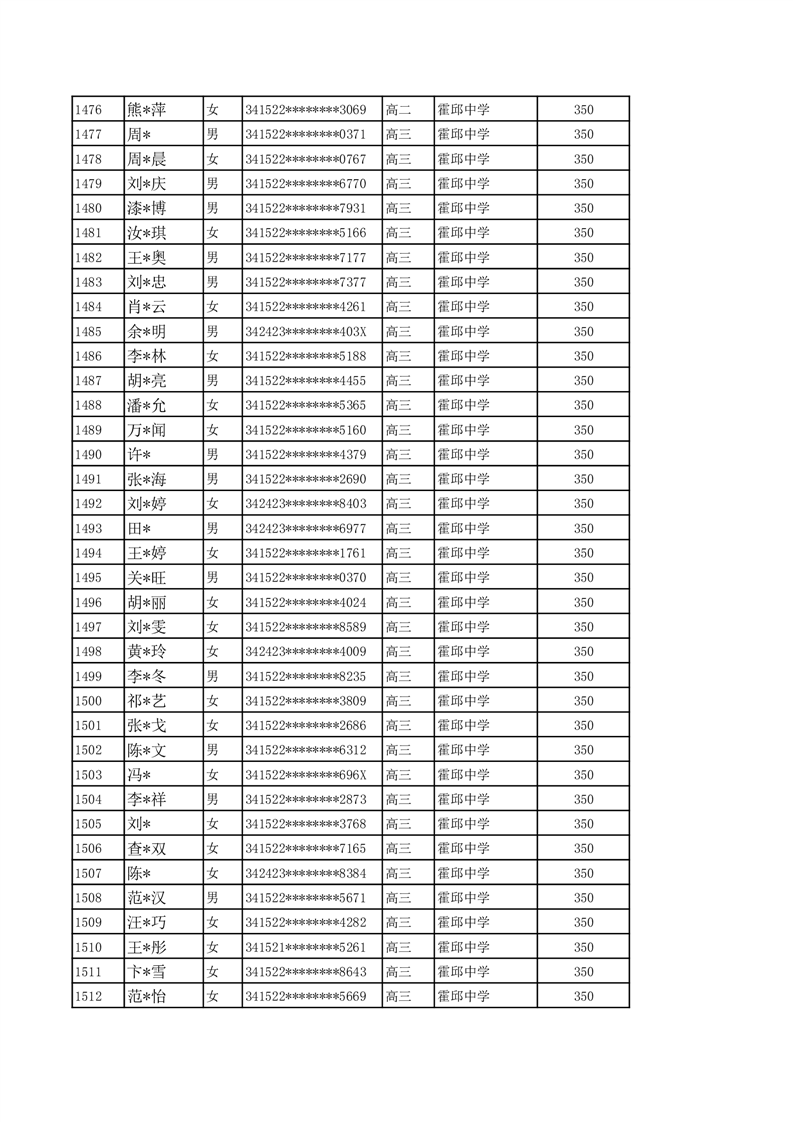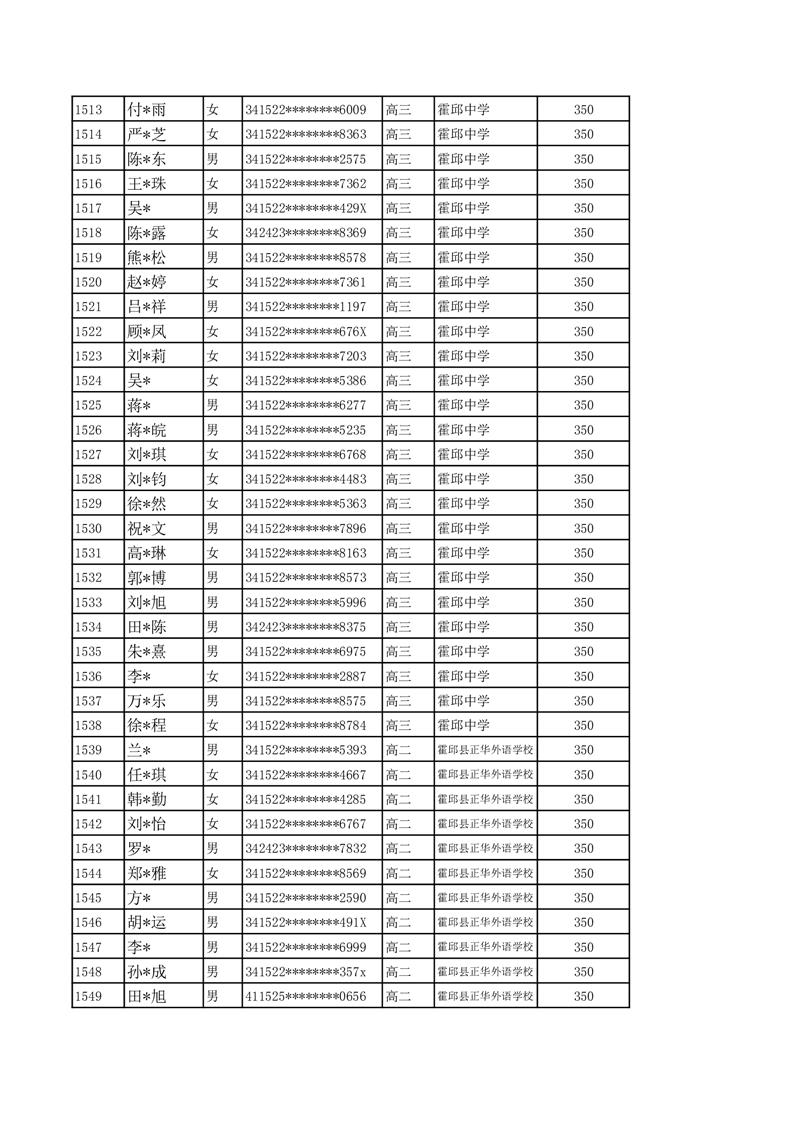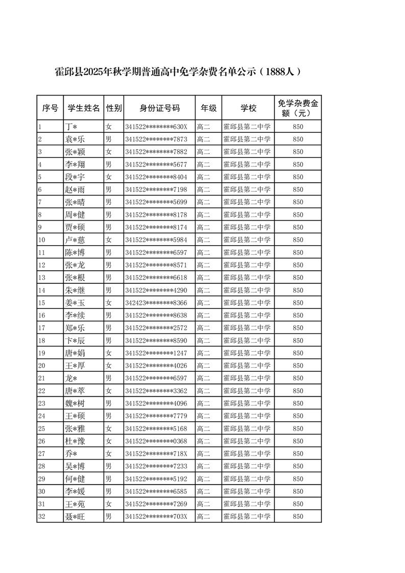 霍邱县2025年秋学期普通高中免学杂费名单公示(1888人)