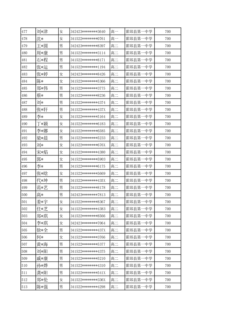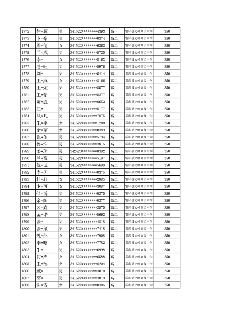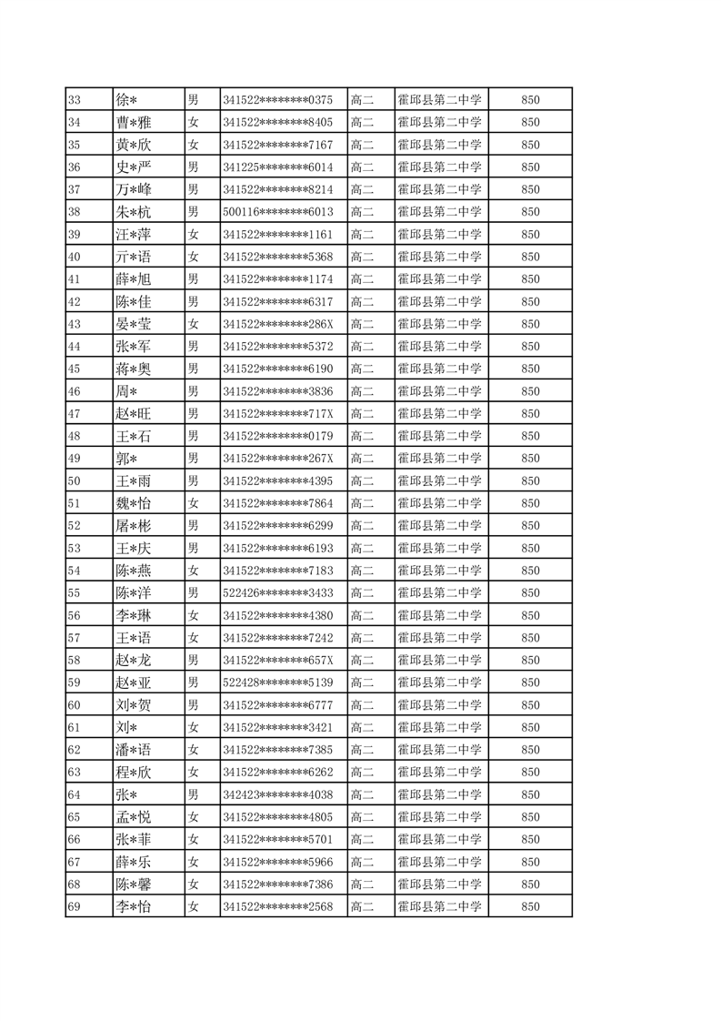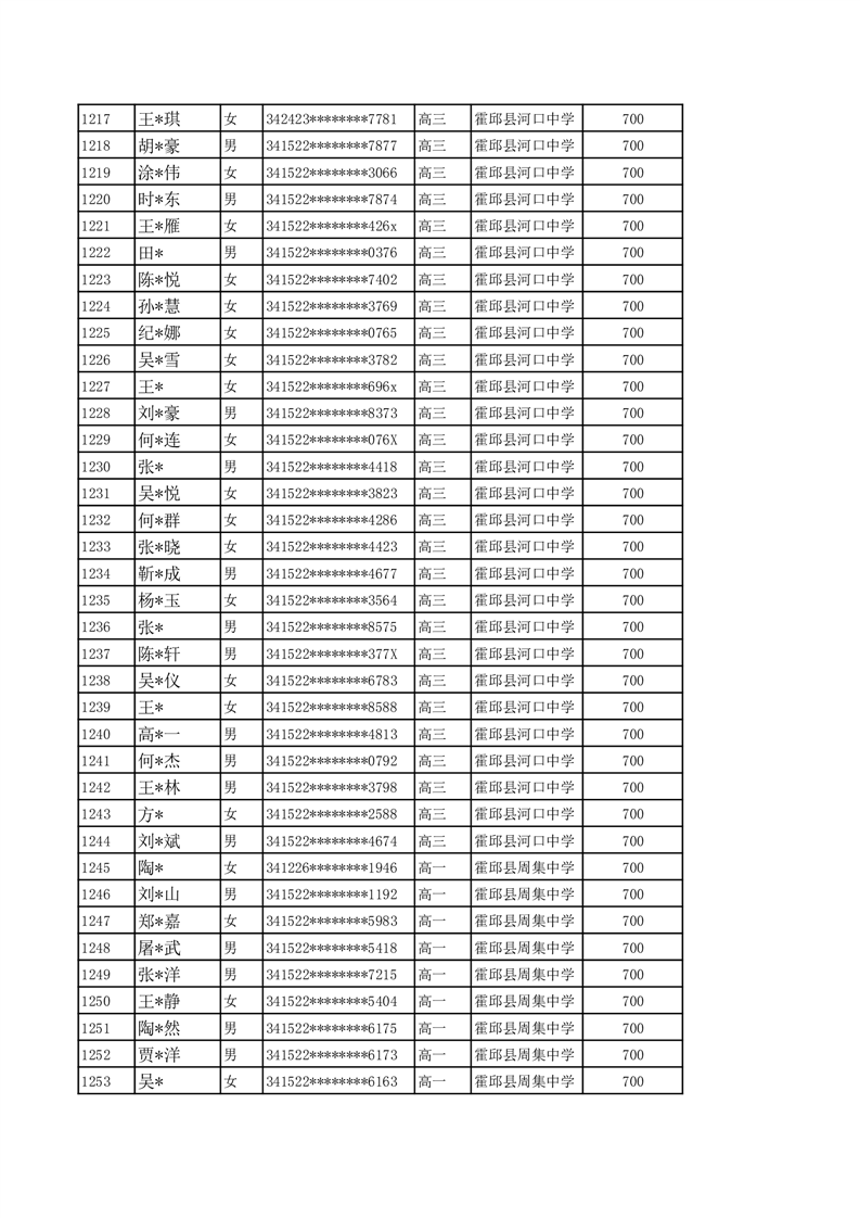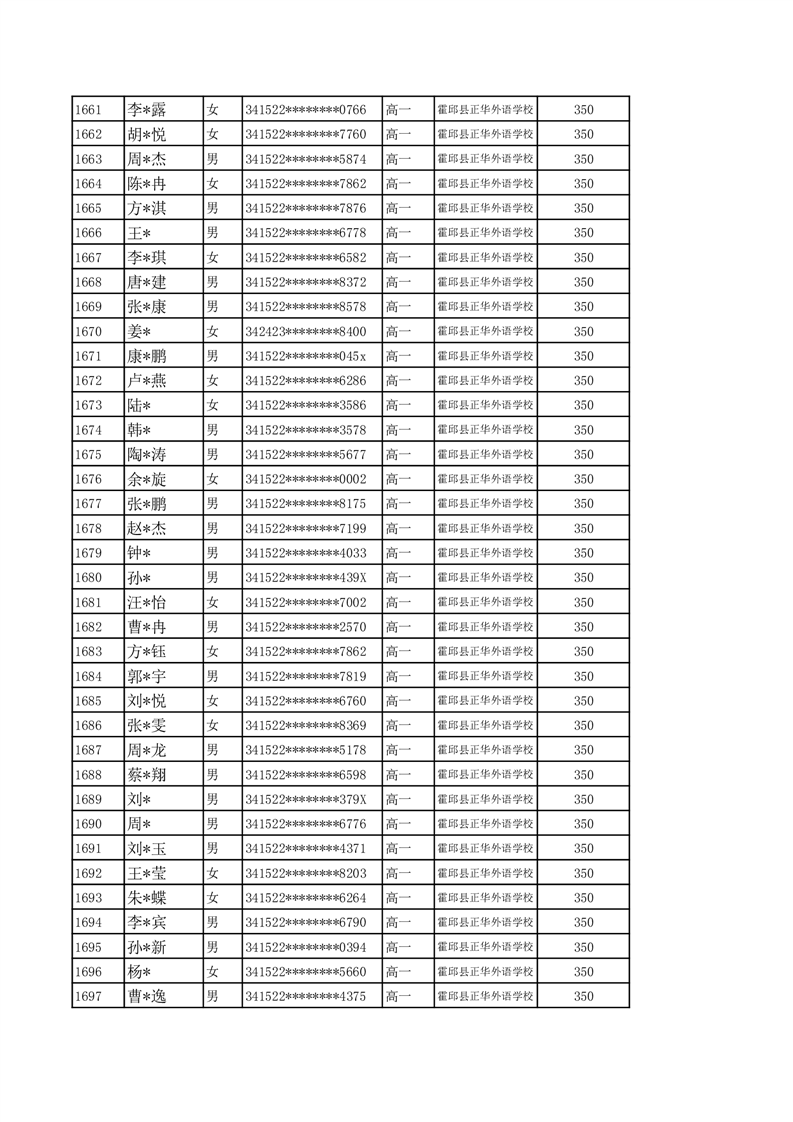 霍邱县2025年秋学期普通高中免学杂费名单公示(1888人)