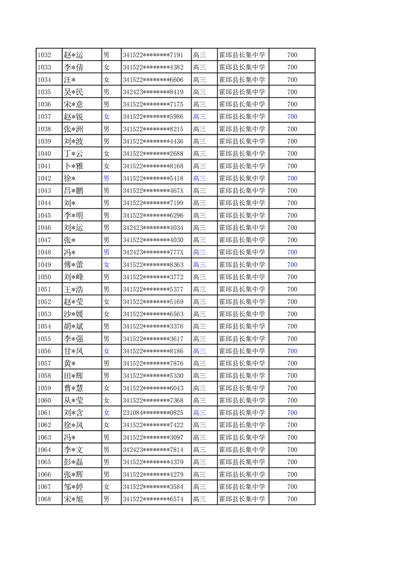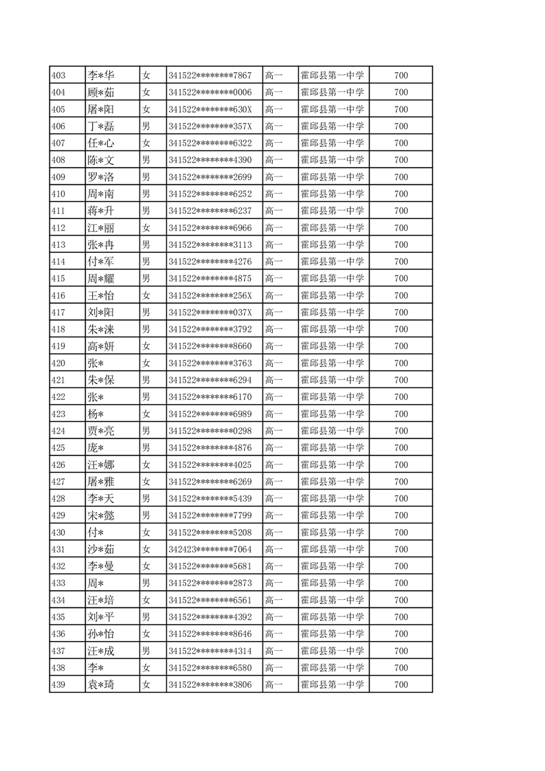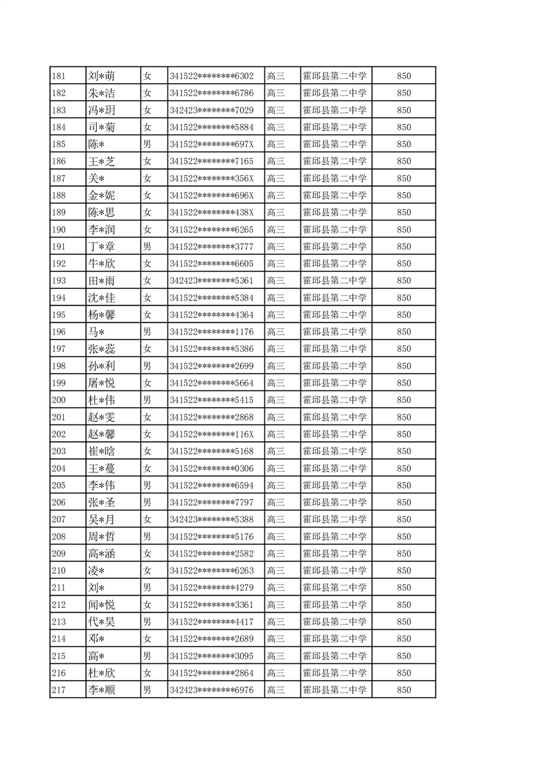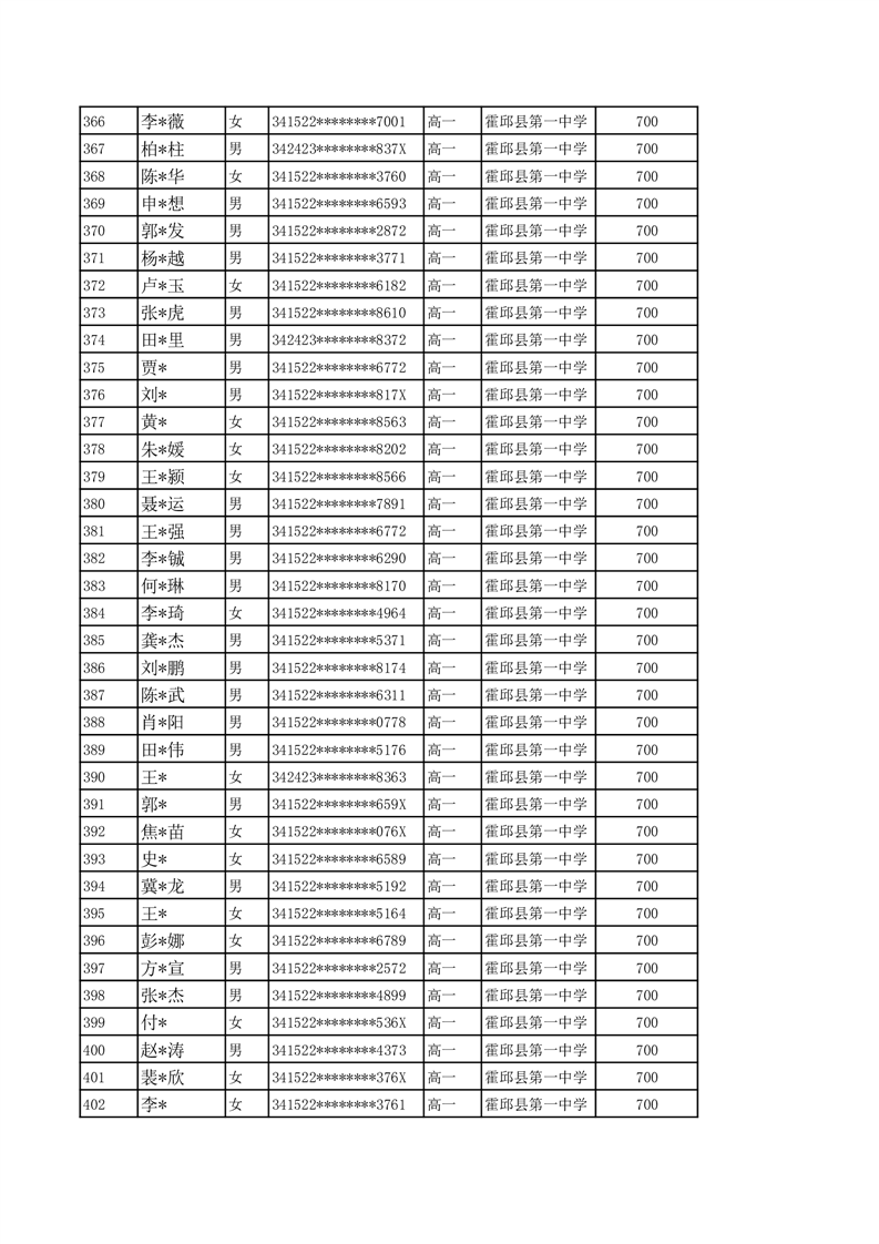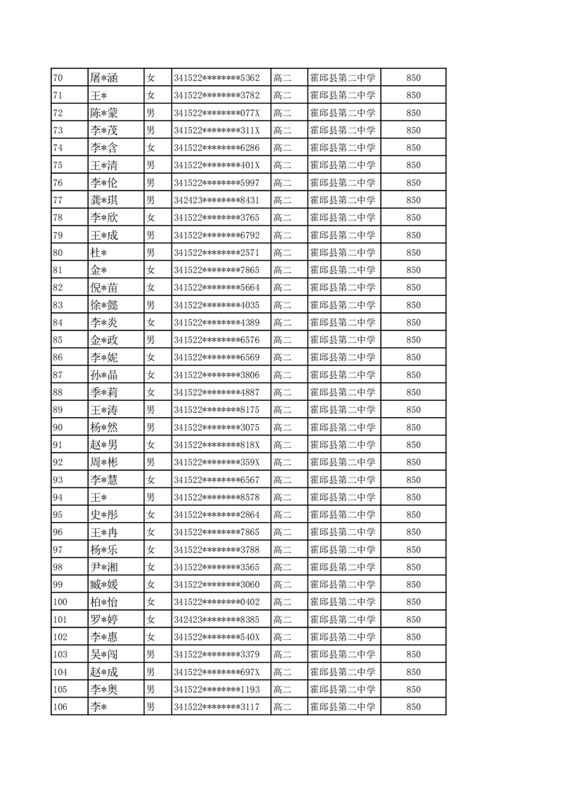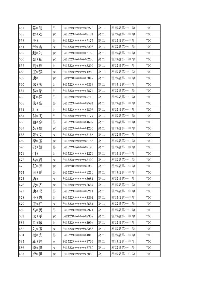 霍邱县2025年秋学期普通高中免学杂费名单公示(1888人)