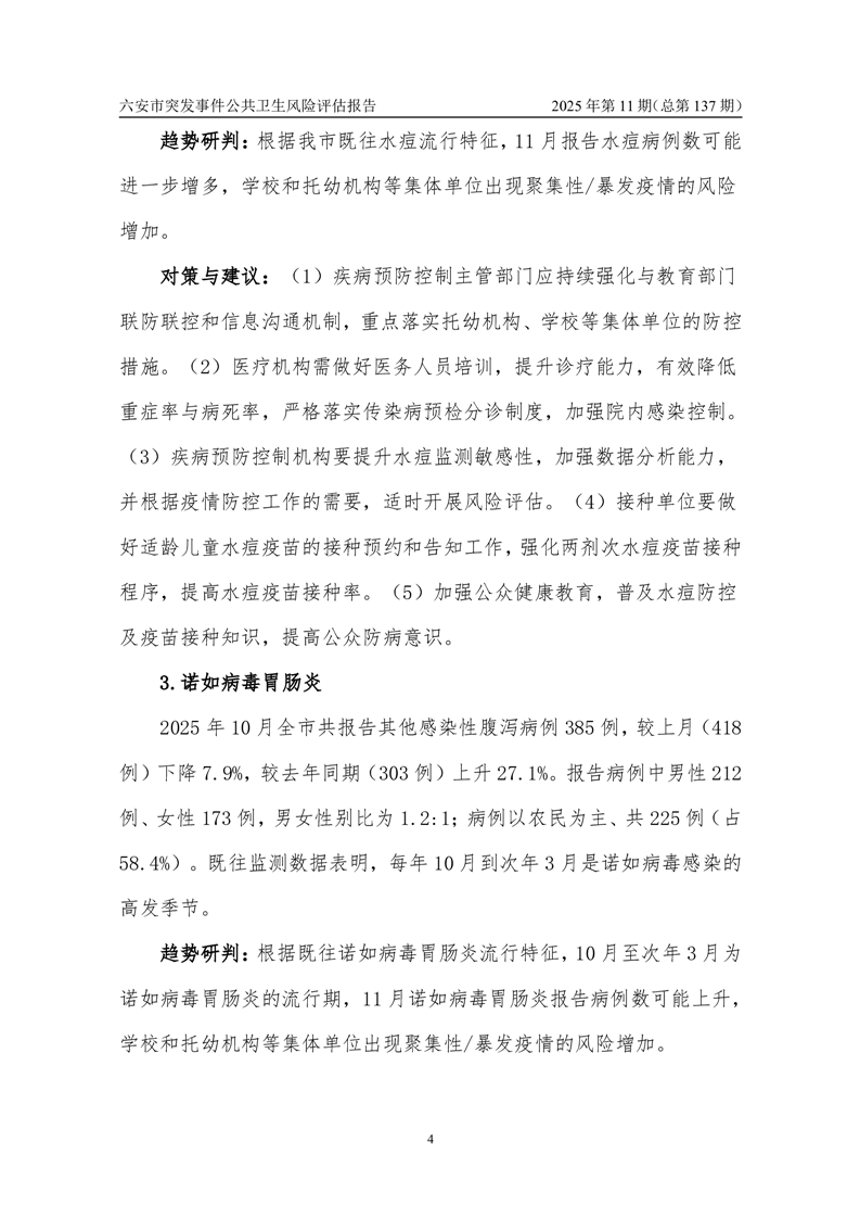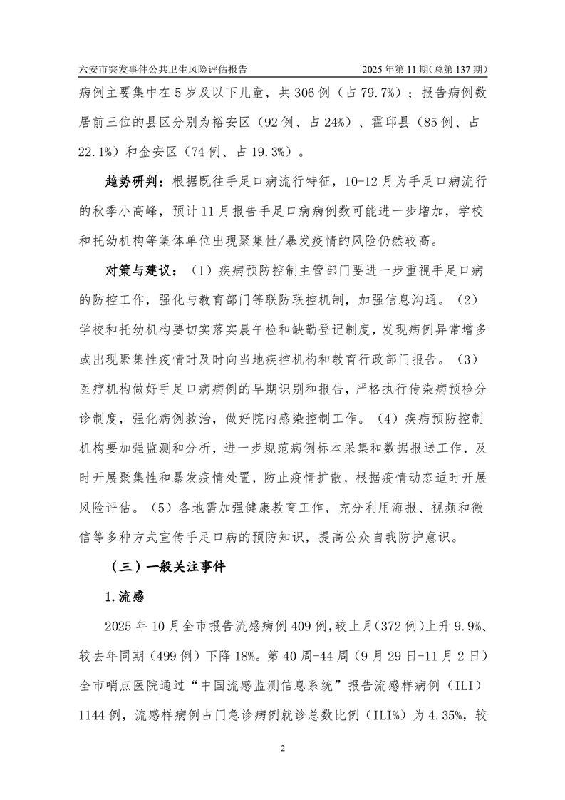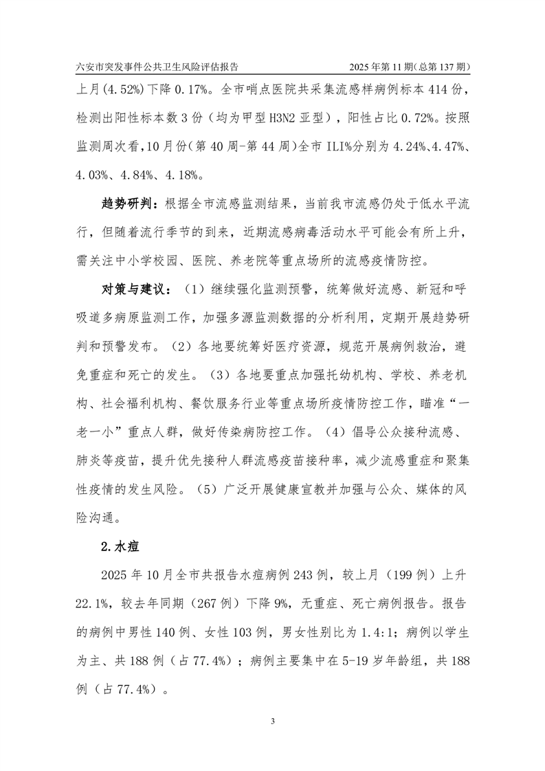 【预警信息】2025年11月份六安市突发公共卫生事件预警信息及对策建议