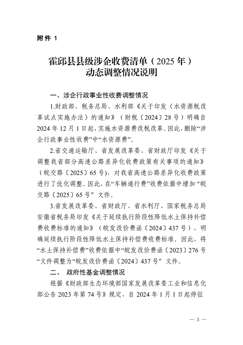附件:1.霍邱县县级涉企收费清单(2025年)动态调整情况说明