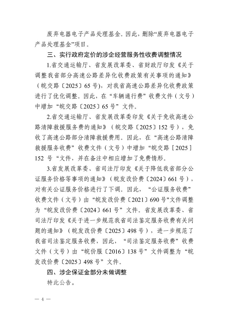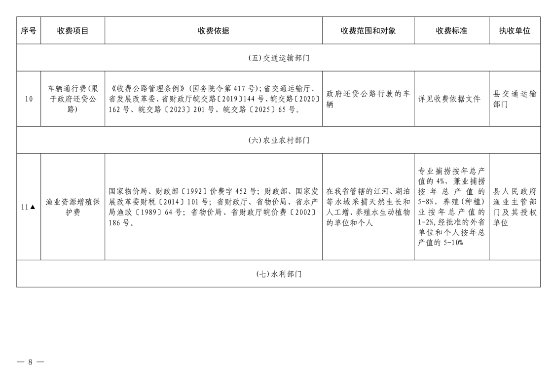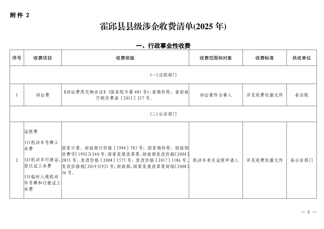 根据《六安市发展和改革委员会六安市财政局六安市工业和信息化局关于公布六安市市级涉企收费清单(2025年)的通知》(六发改价格〔2025〕232号)和《霍邱县人民政府关于公布霍邱县县级涉企收费清单的通知》(霍政〔2015〕1号)要求,经对照有关法律法规、收费政策及县级权责清单变化情况,县发改委、县财政局、县工信局按照职责分工,对现行的霍邱县涉企收费清单进行了动态调整。现将《霍邱县县级涉企收费清单(2025年本)》予以公布。