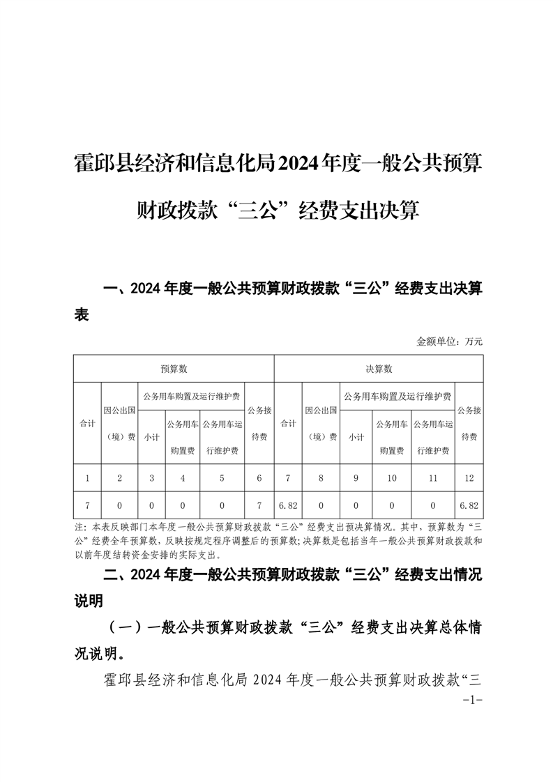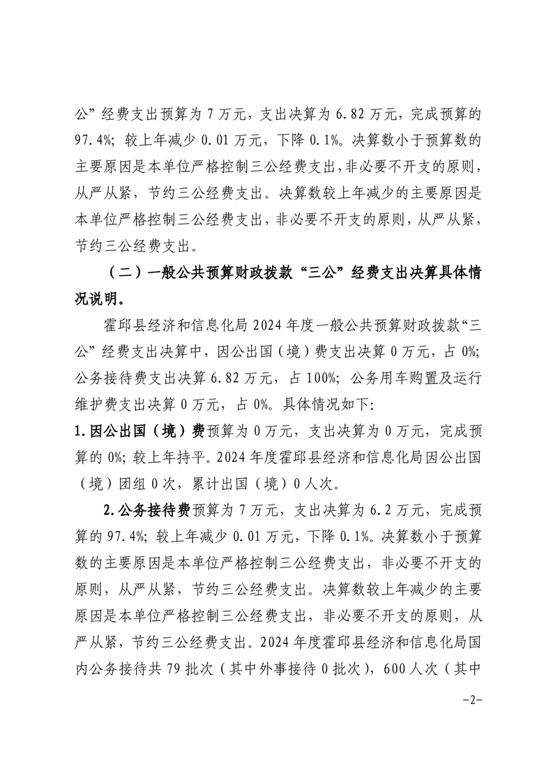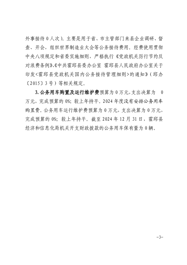 霍邱县工业和信息化局2024年度一般公共预算财政拨款“三公”经费支出决算