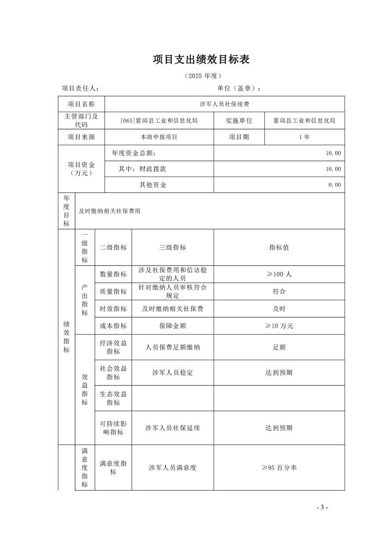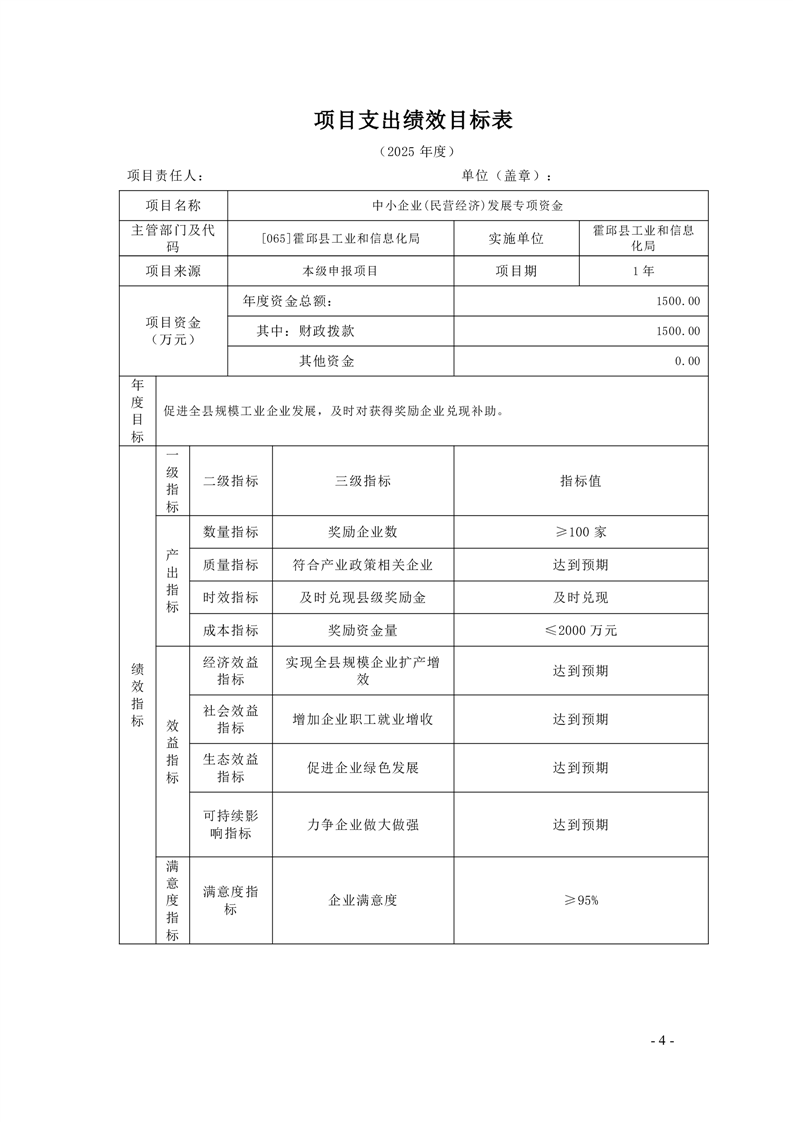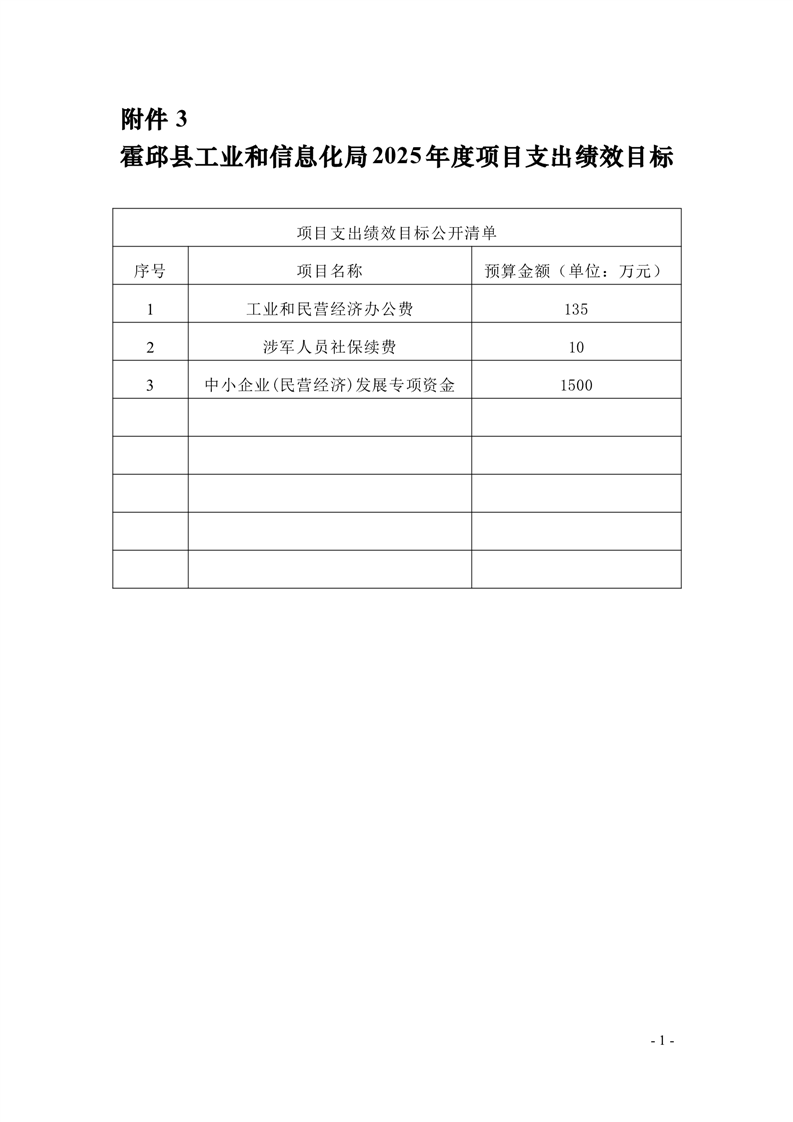 霍邱县工业和信息化局2025年项目支出绩效目标