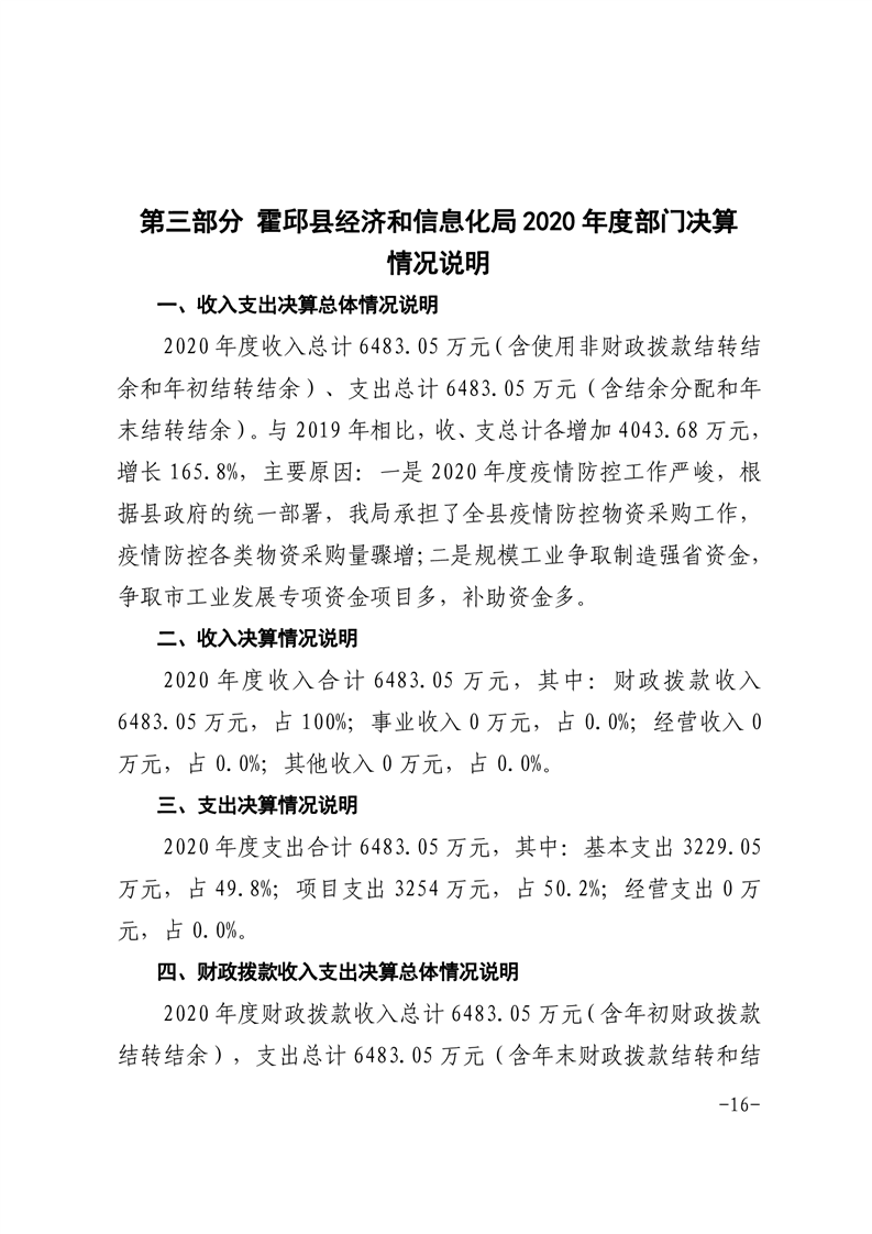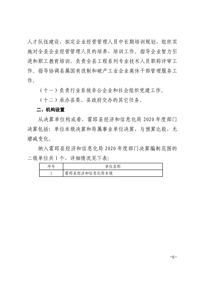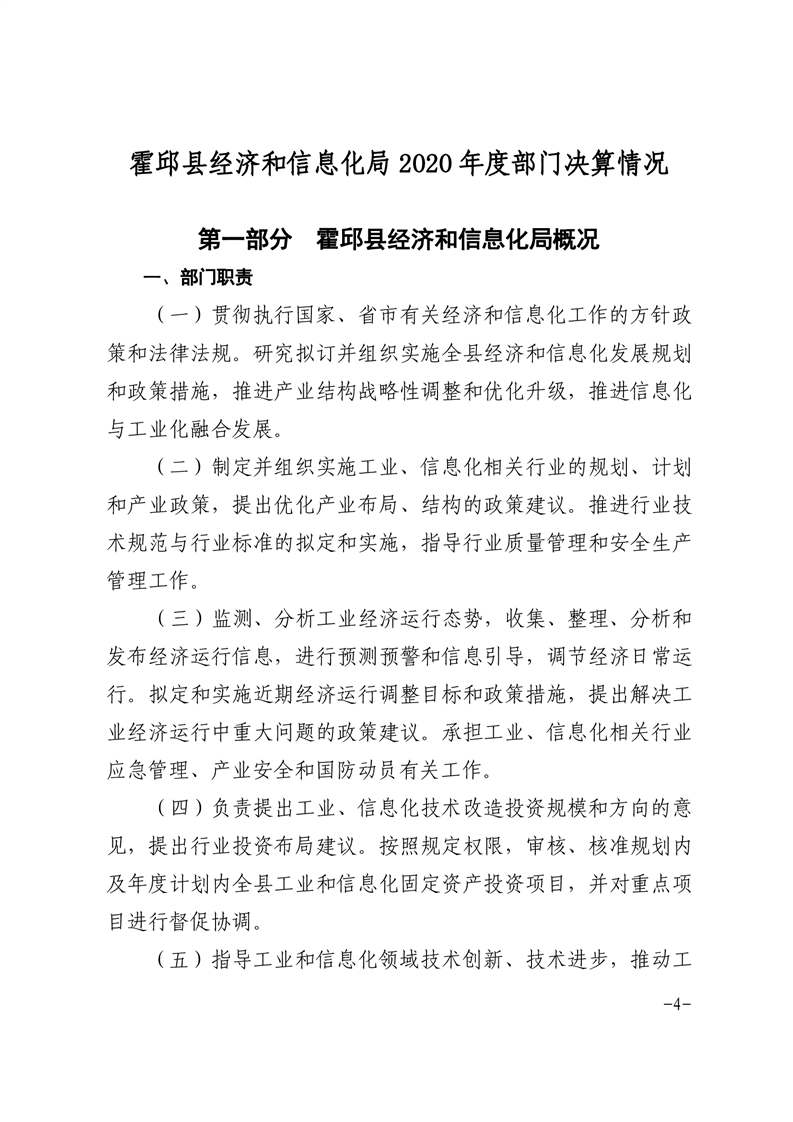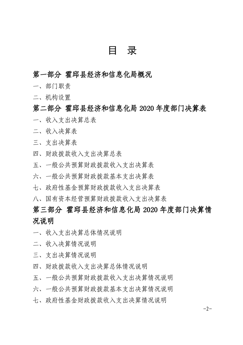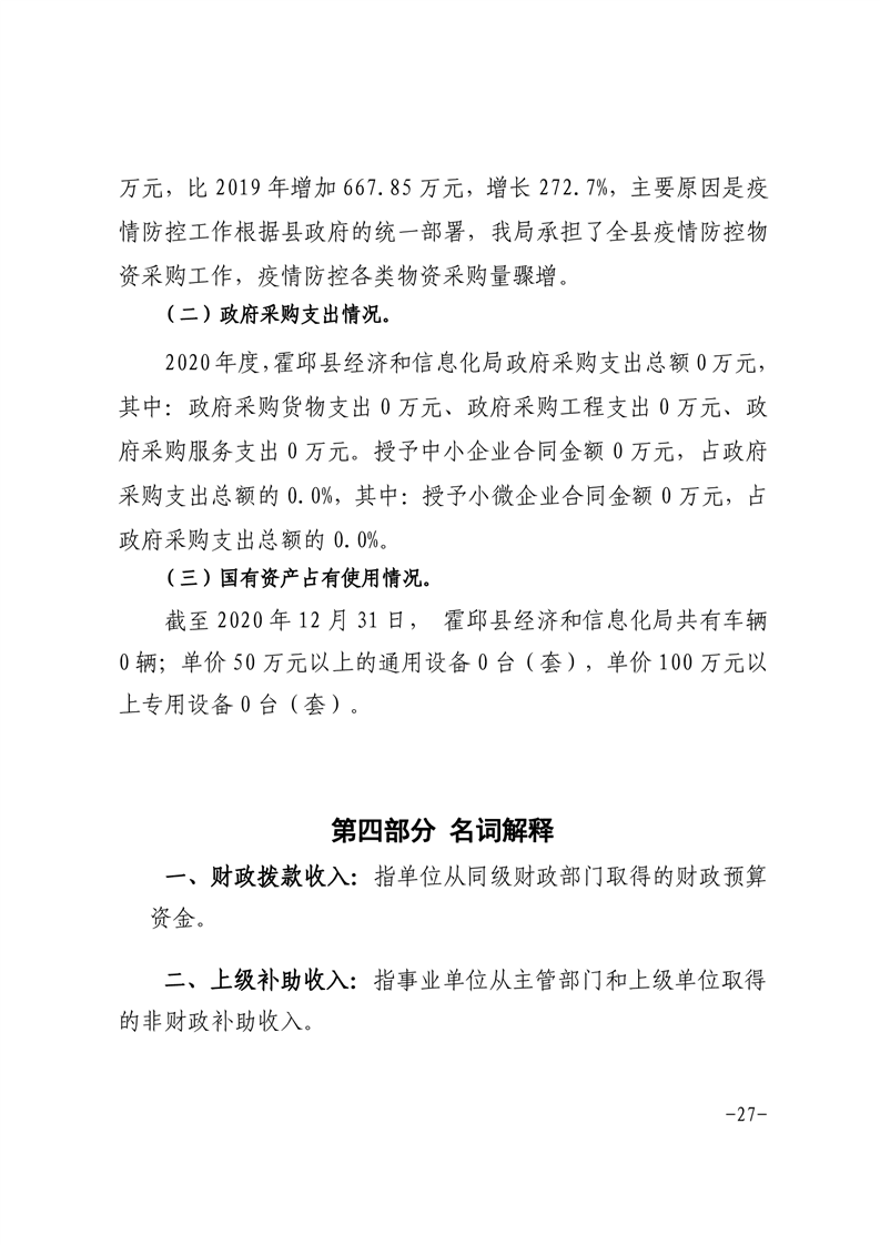 霍邱县经济和信息化局2020年度部门决算