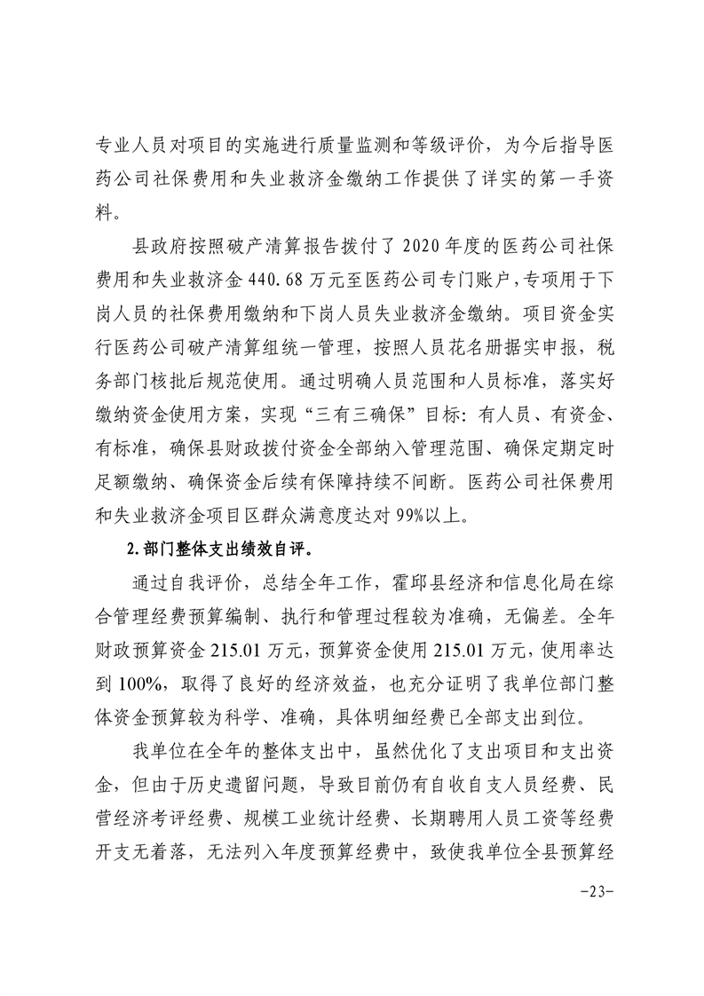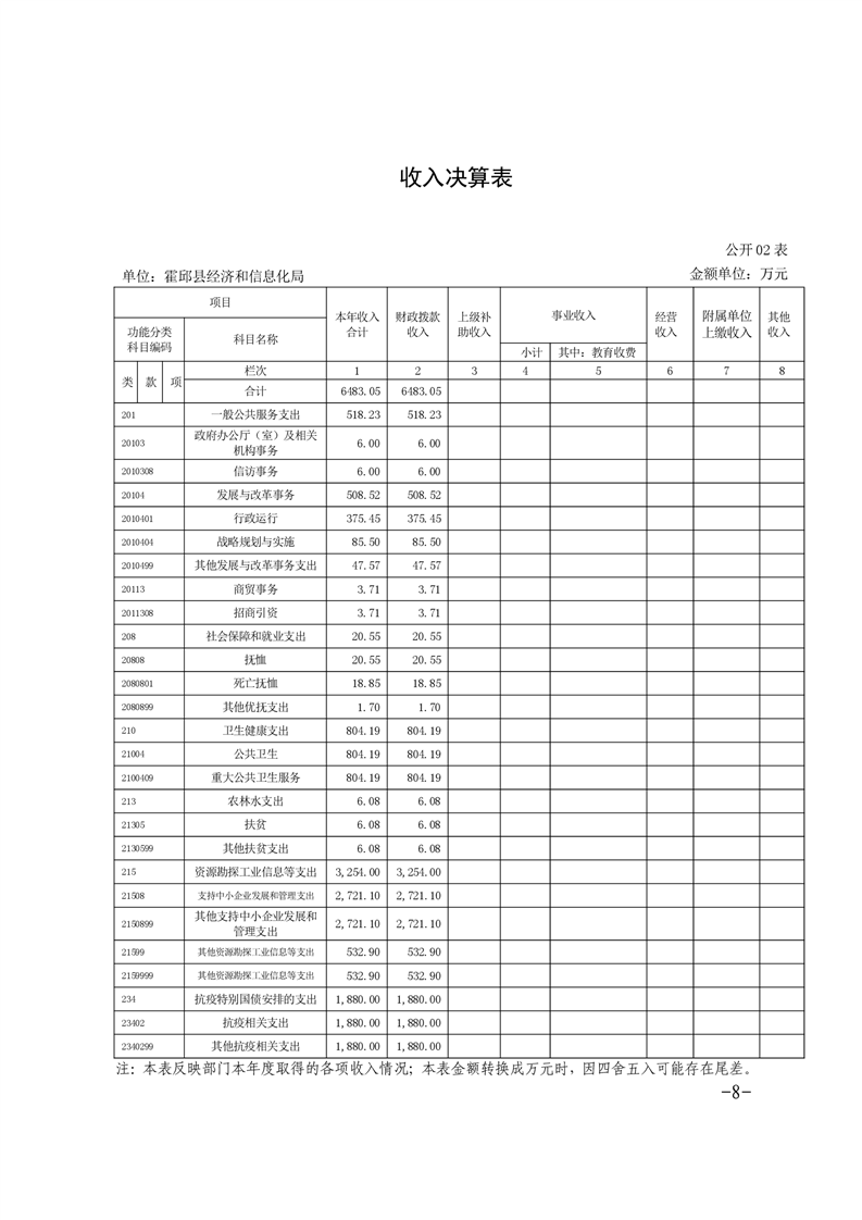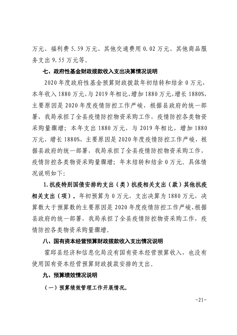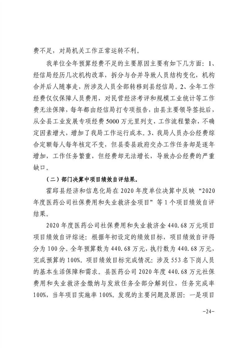 霍邱县经济和信息化局2020年度部门决算