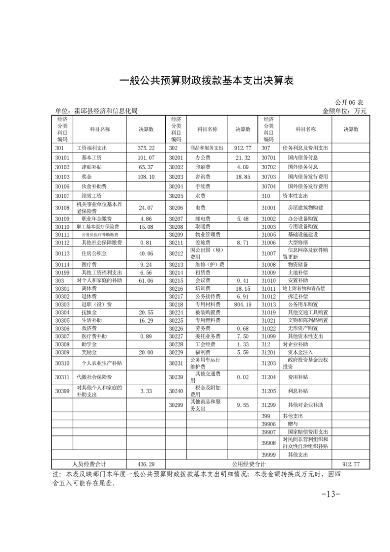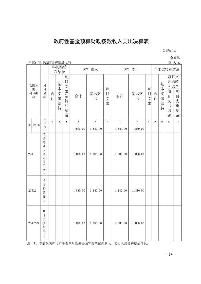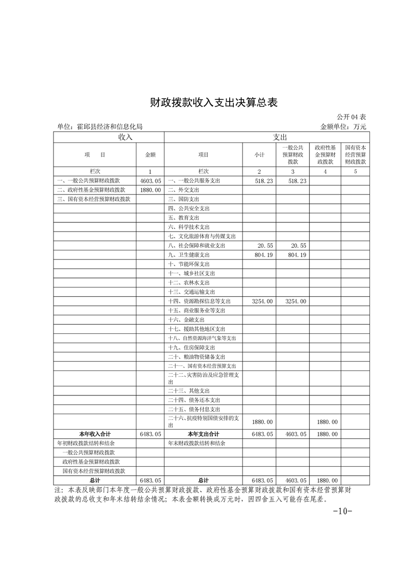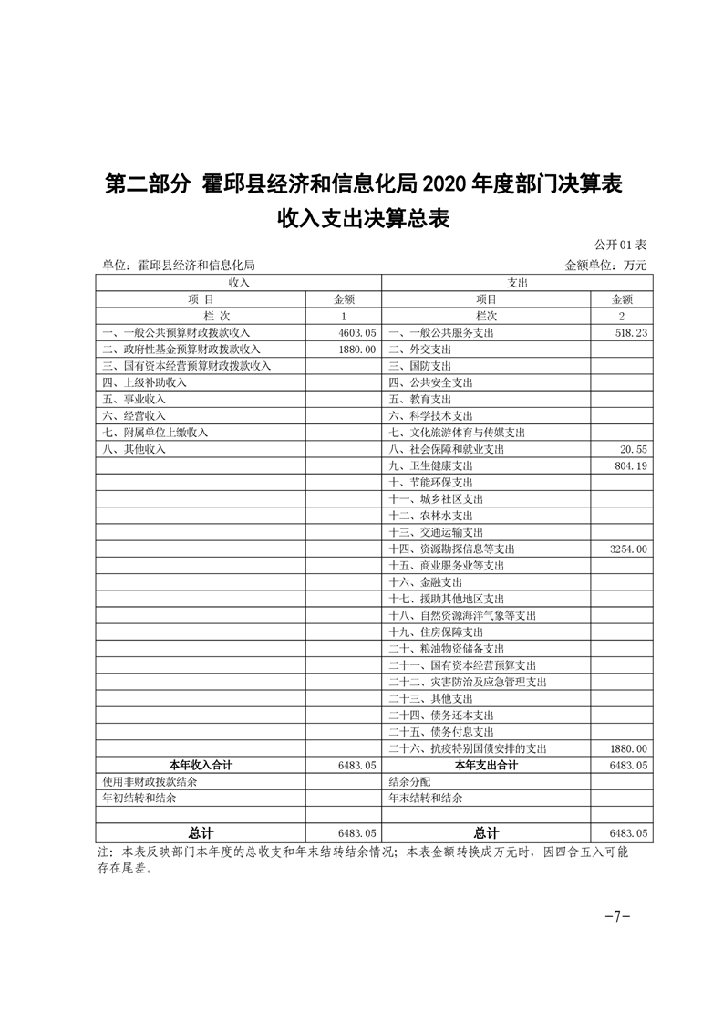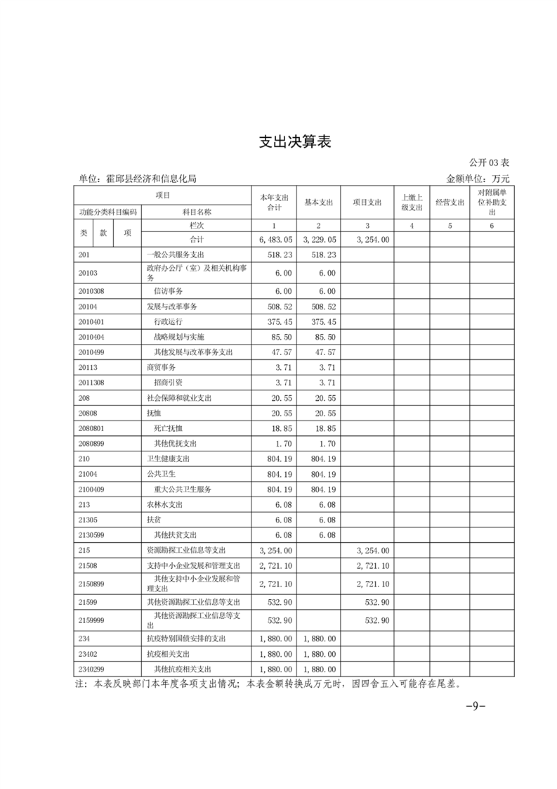 霍邱县经济和信息化局2020年度部门决算