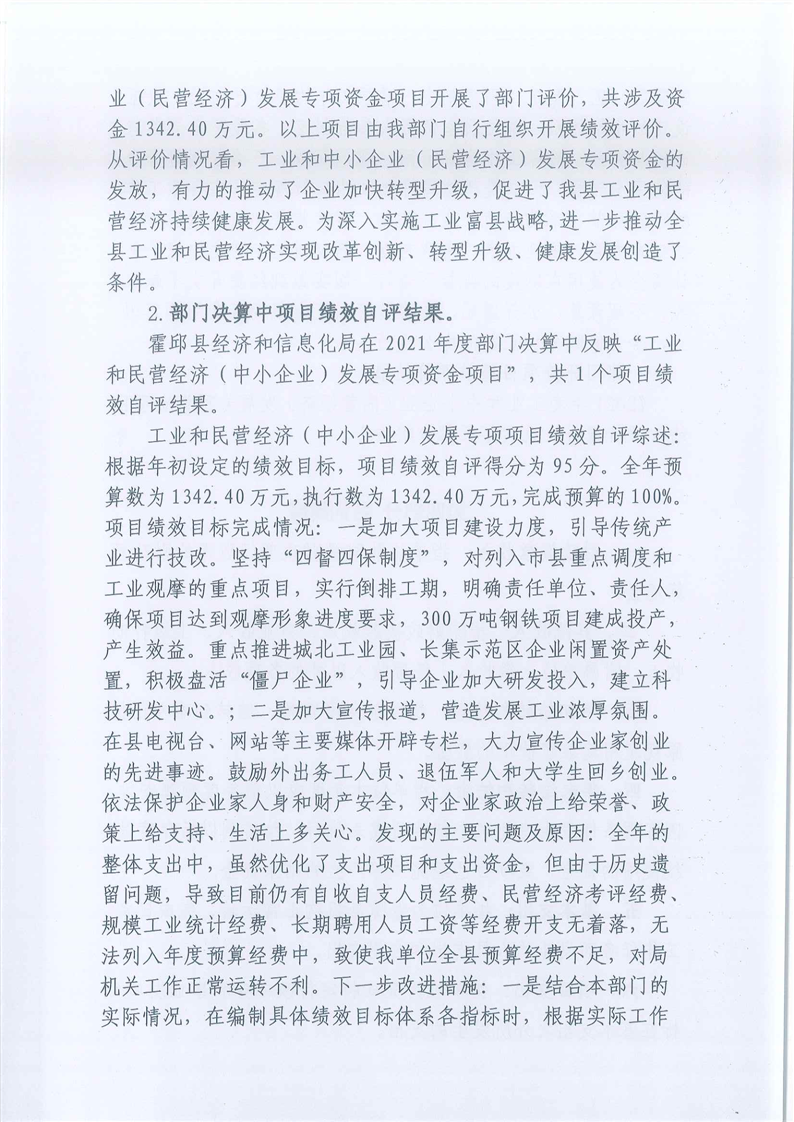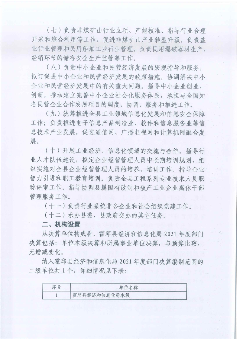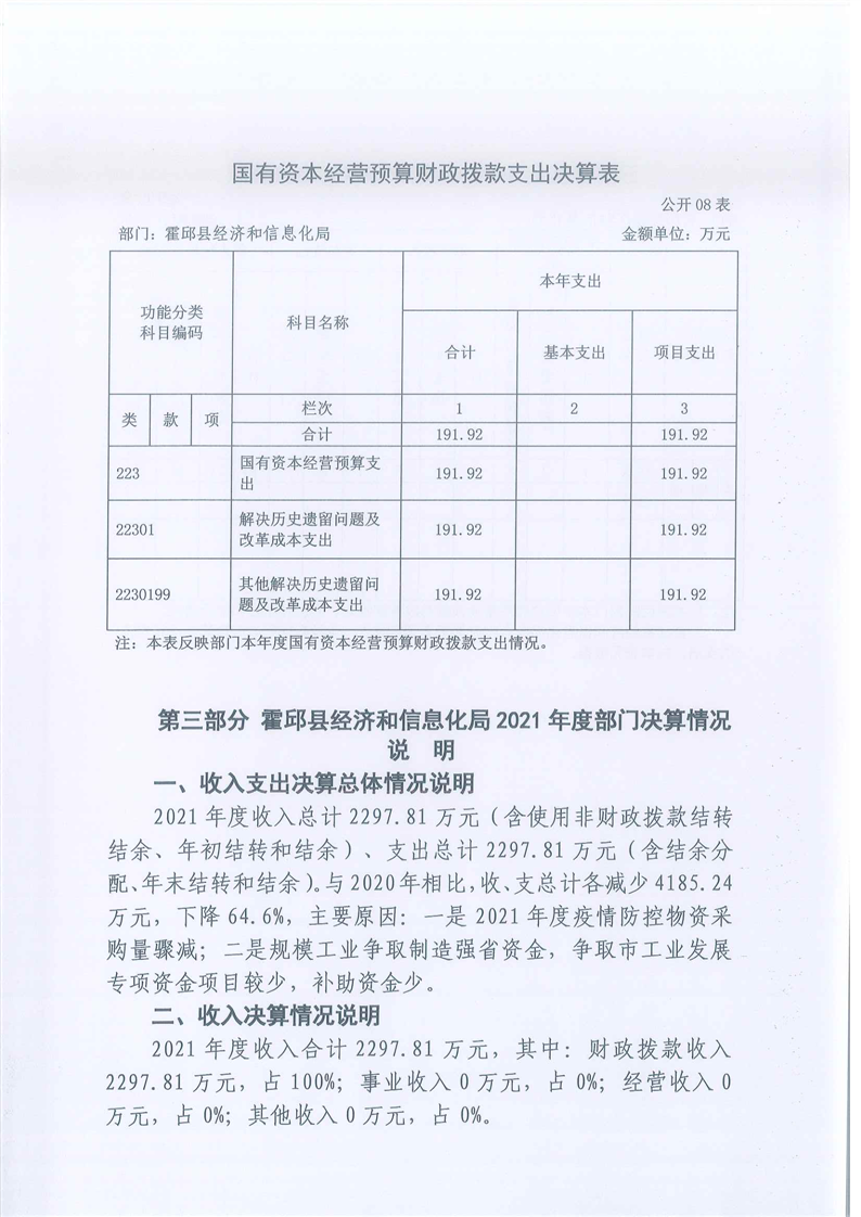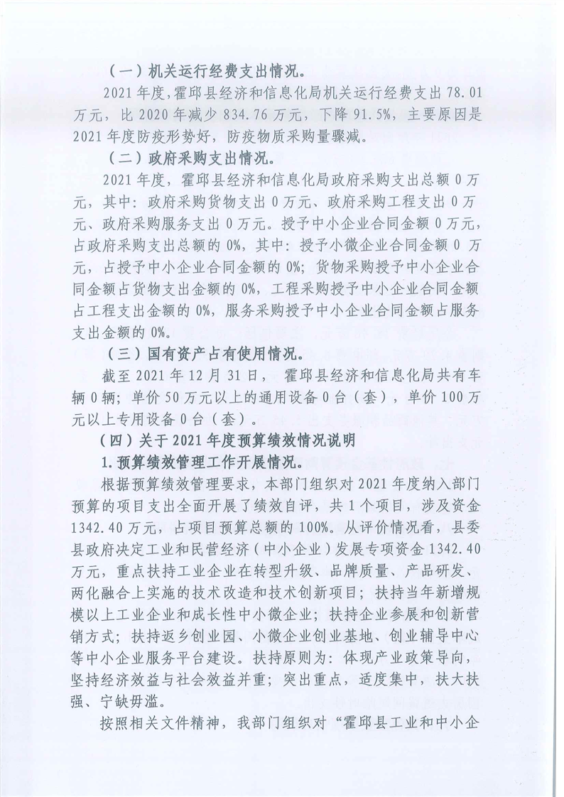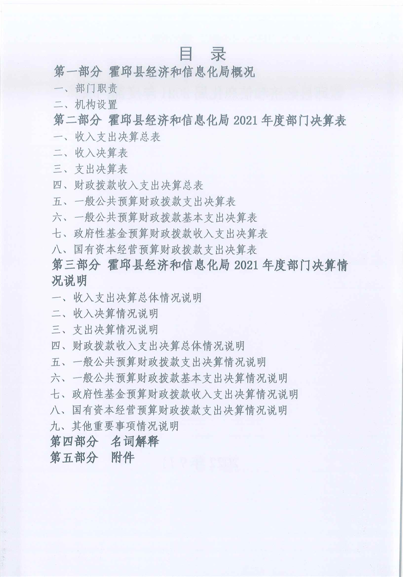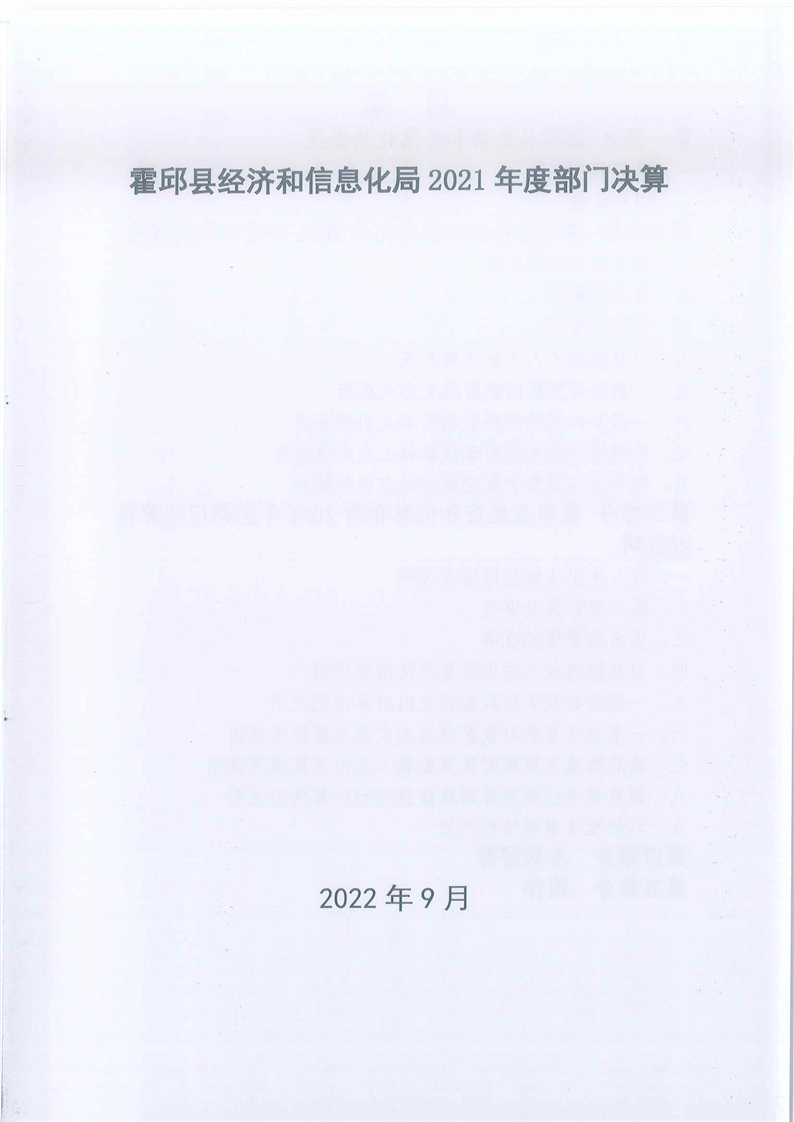 霍邱县经济和信息化局2021年度部门决算