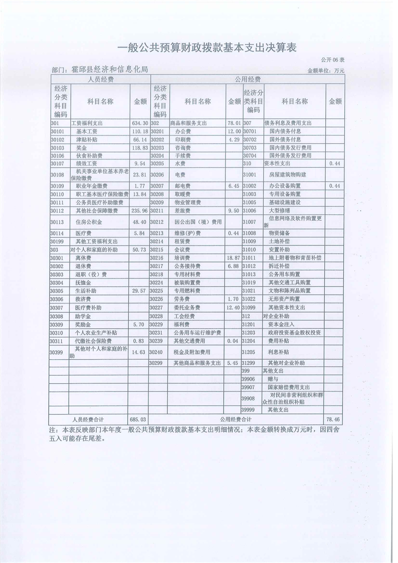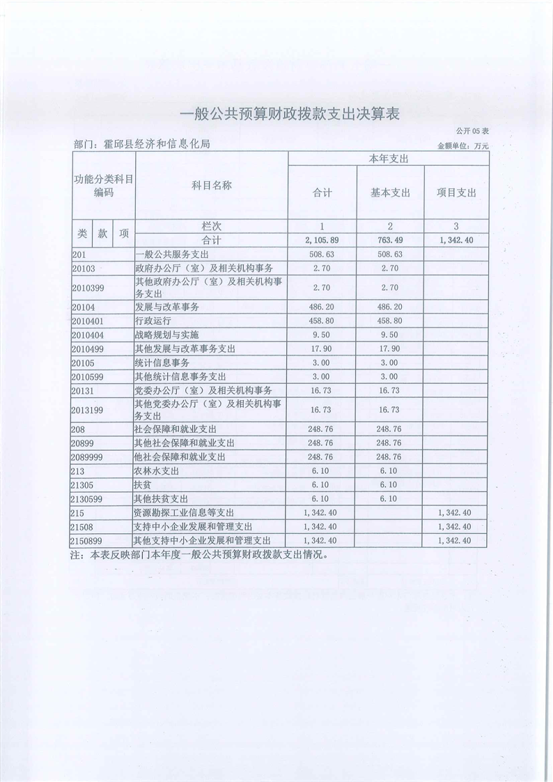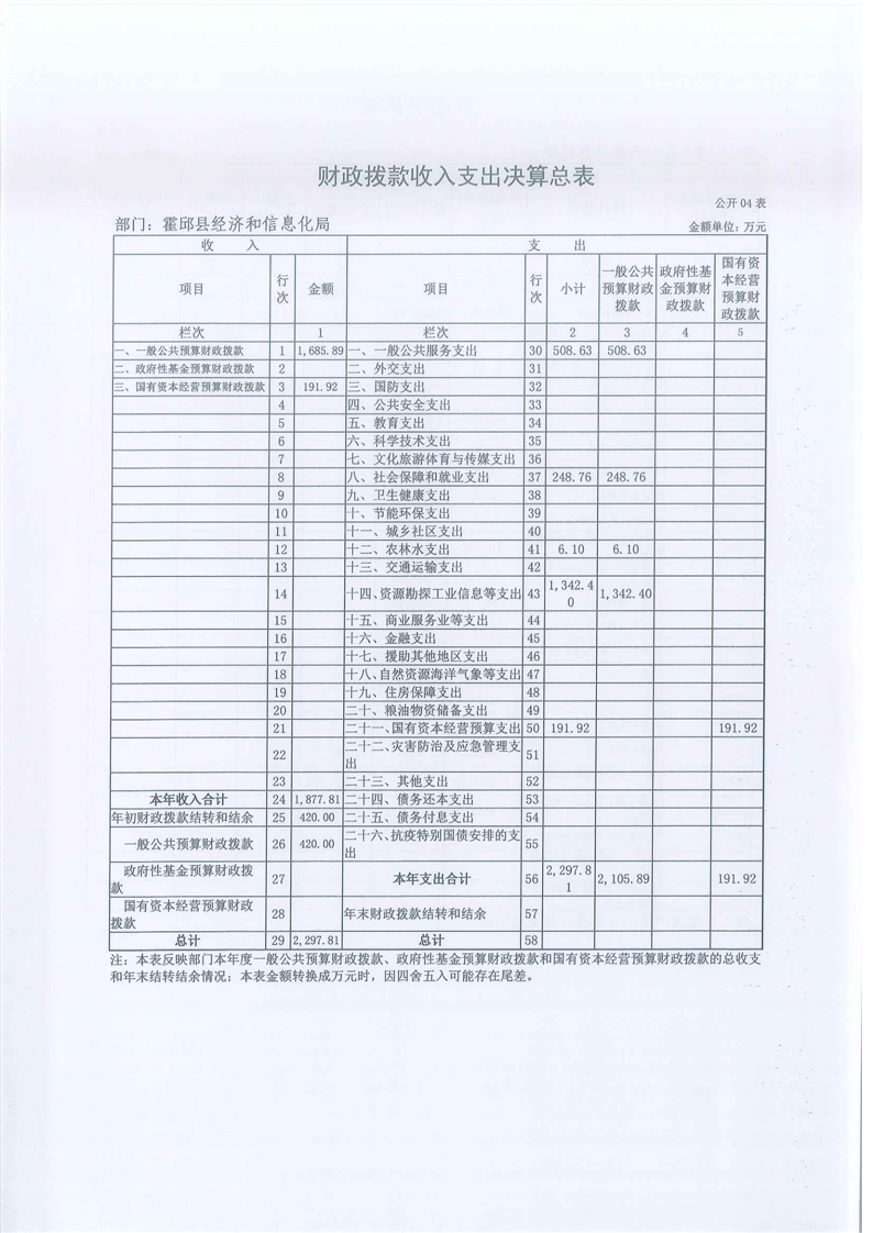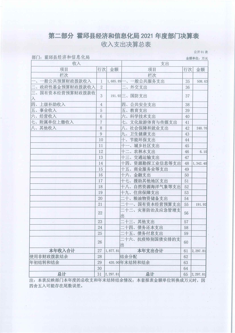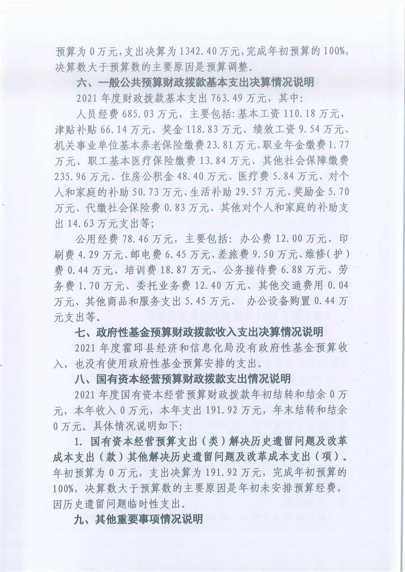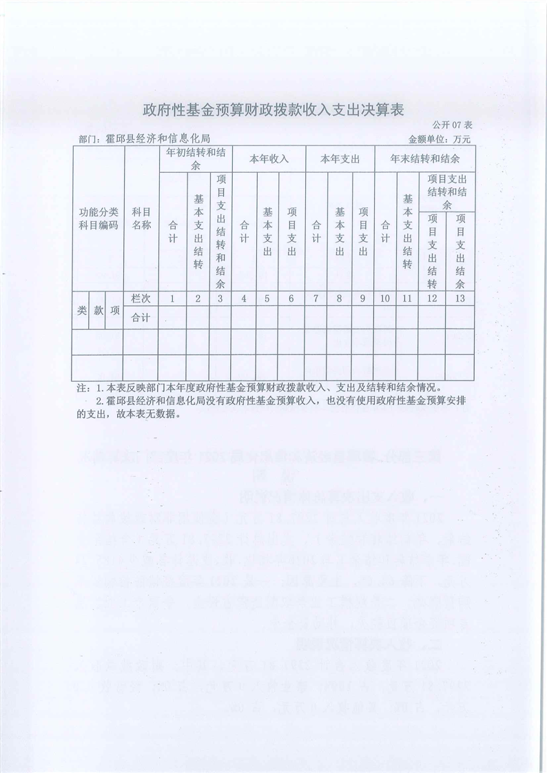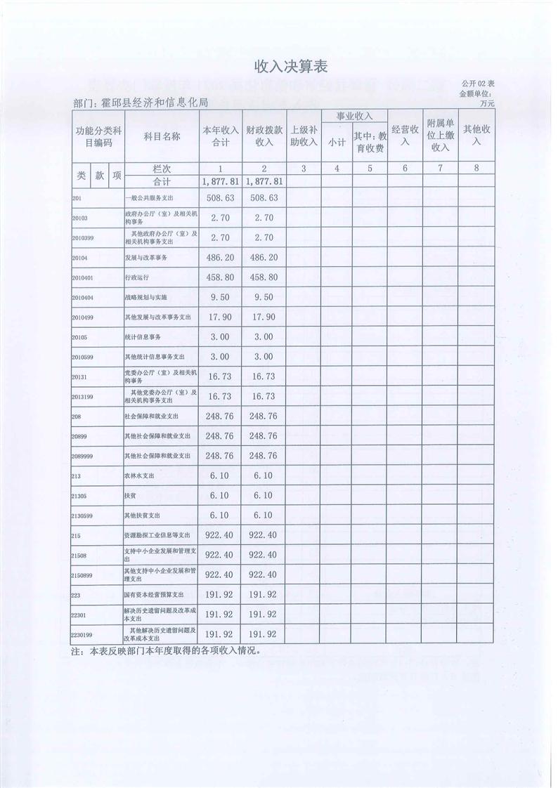 霍邱县经济和信息化局2021年度部门决算