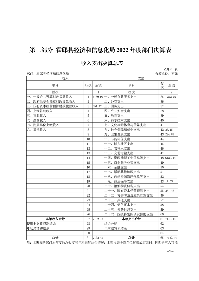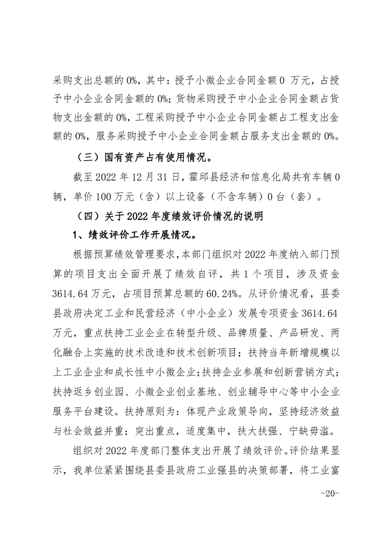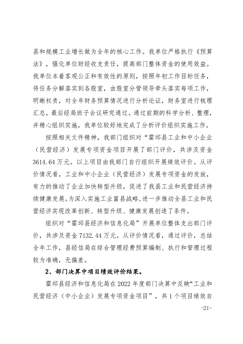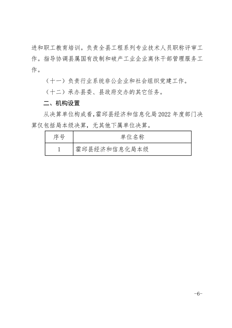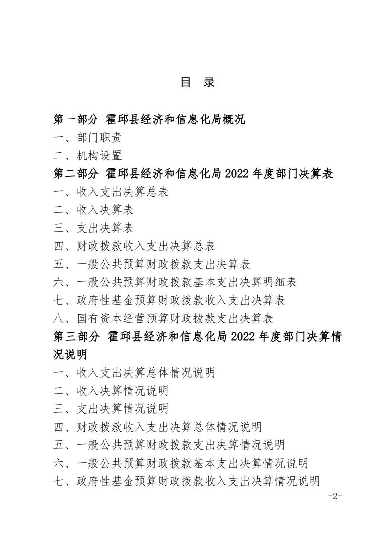 霍邱县经济和信息化局2022年度部门决算