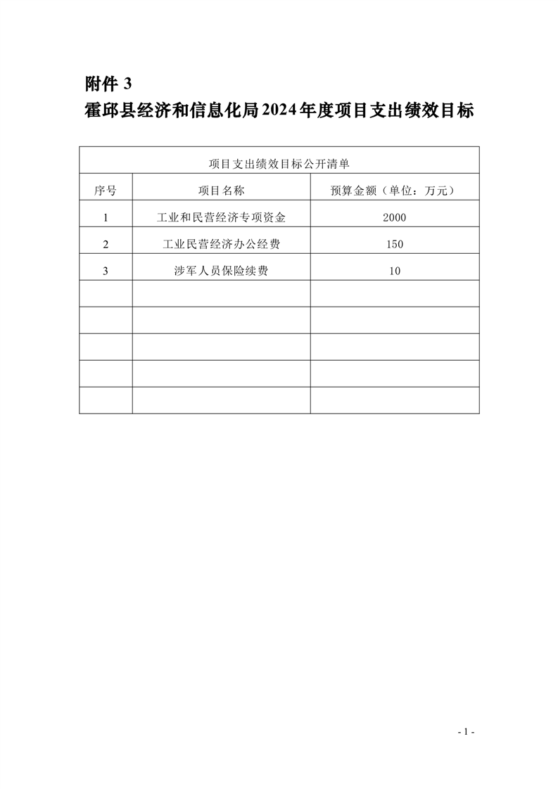霍邱县经济和信息化局2024年度项目支出绩效目标