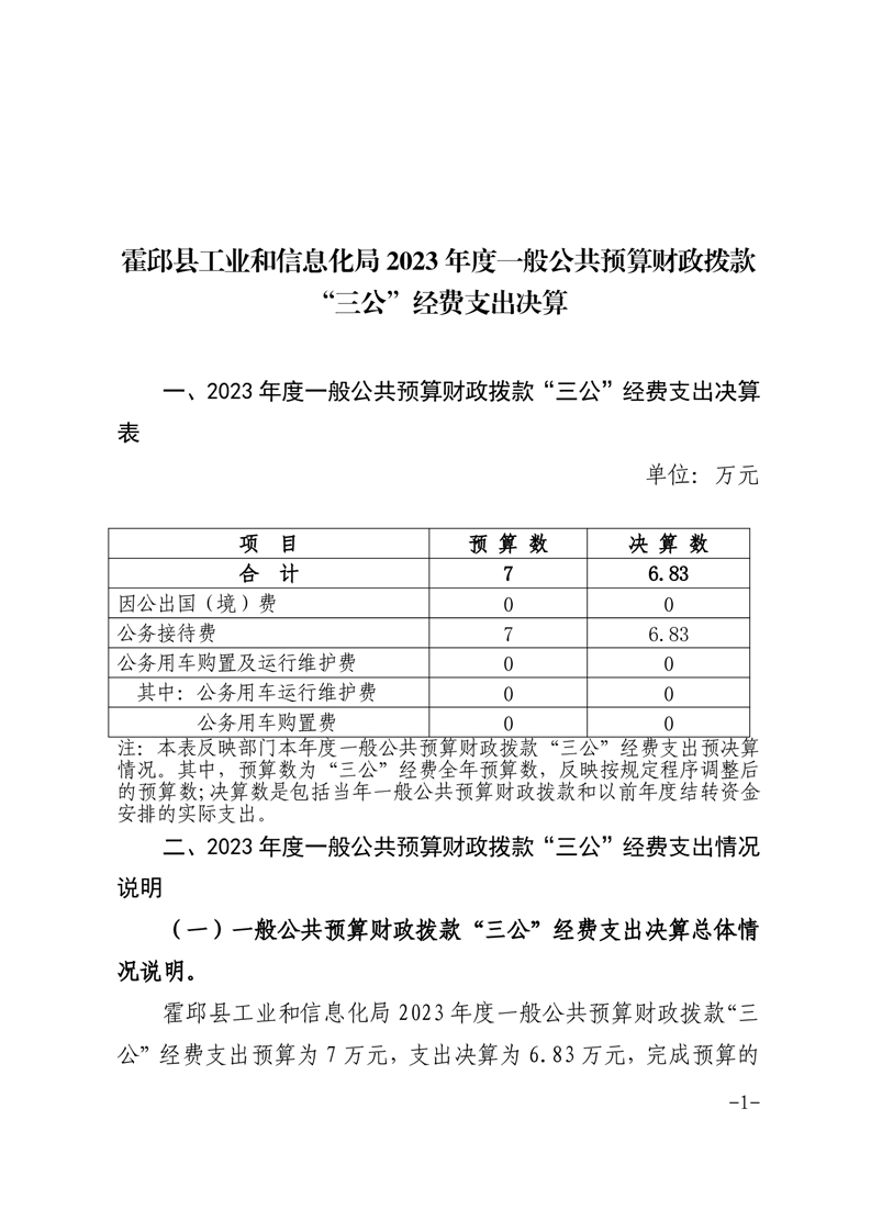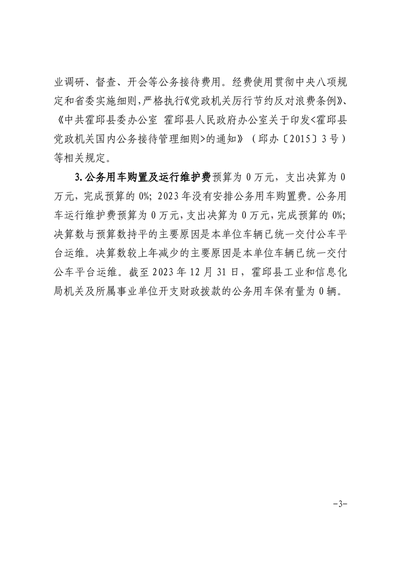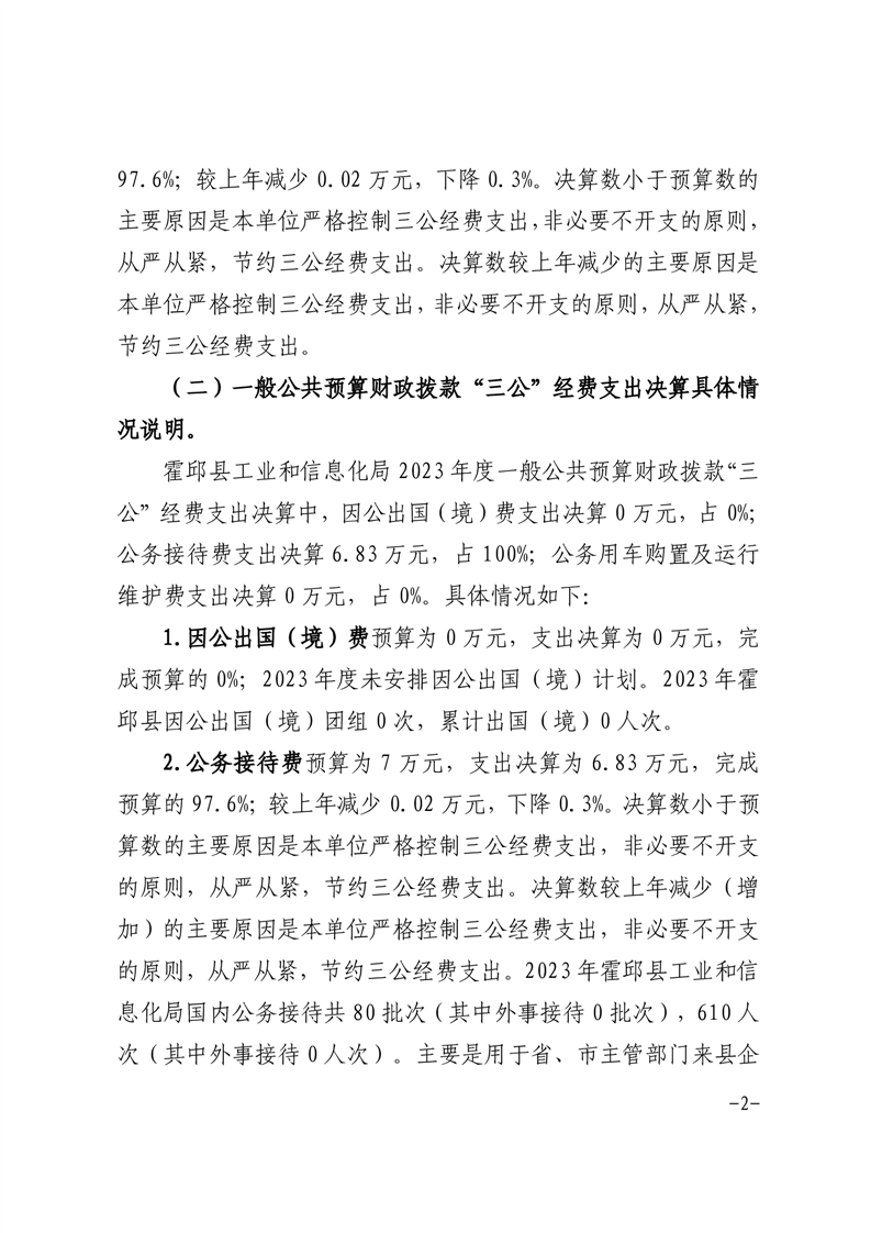 霍邱县工业和信息化局2023年度一般公共预算财政拨款“三公”经费支出决算情况