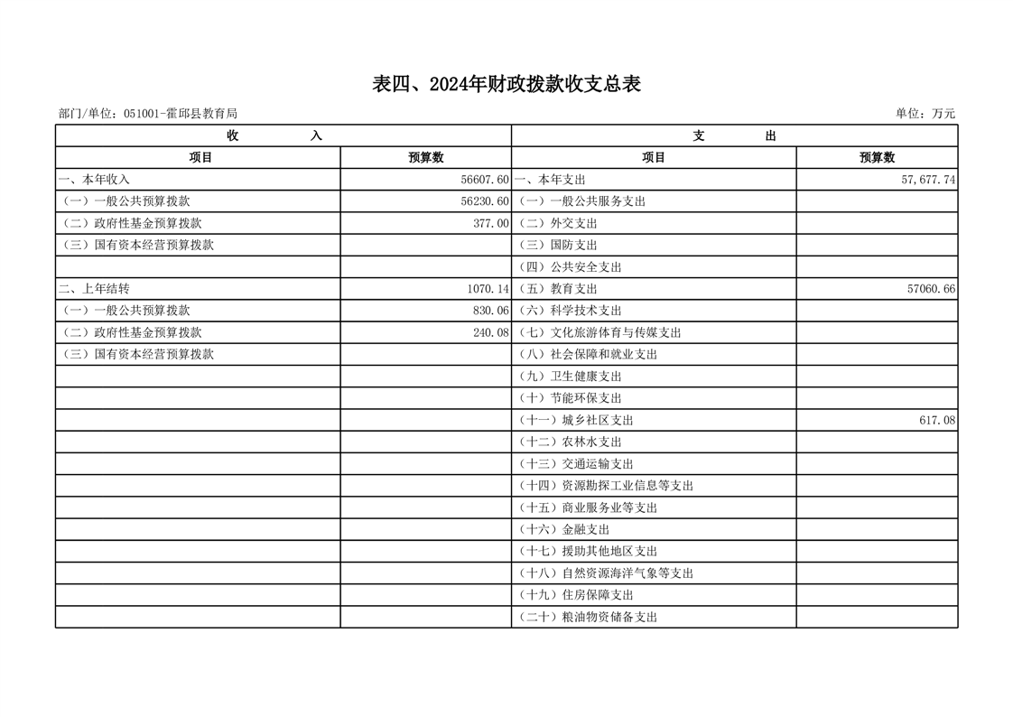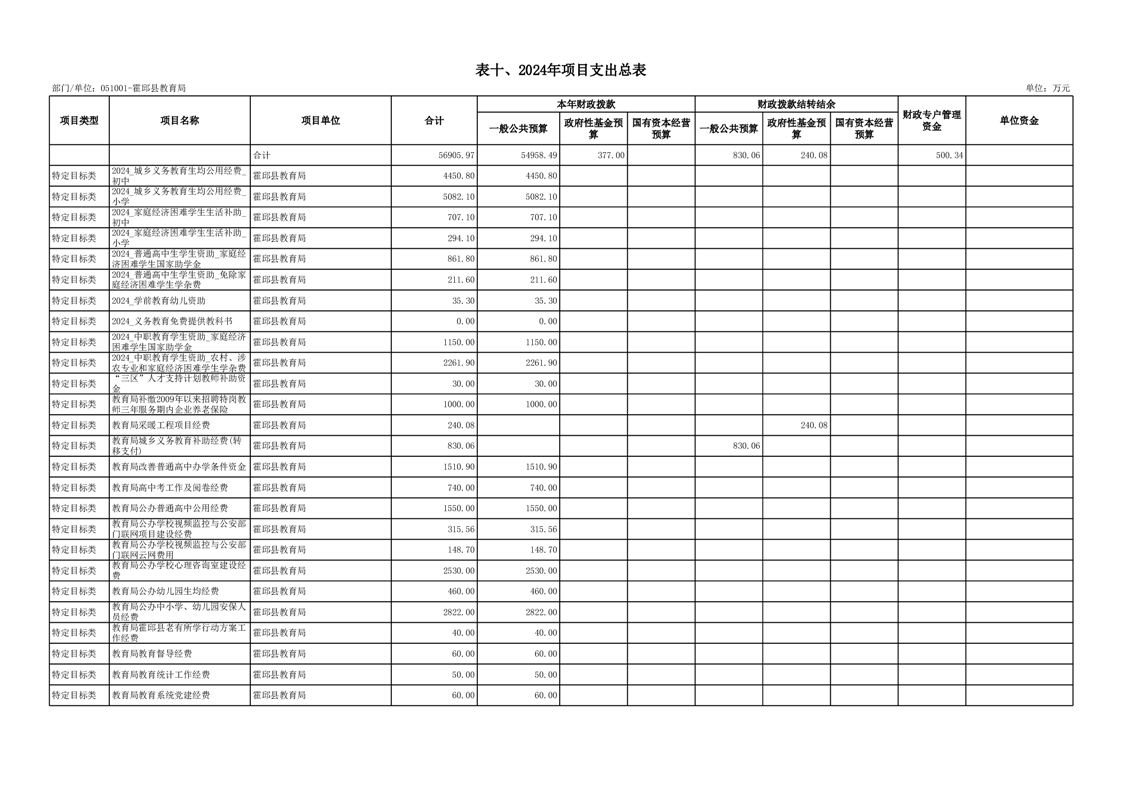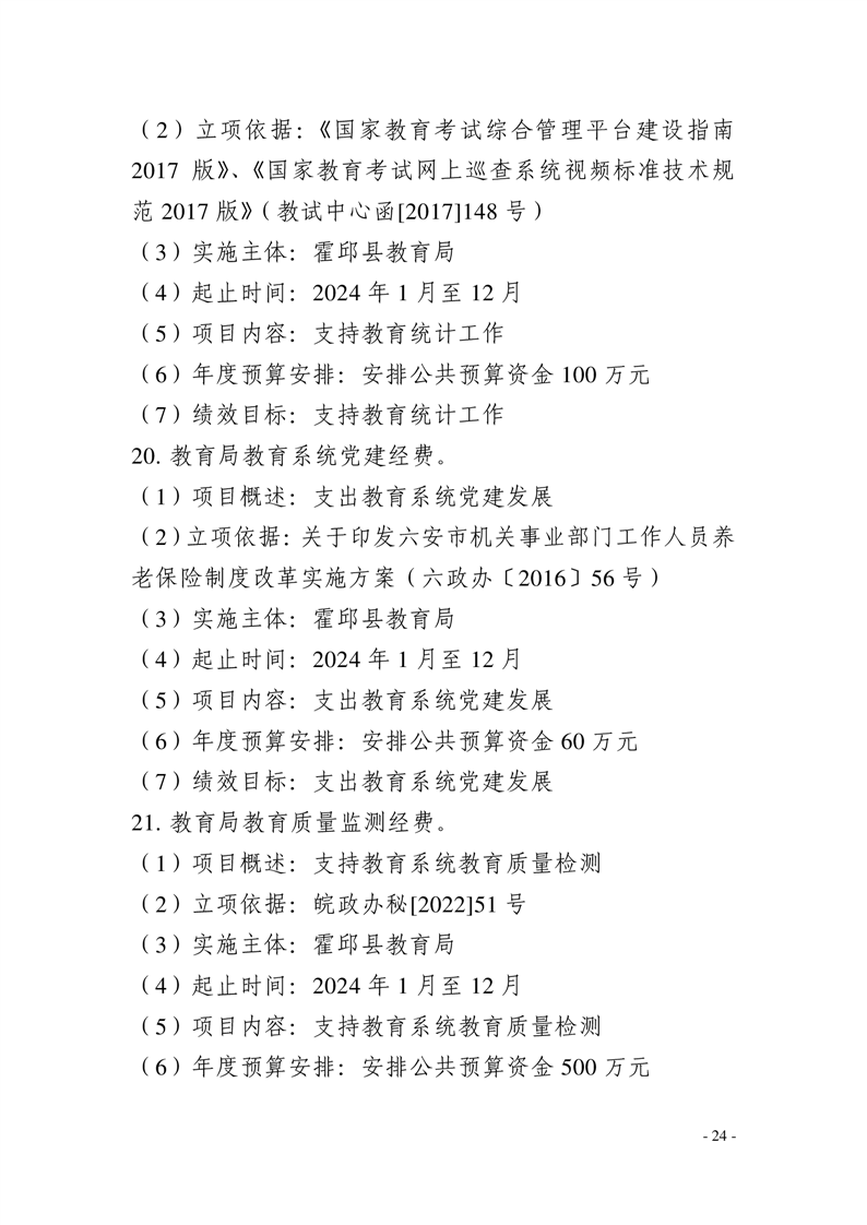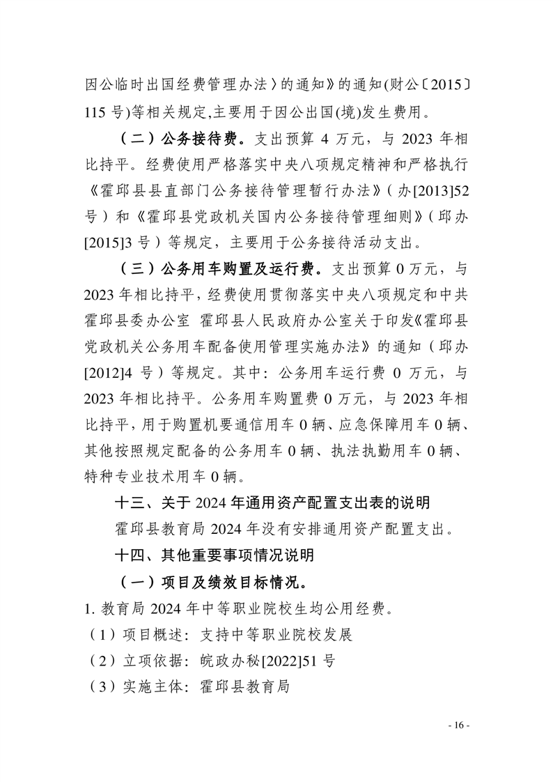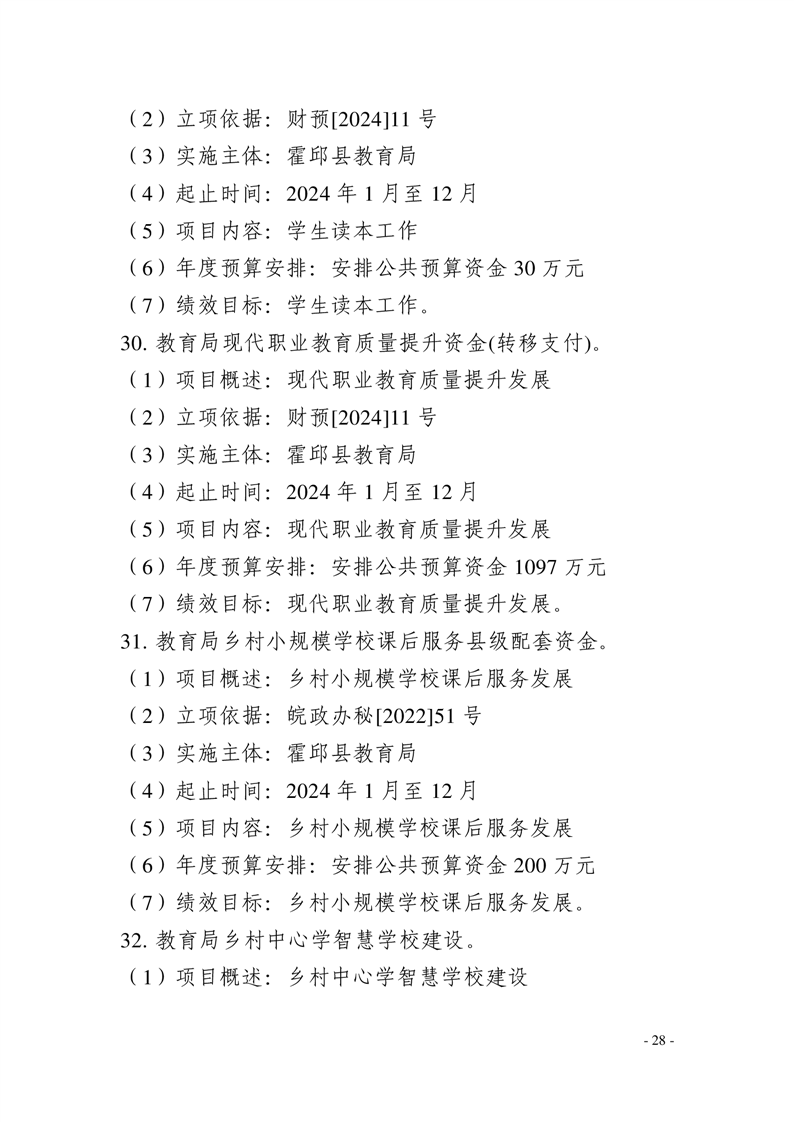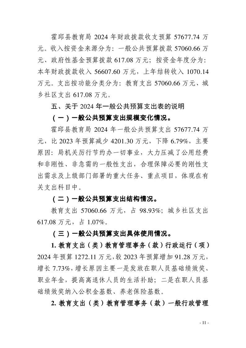 霍邱县教育局2024年部门预算安排