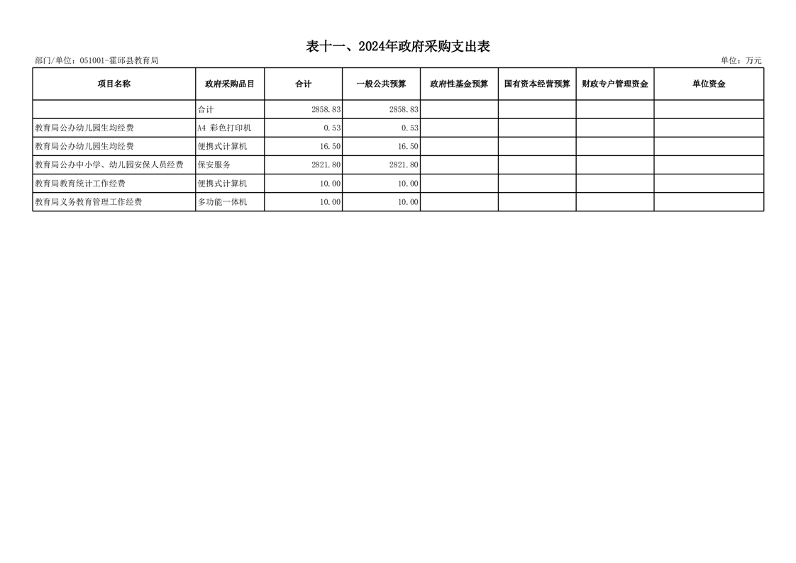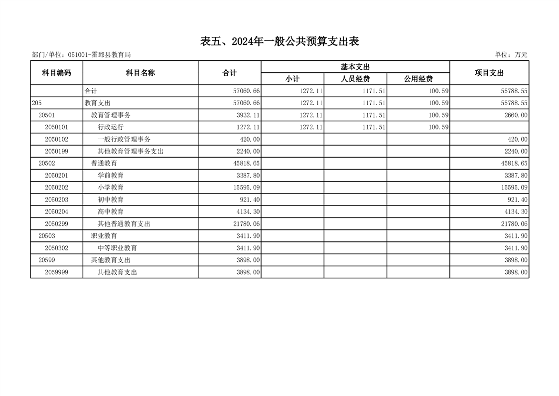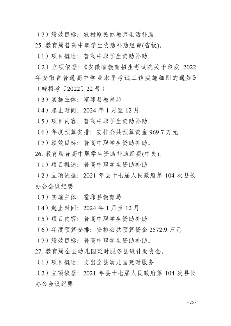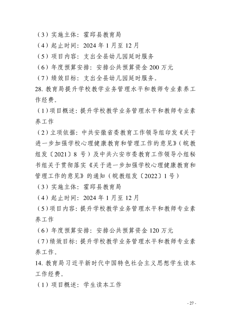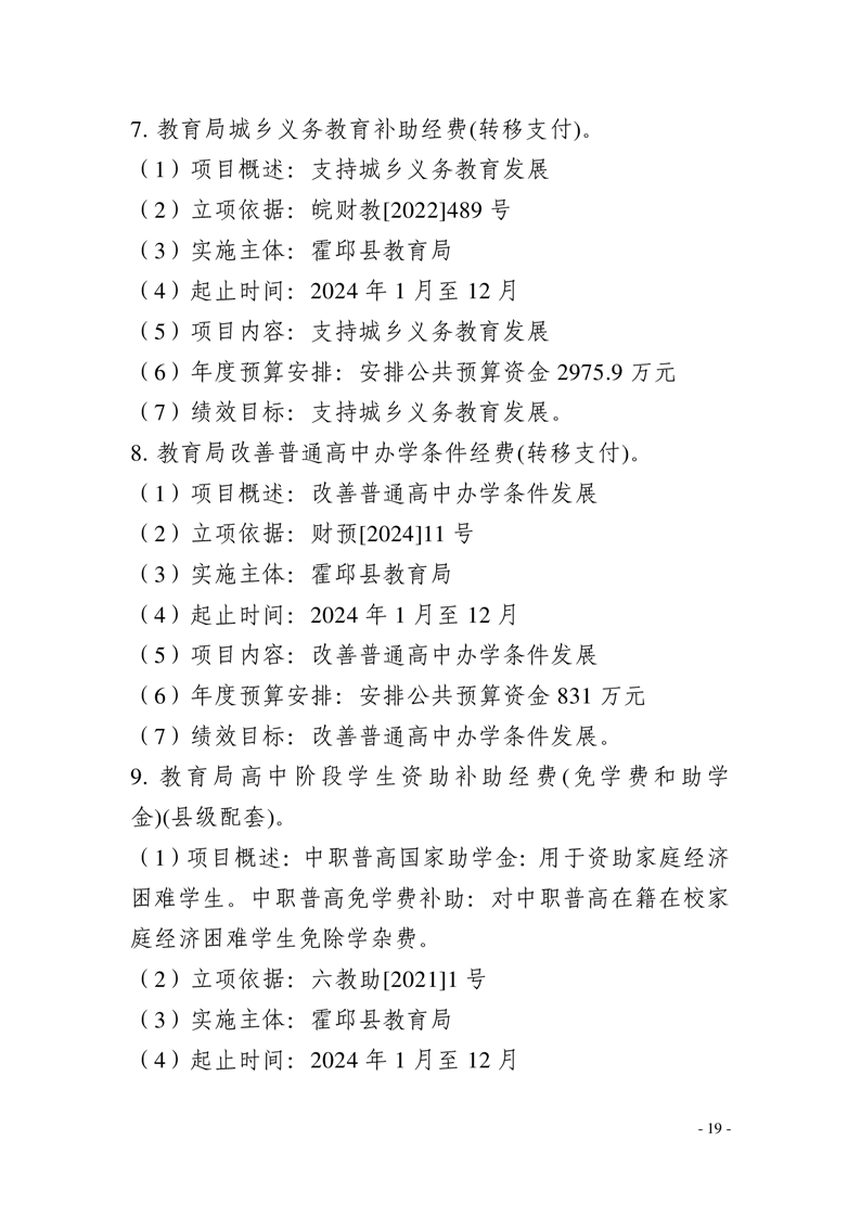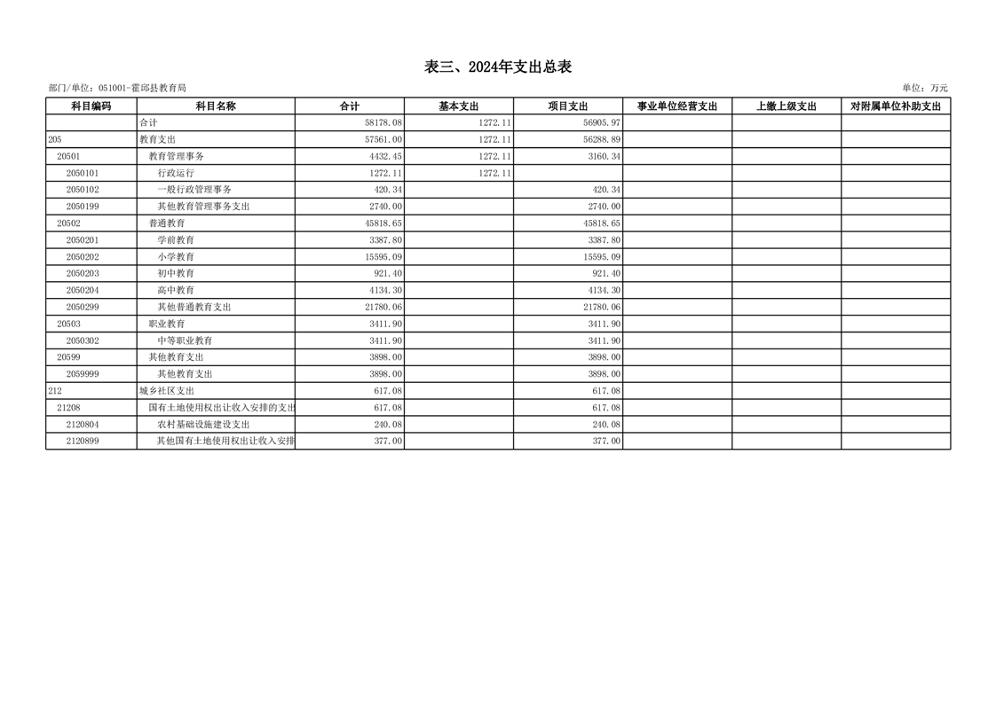 霍邱县教育局2024年部门预算安排