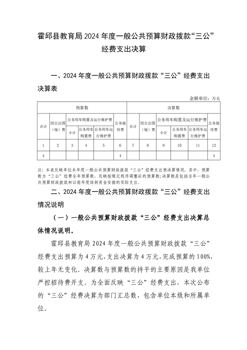 霍邱县教育局单位2024年度一般公共预算财政拨款“三公”经费支出预算(单位)