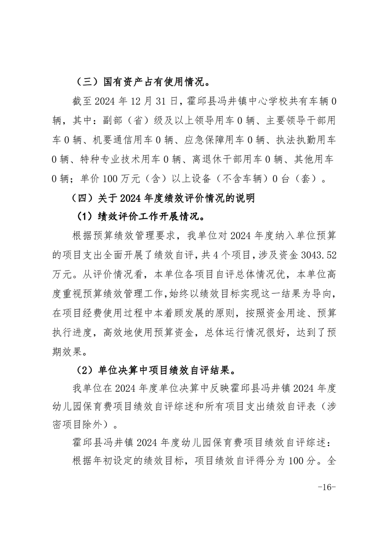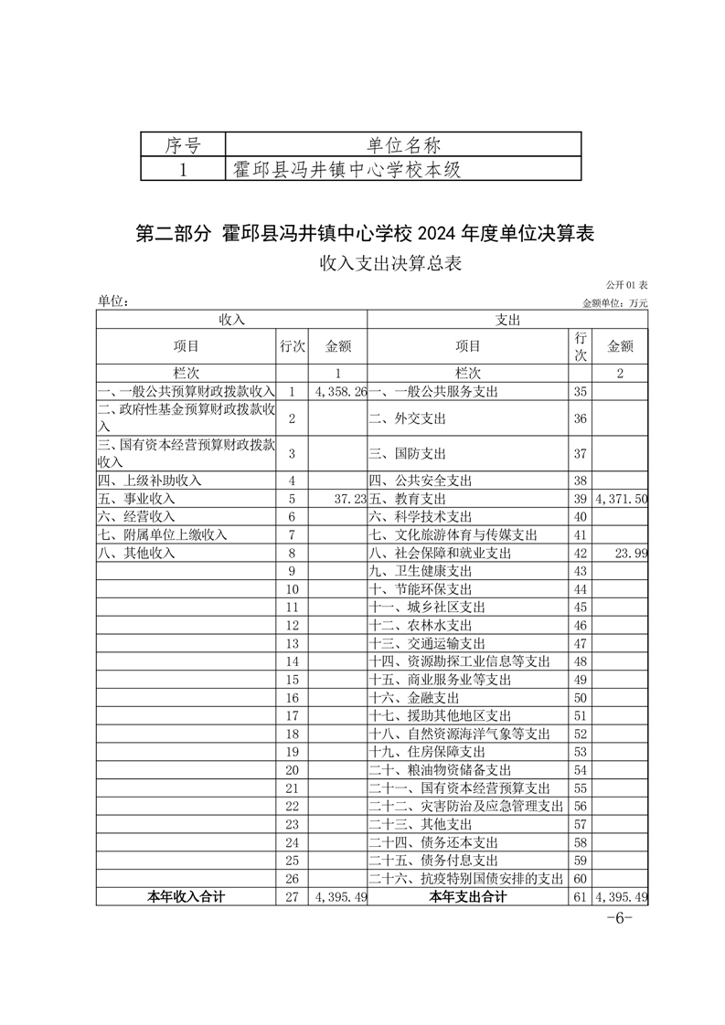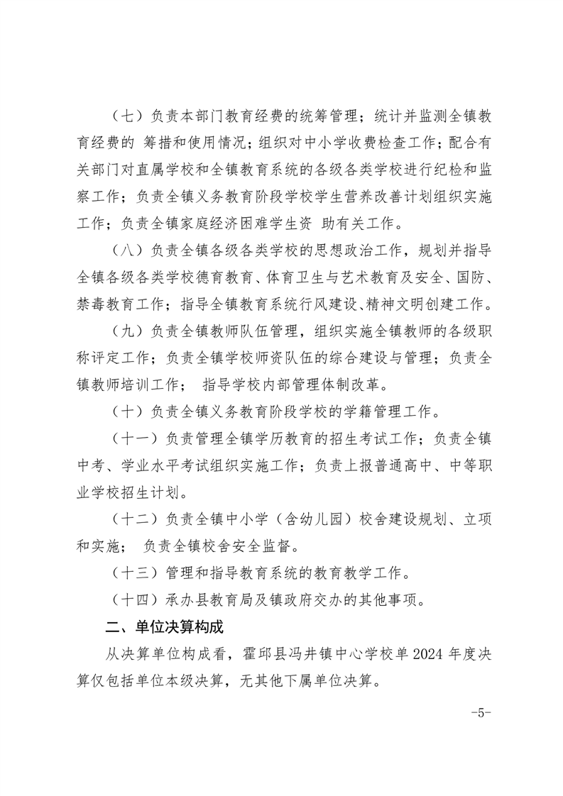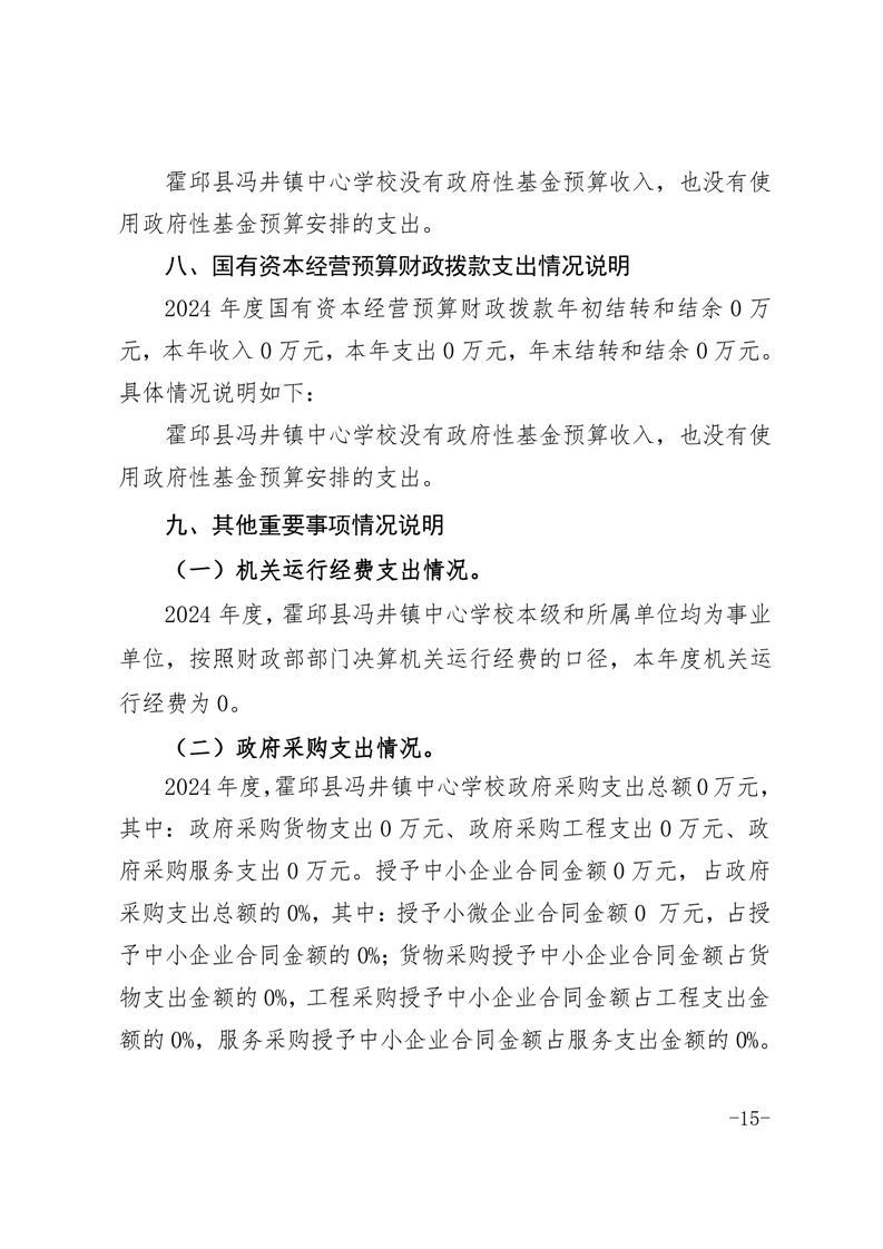 霍邱县冯井镇中心学校 2024 年度单位决算