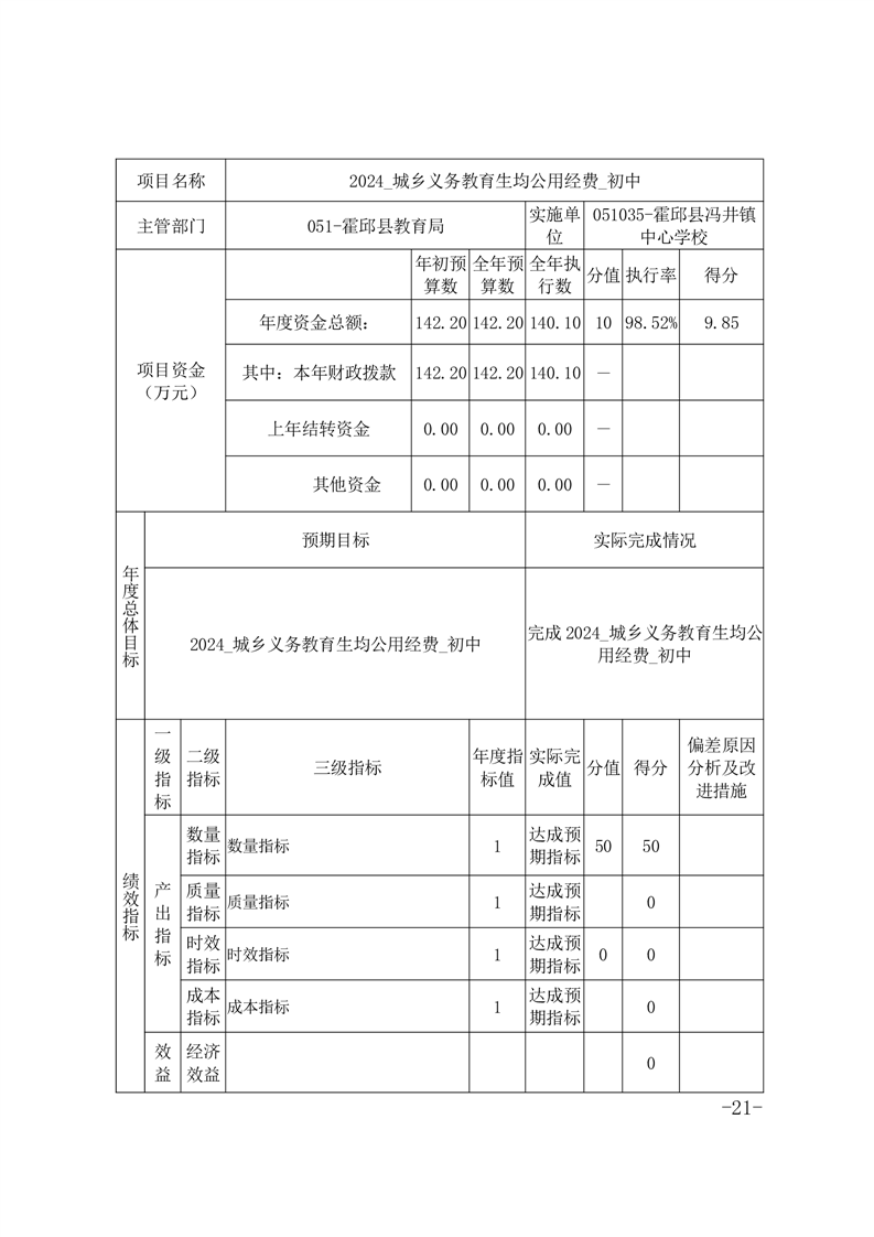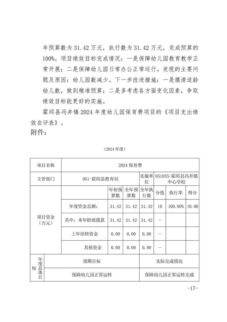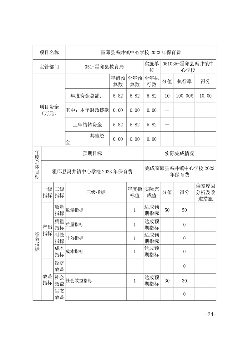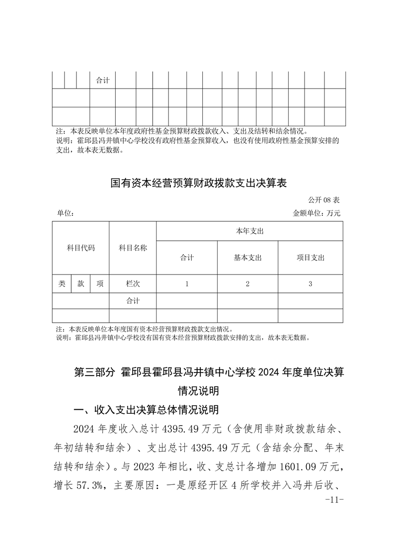 霍邱县冯井镇中心学校 2024 年度单位决算