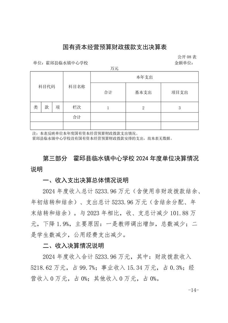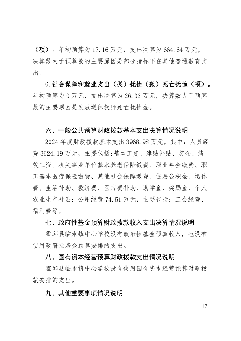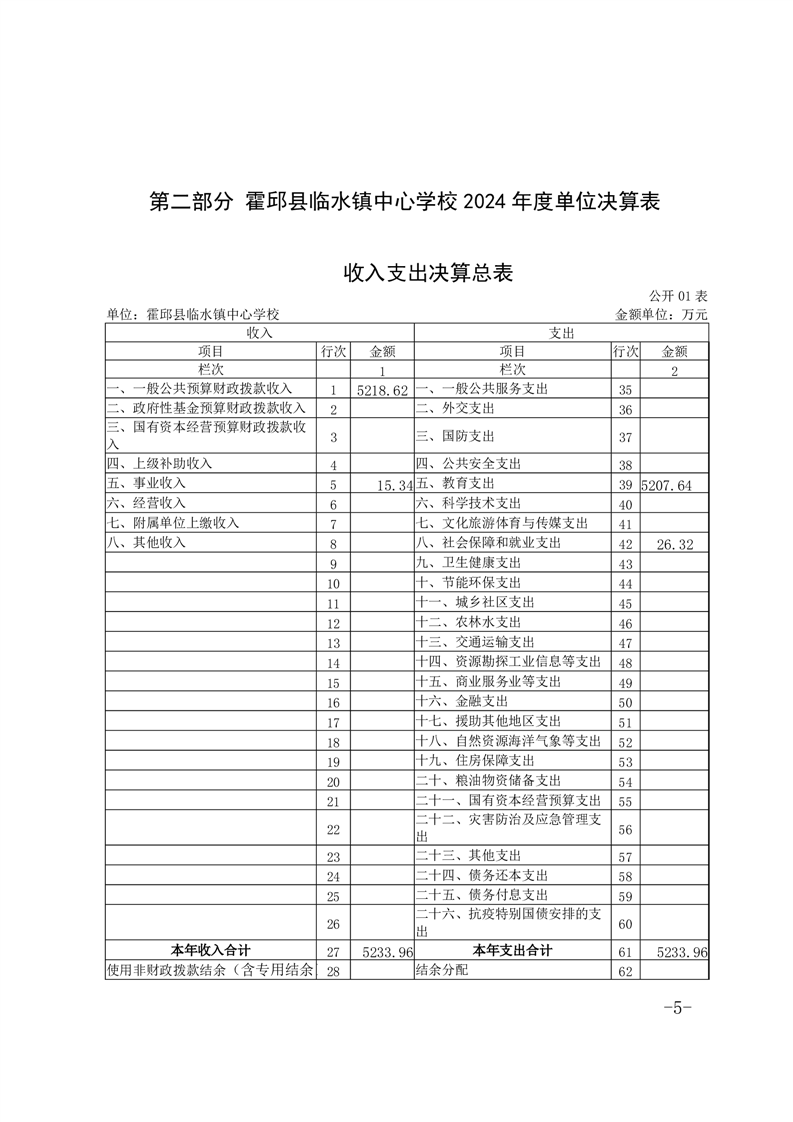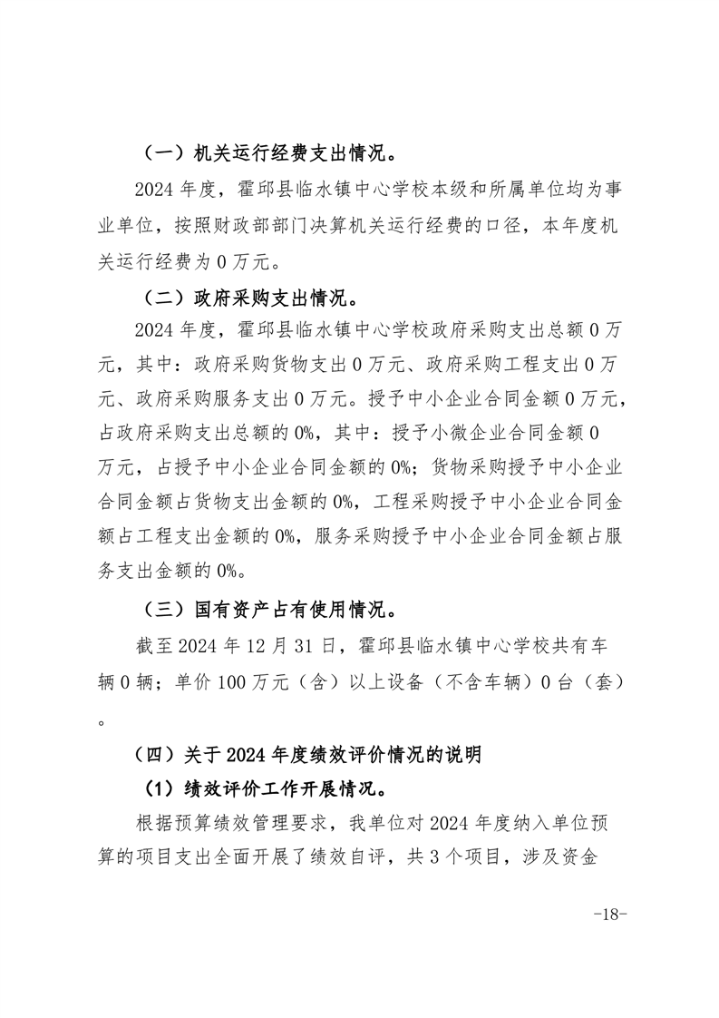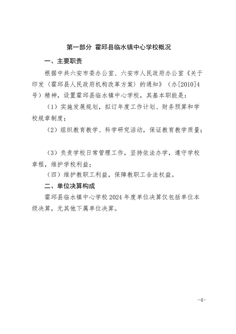 霍邱县临水镇中心学校 2024 年度单位决算