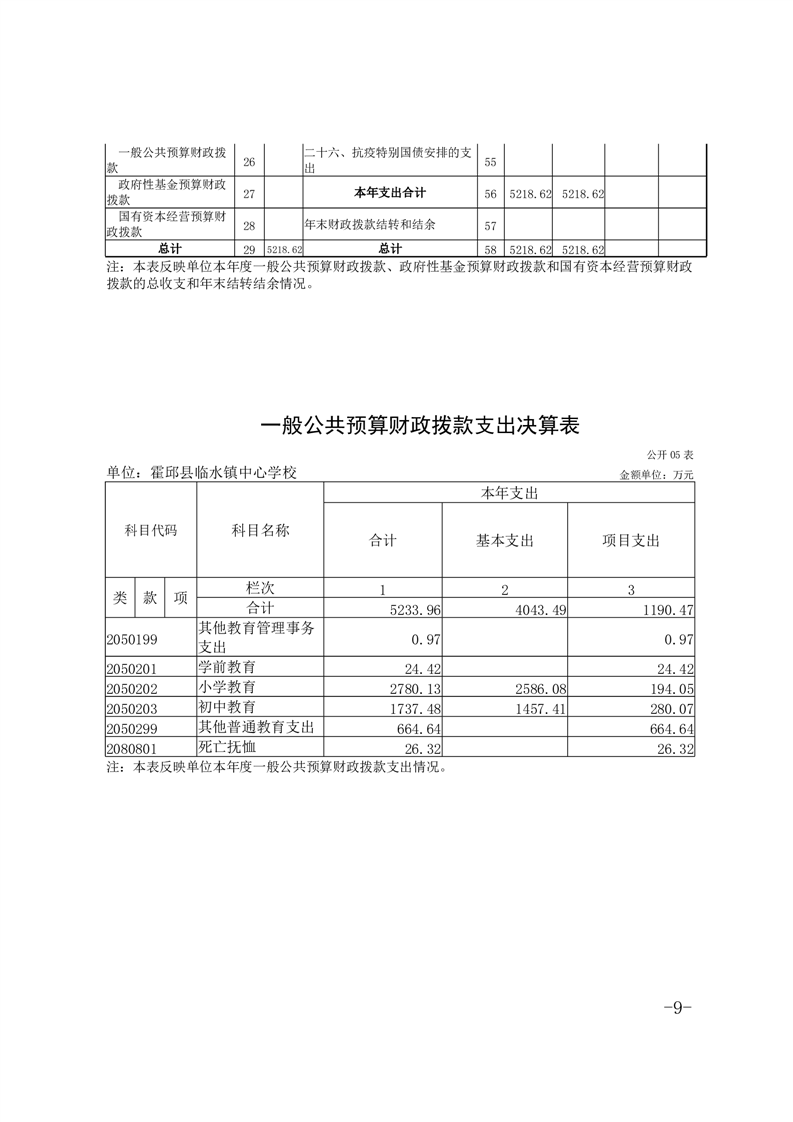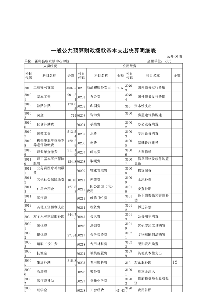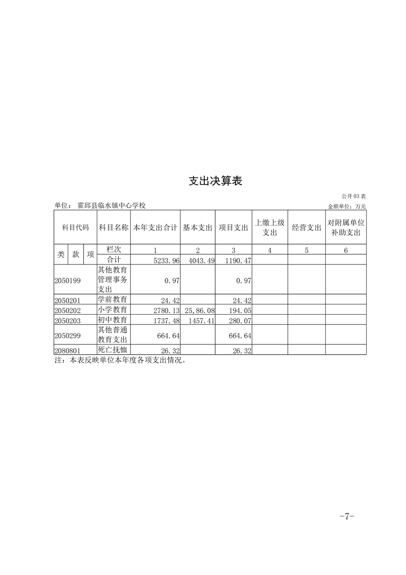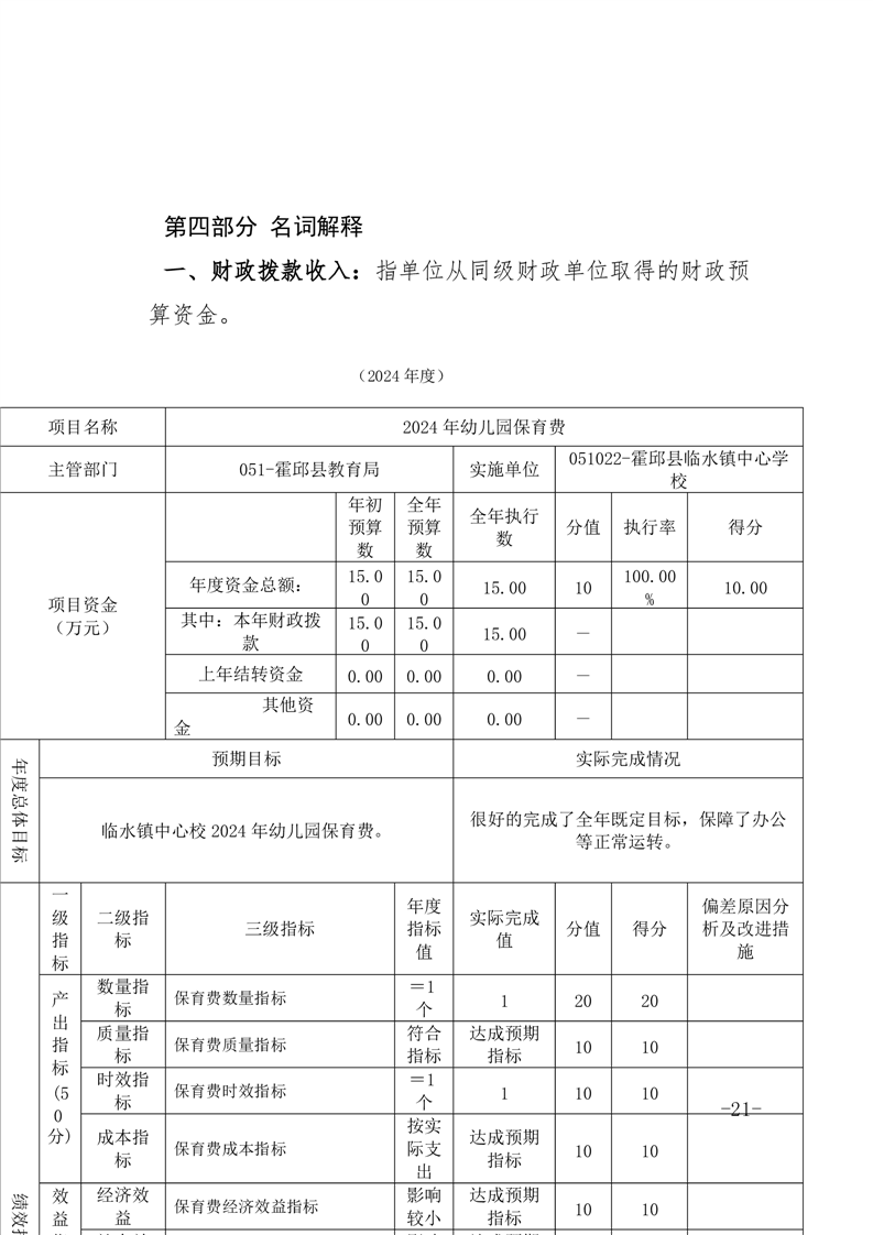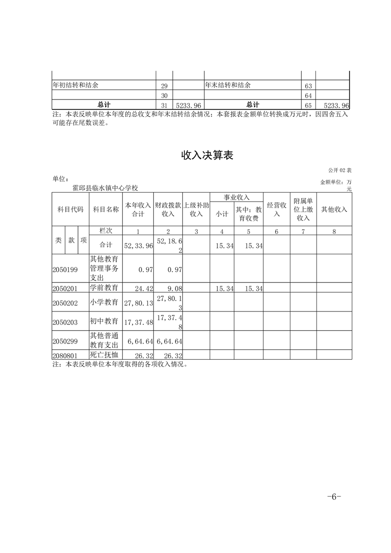 霍邱县临水镇中心学校 2024 年度单位决算