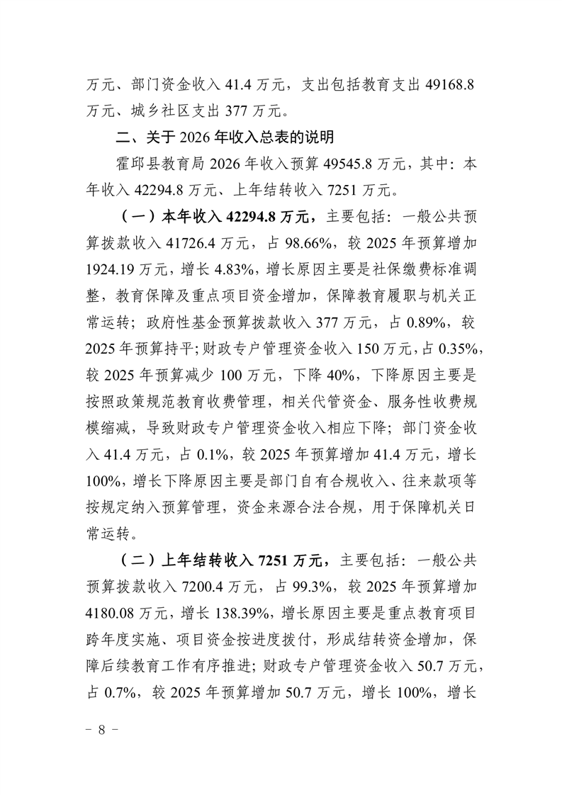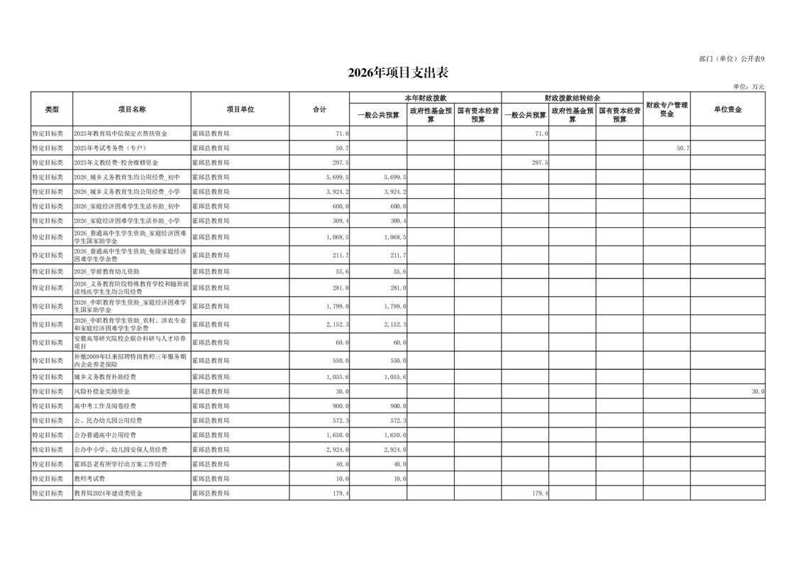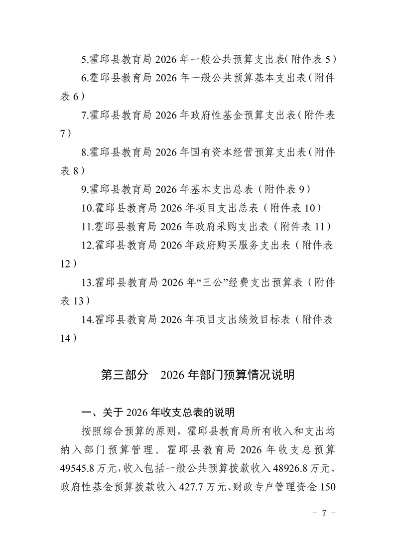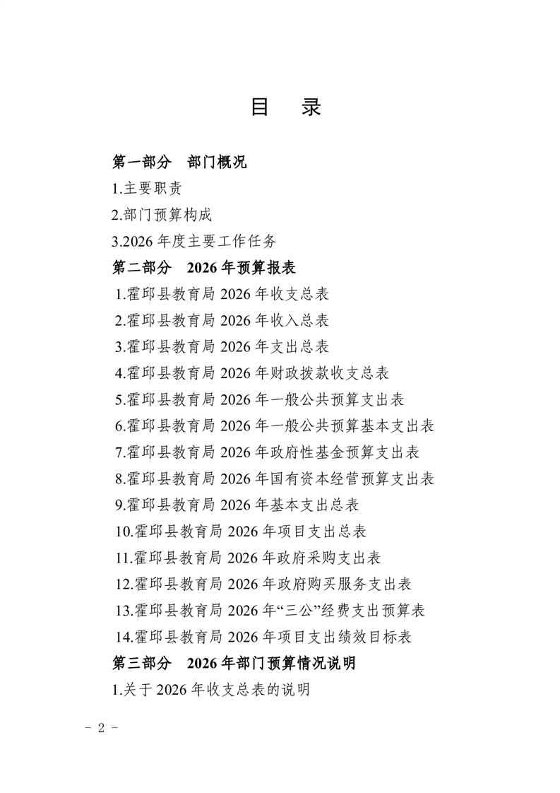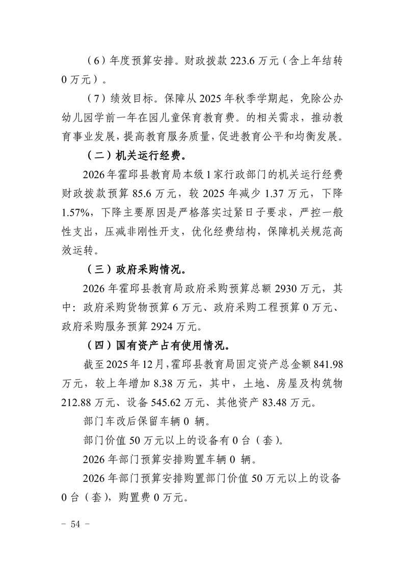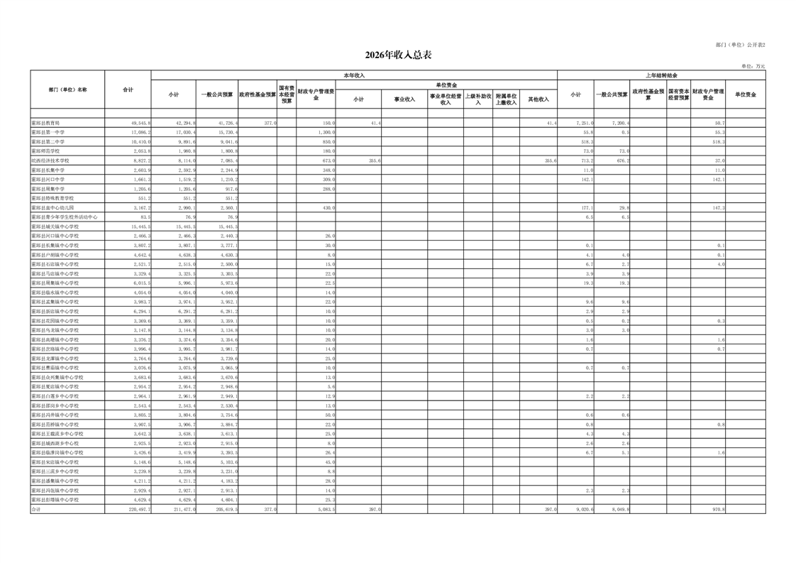 霍邱县教育局2026年部门预算公开