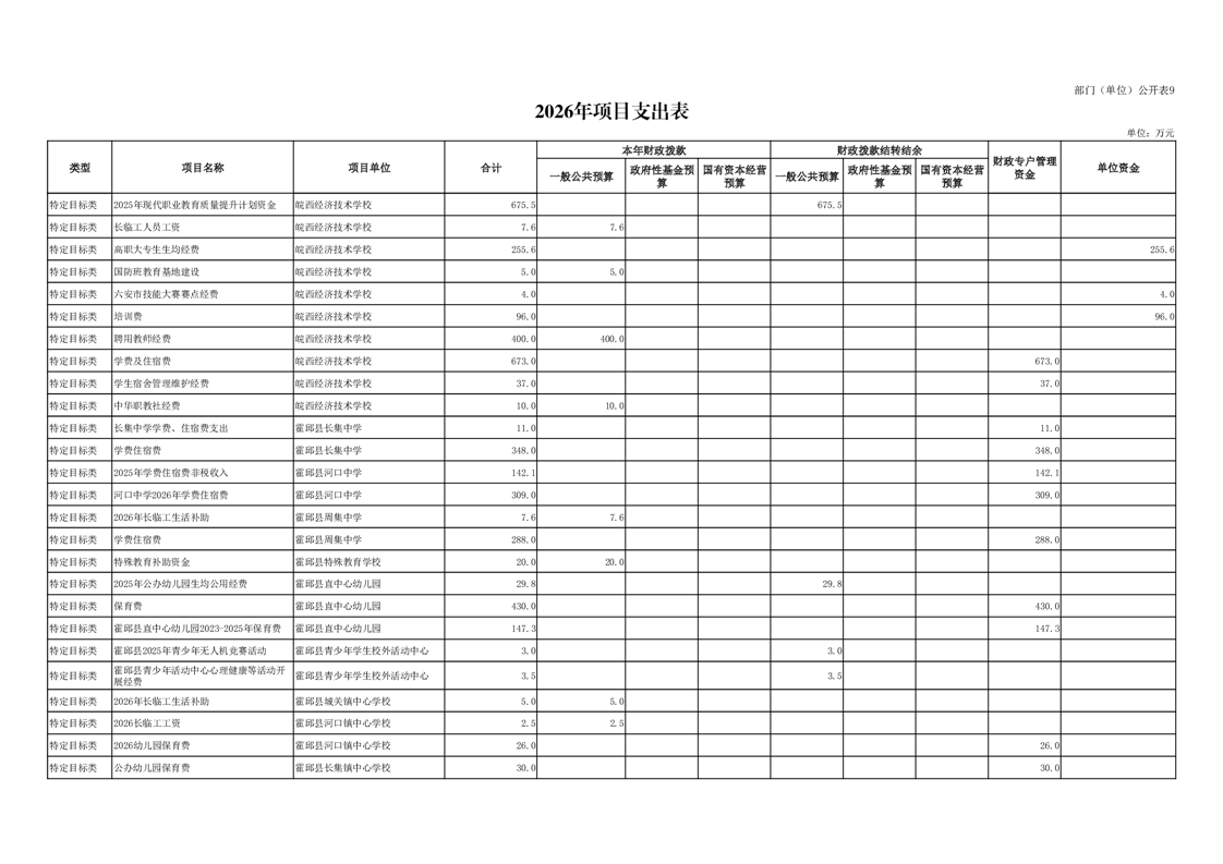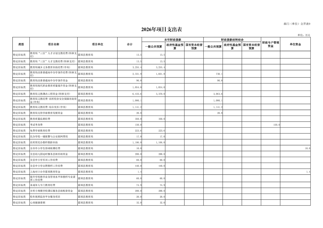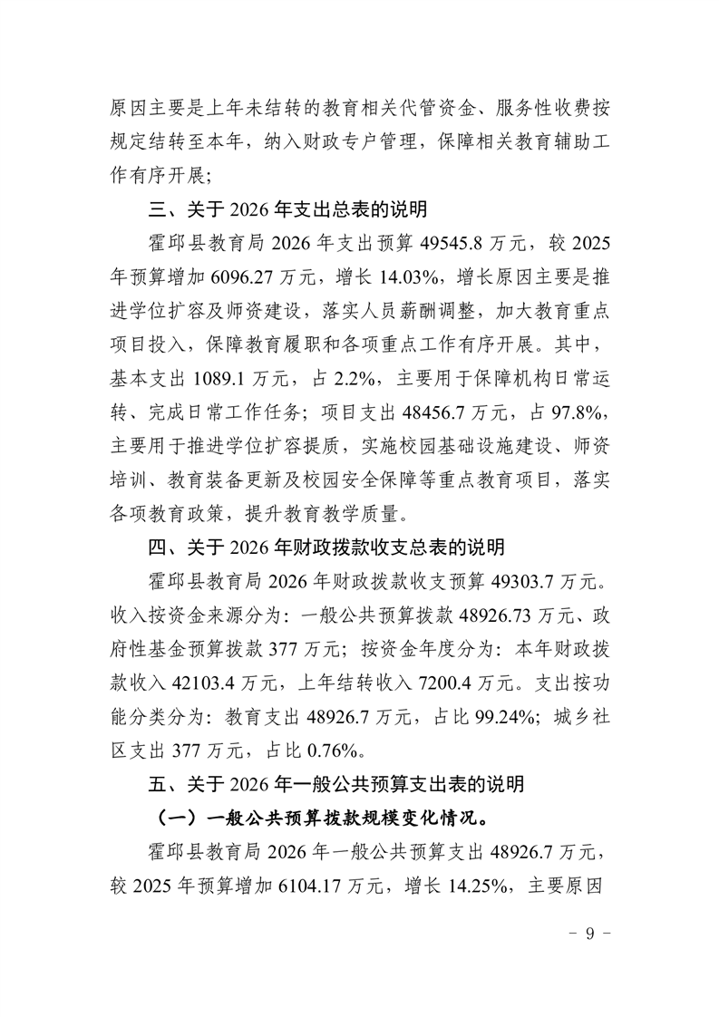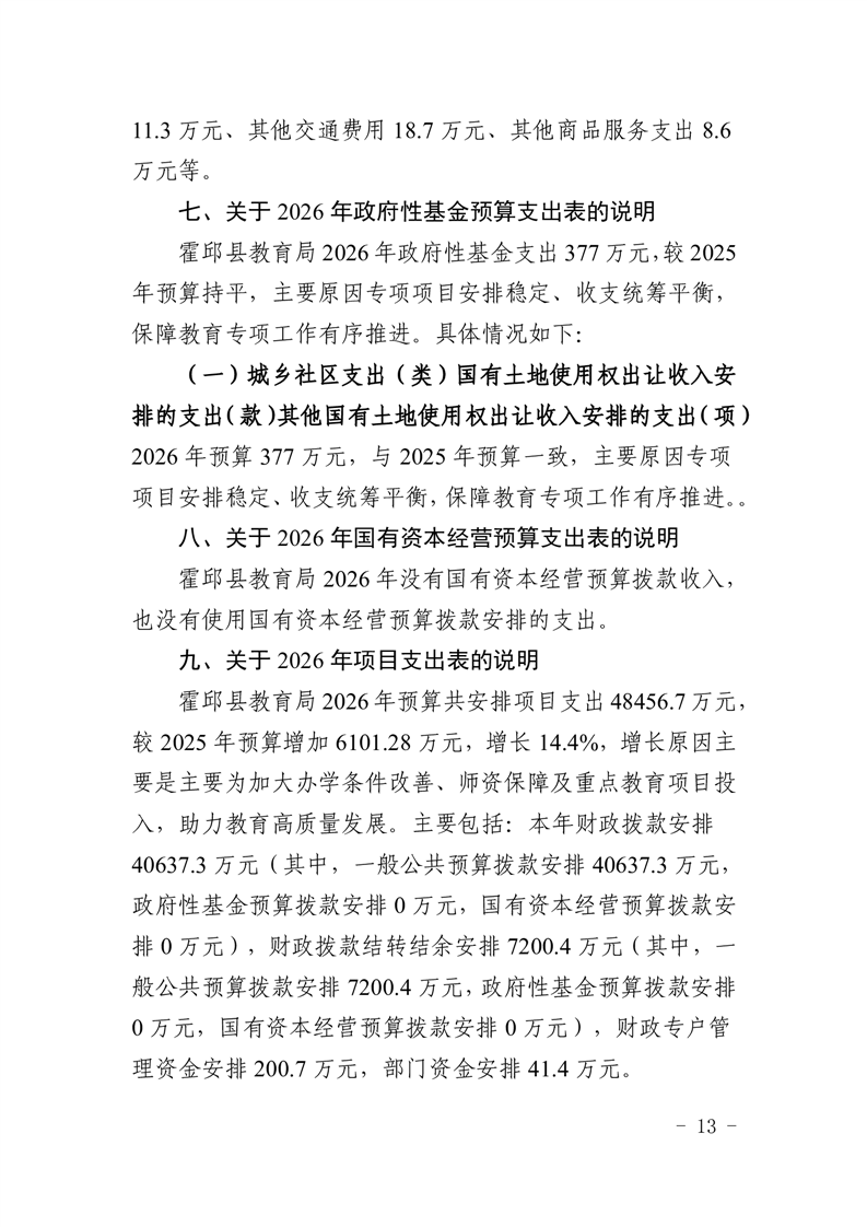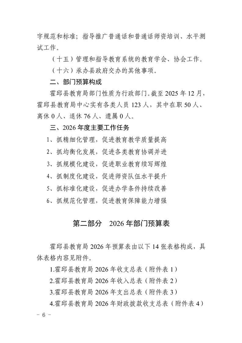 霍邱县教育局2026年部门预算公开