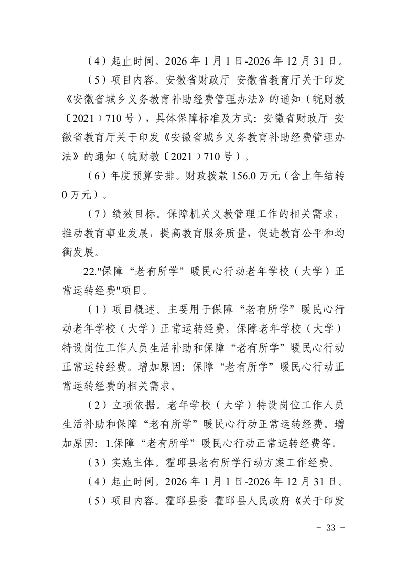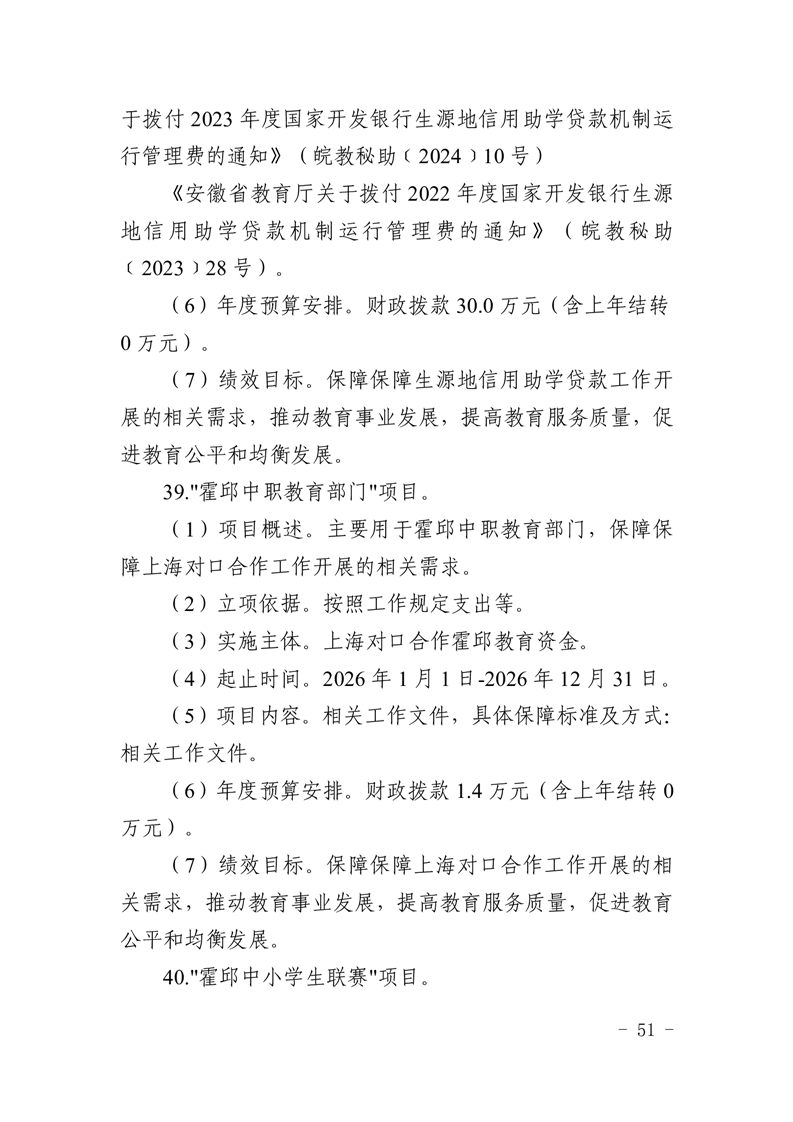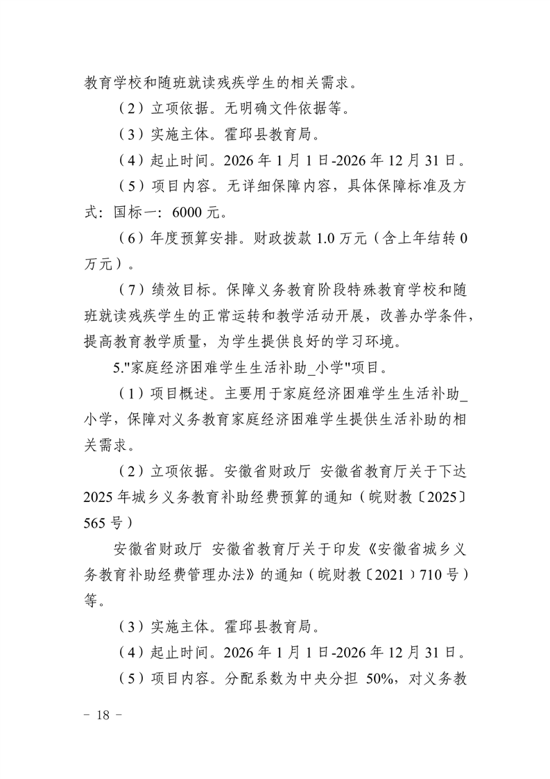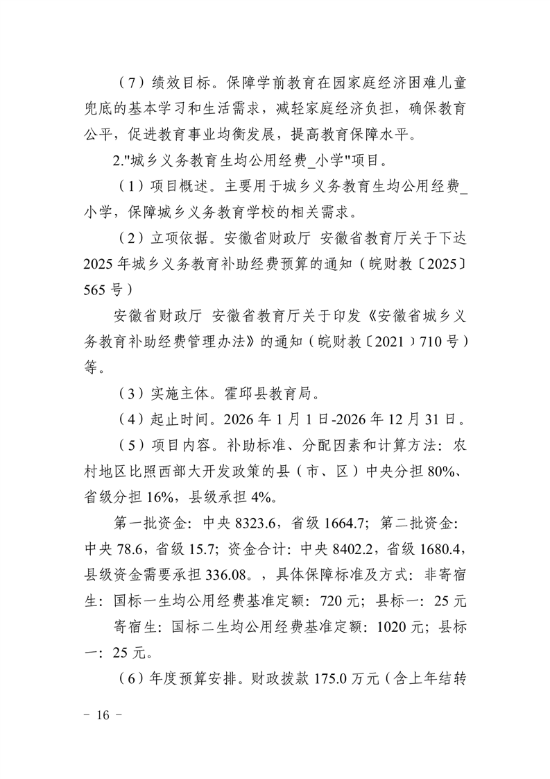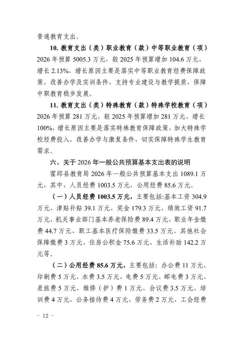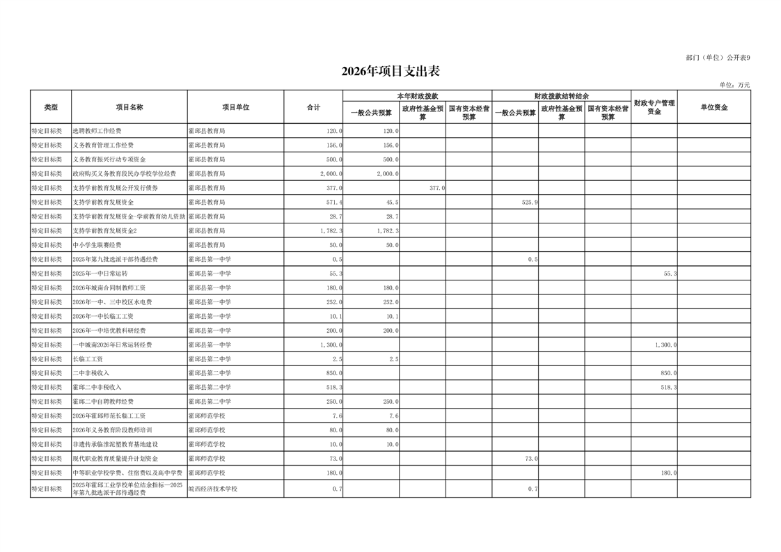 霍邱县教育局2026年部门预算公开