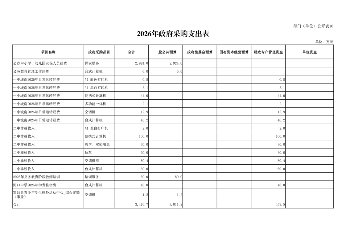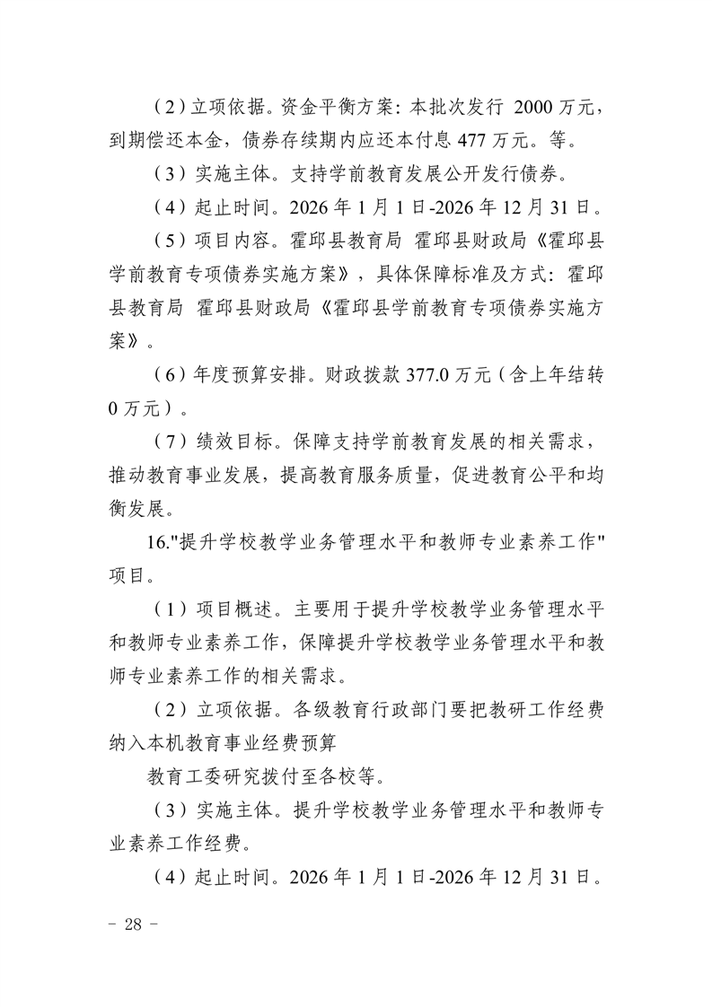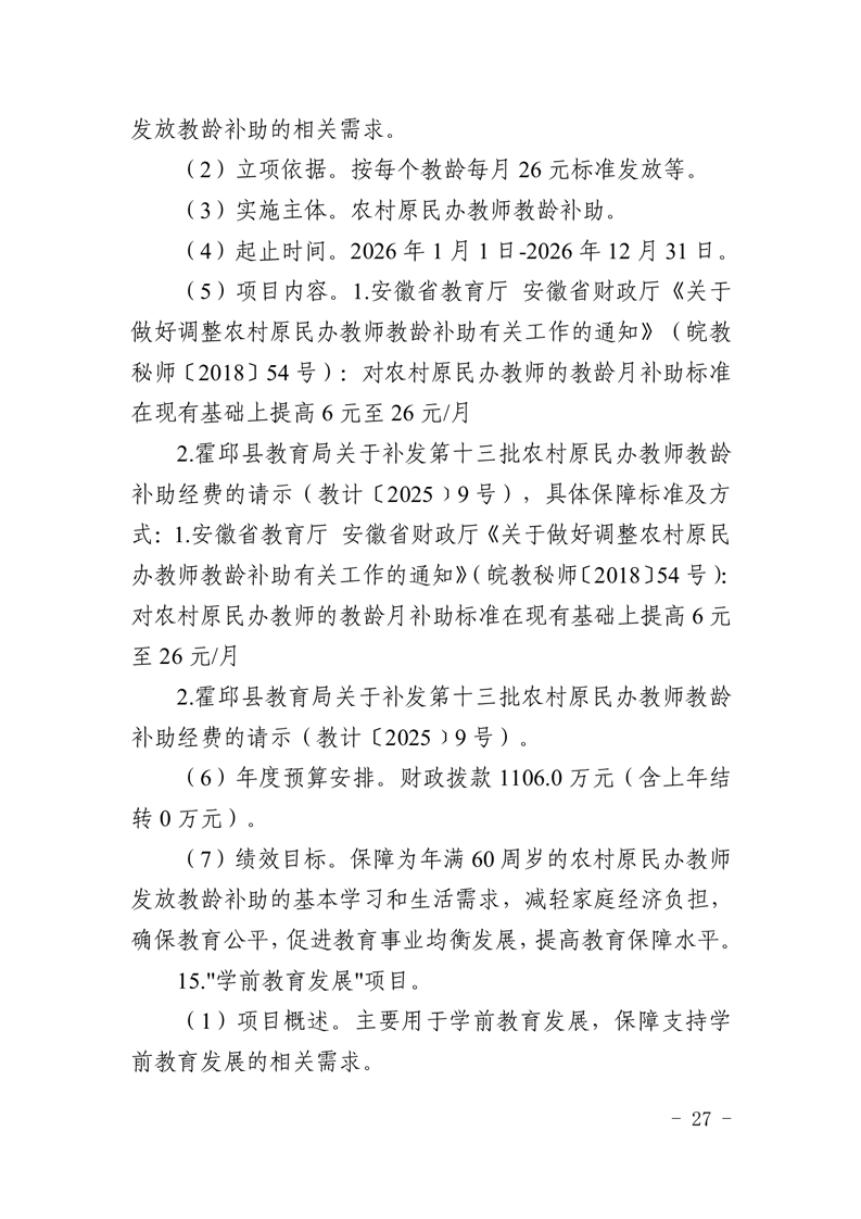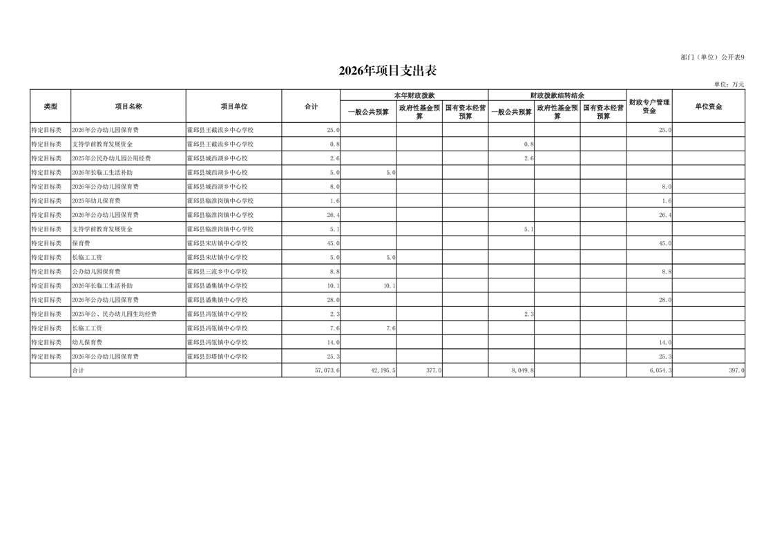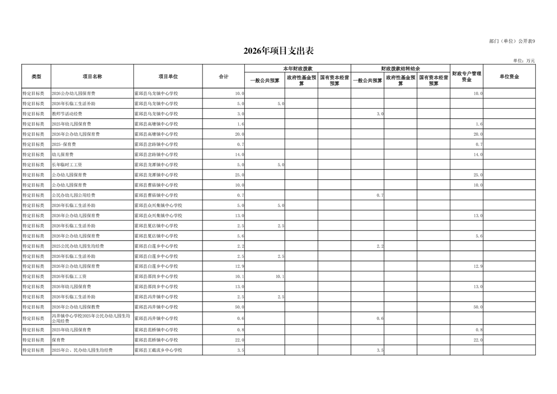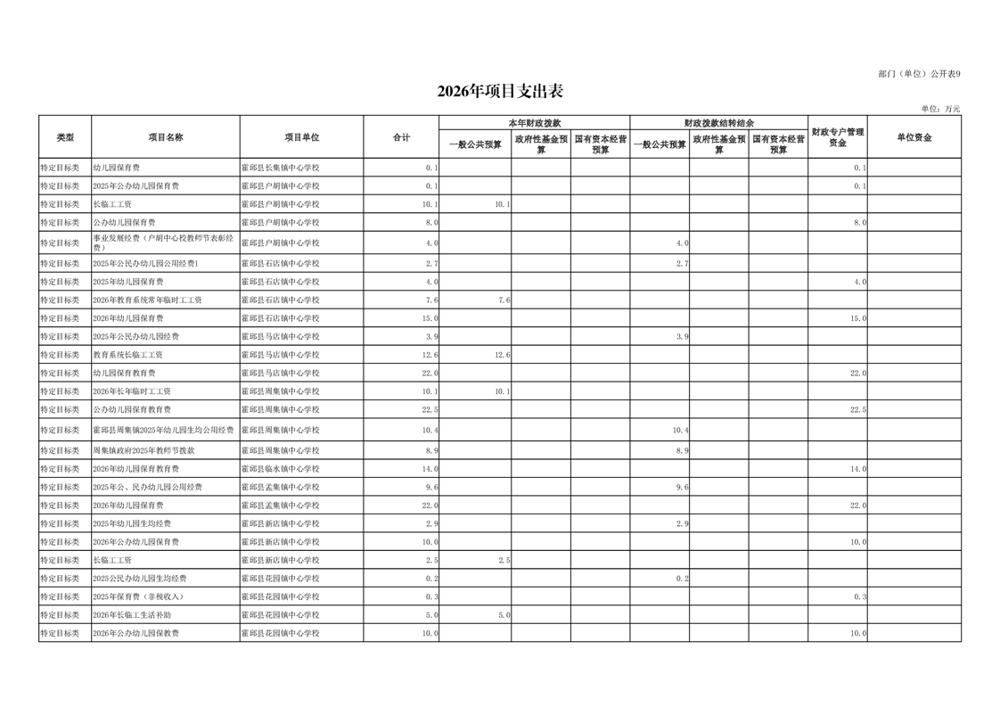 霍邱县教育局2026年部门预算公开