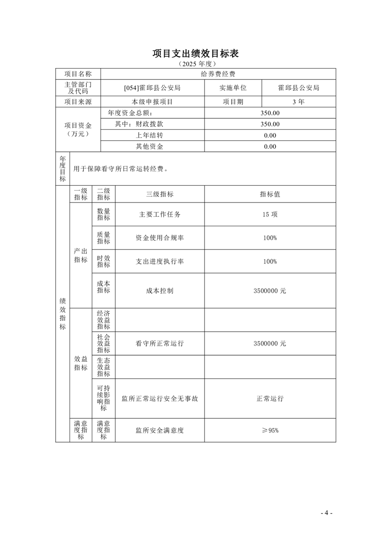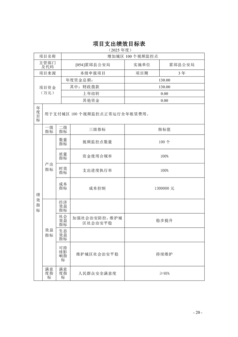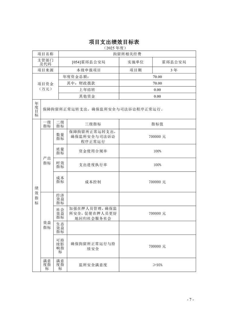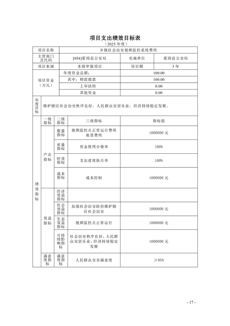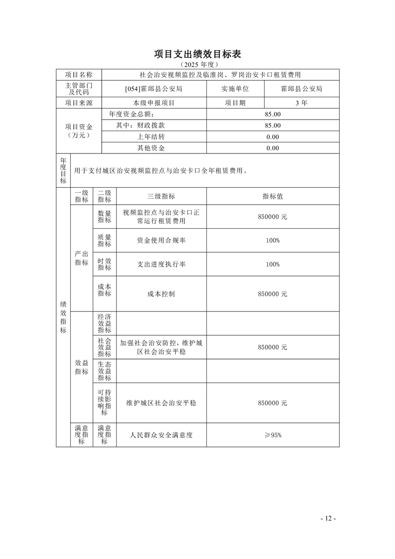 霍邱县公安局(本级)2025年单位项目支出绩效目标公开