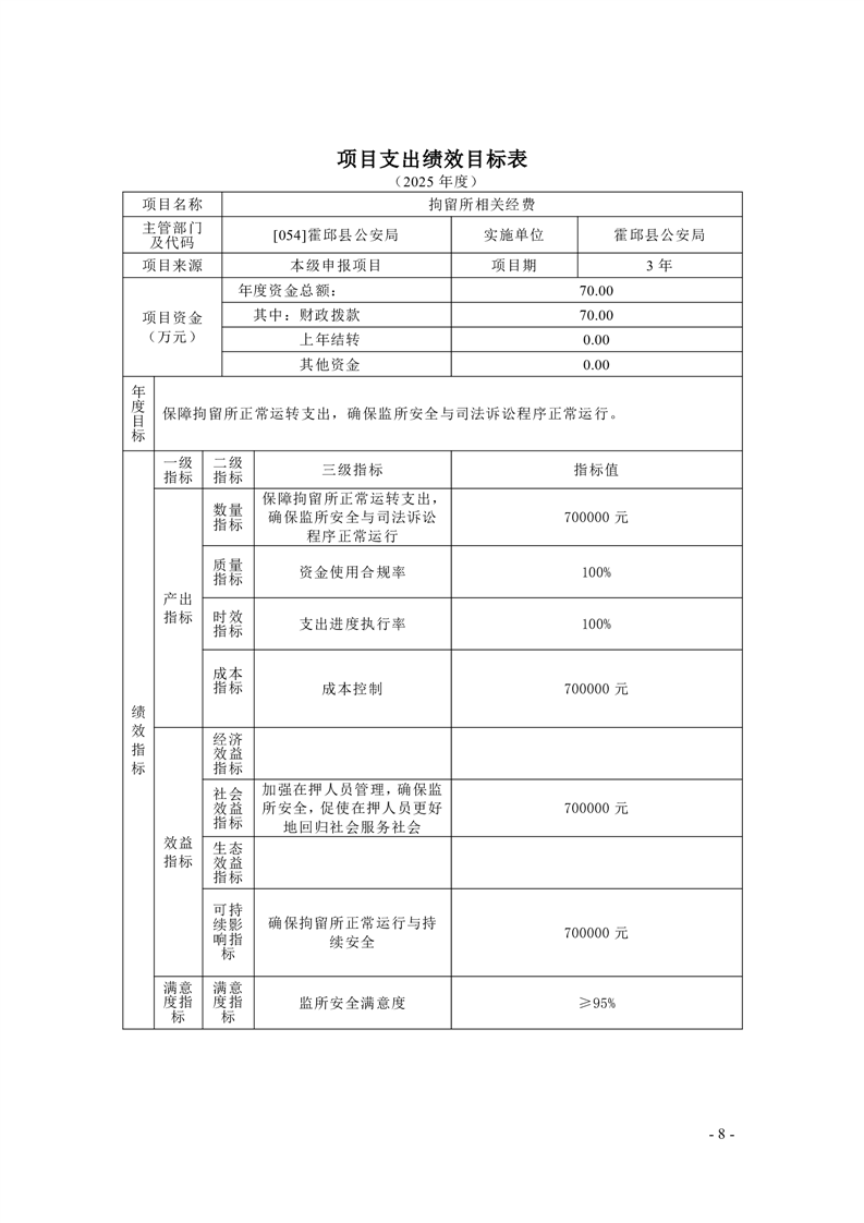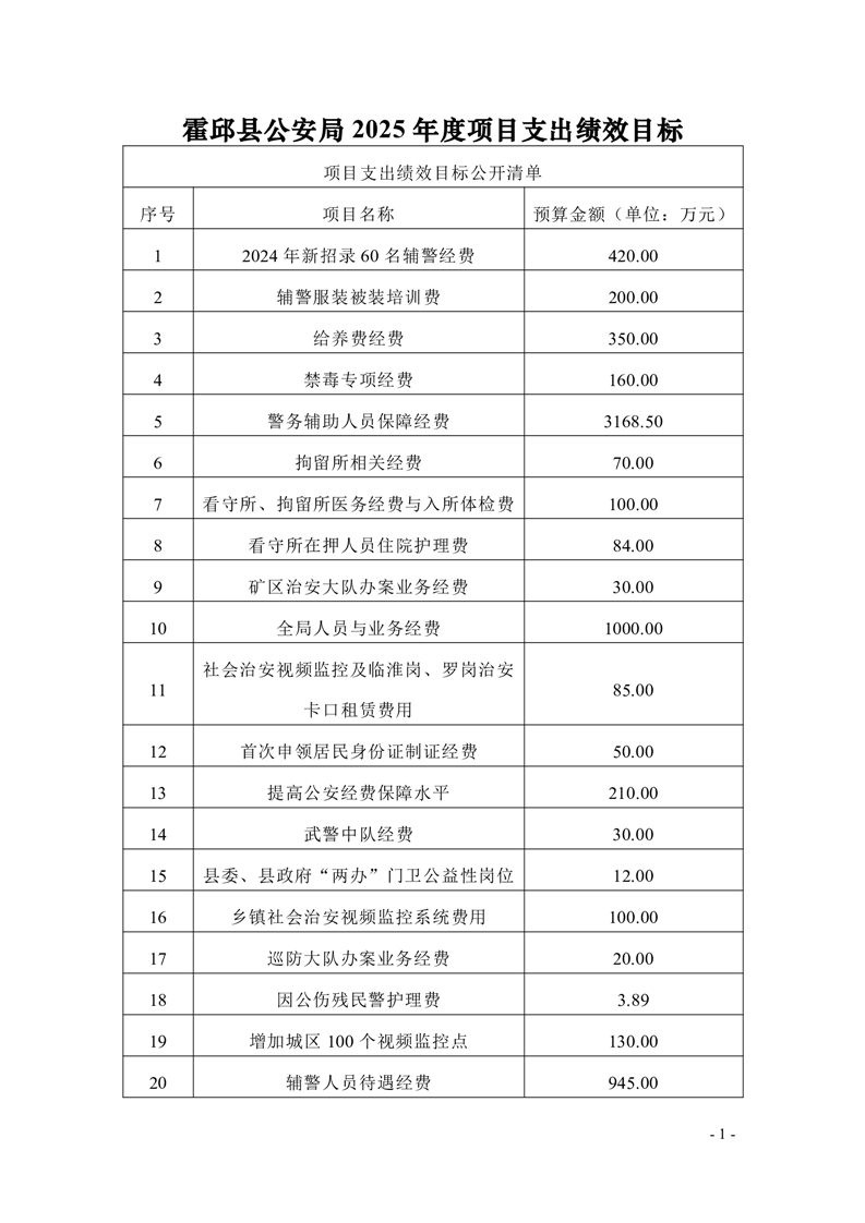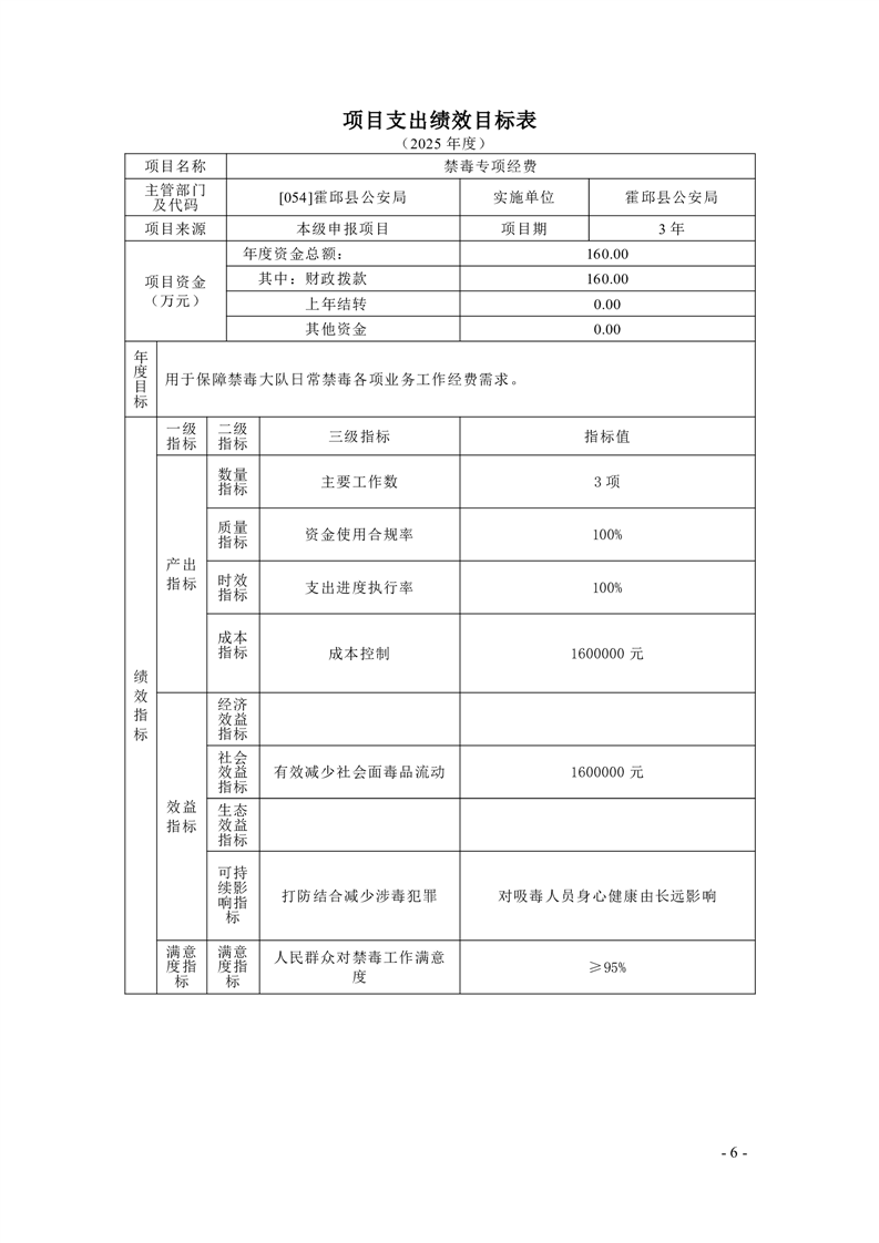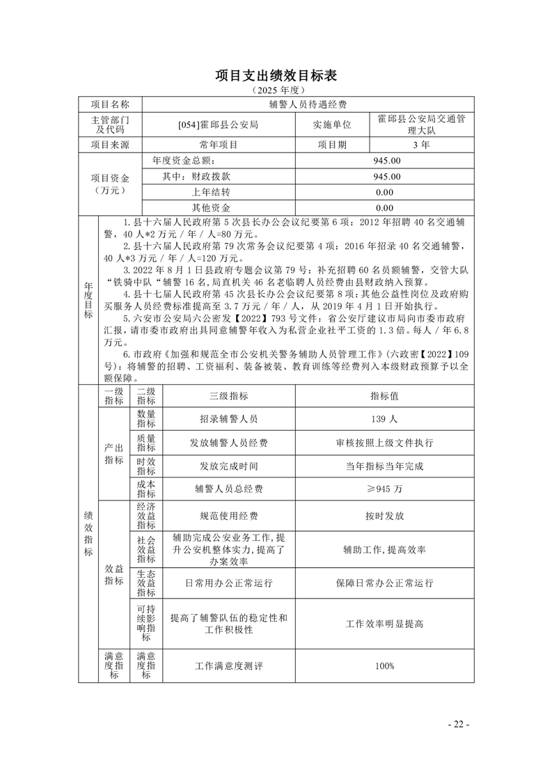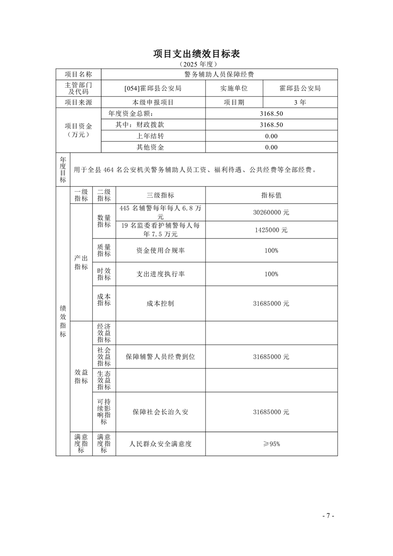 霍邱县公安局2025年部门项目支出绩效目标公开