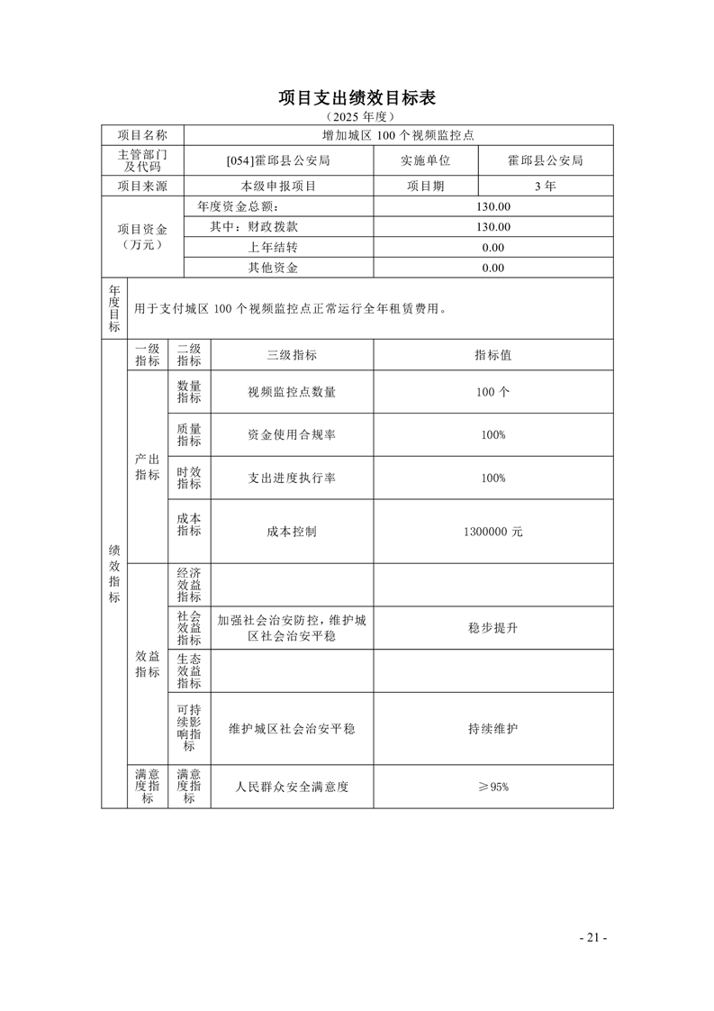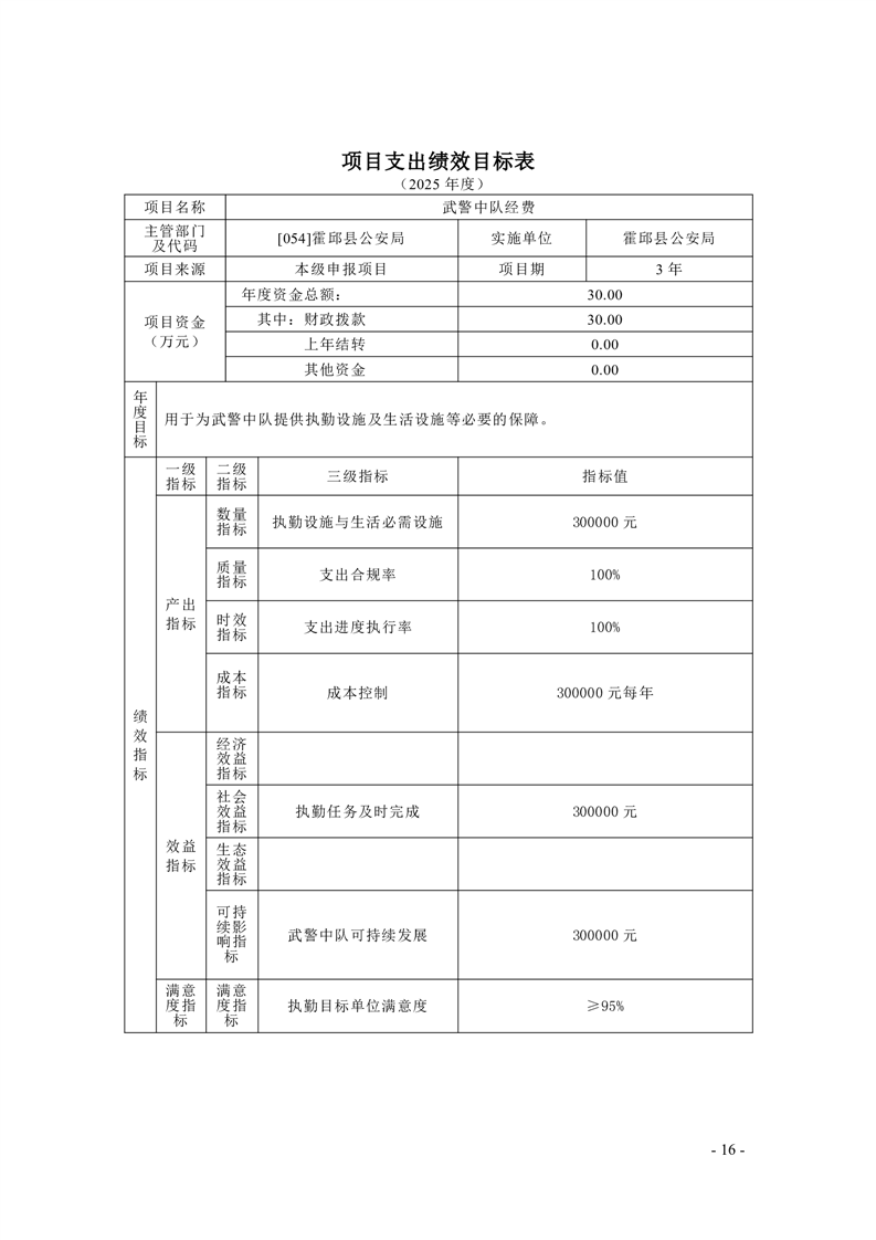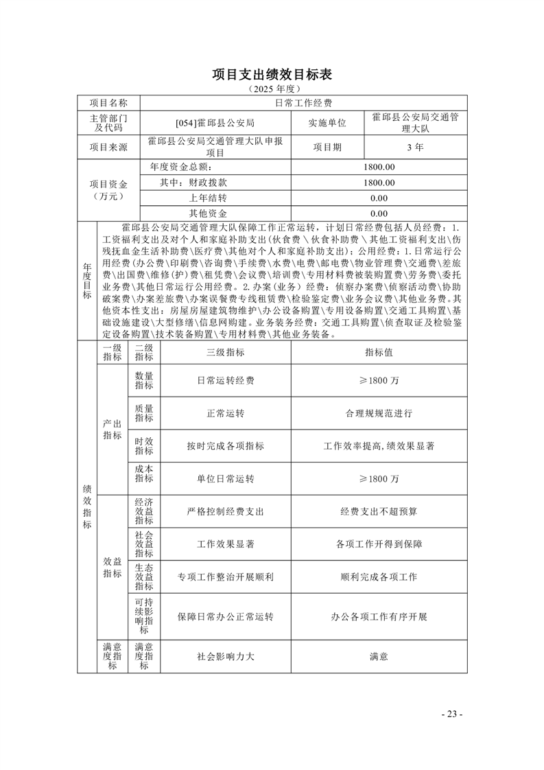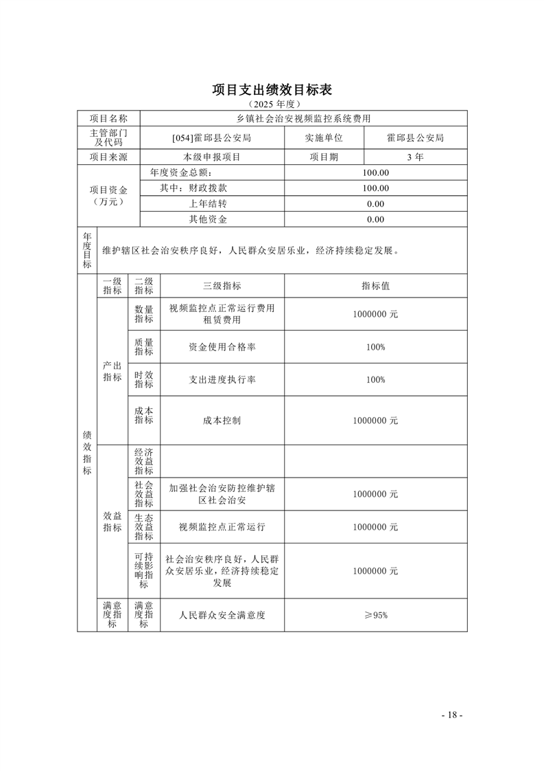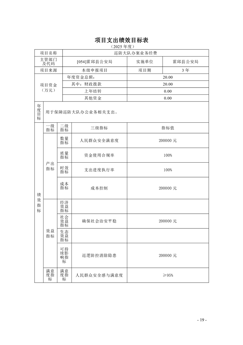 霍邱县公安局2025年部门项目支出绩效目标公开