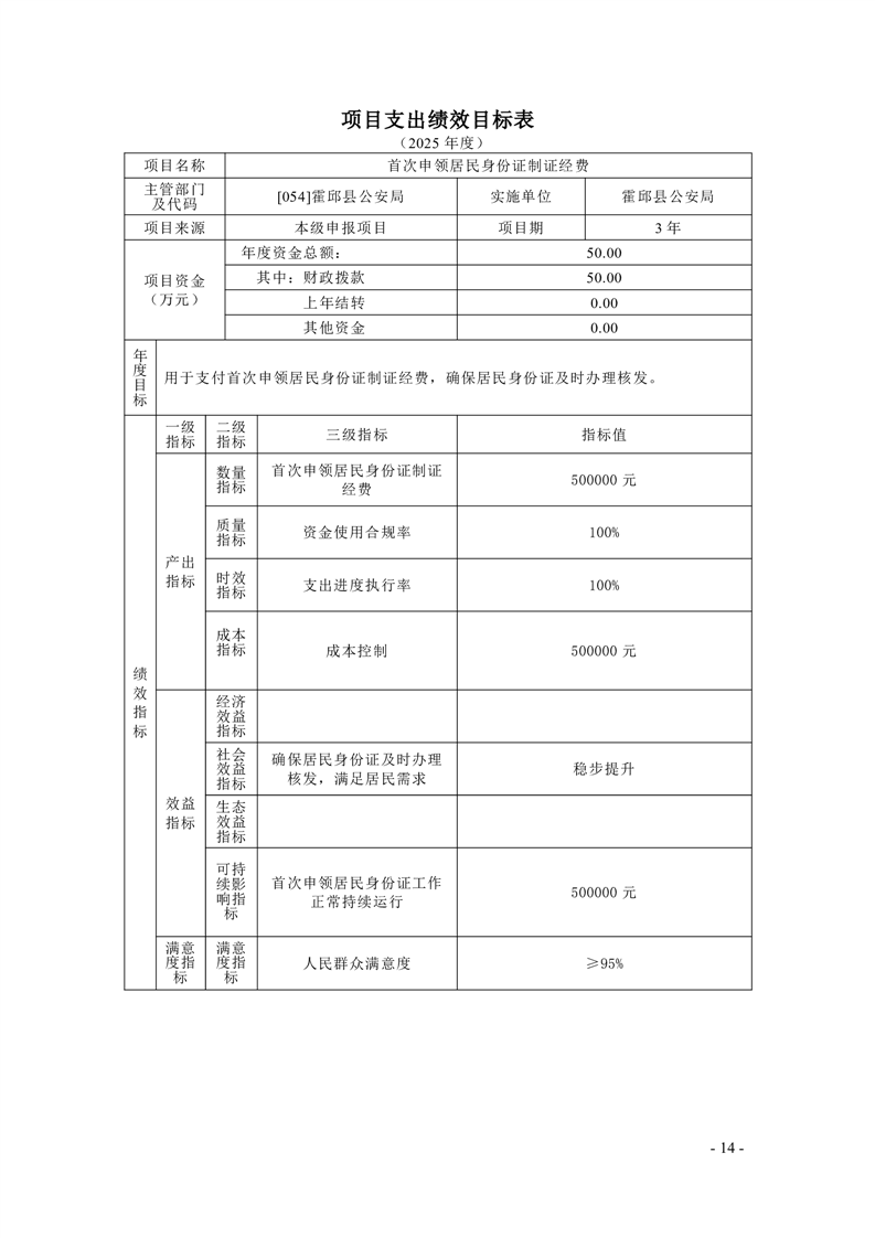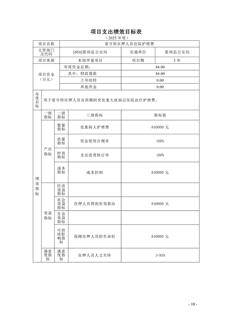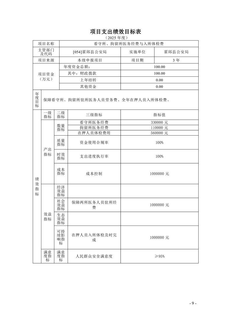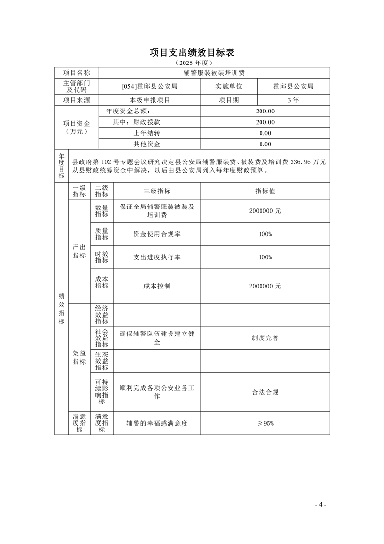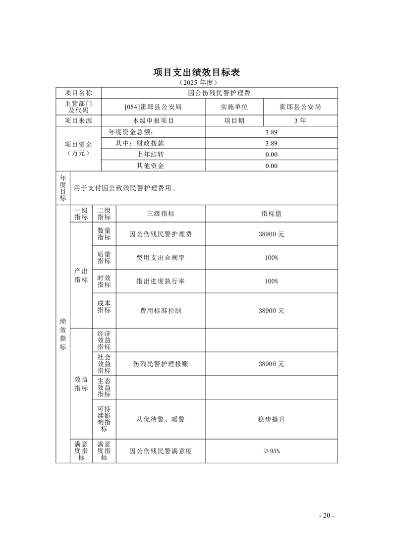 霍邱县公安局2025年部门项目支出绩效目标公开