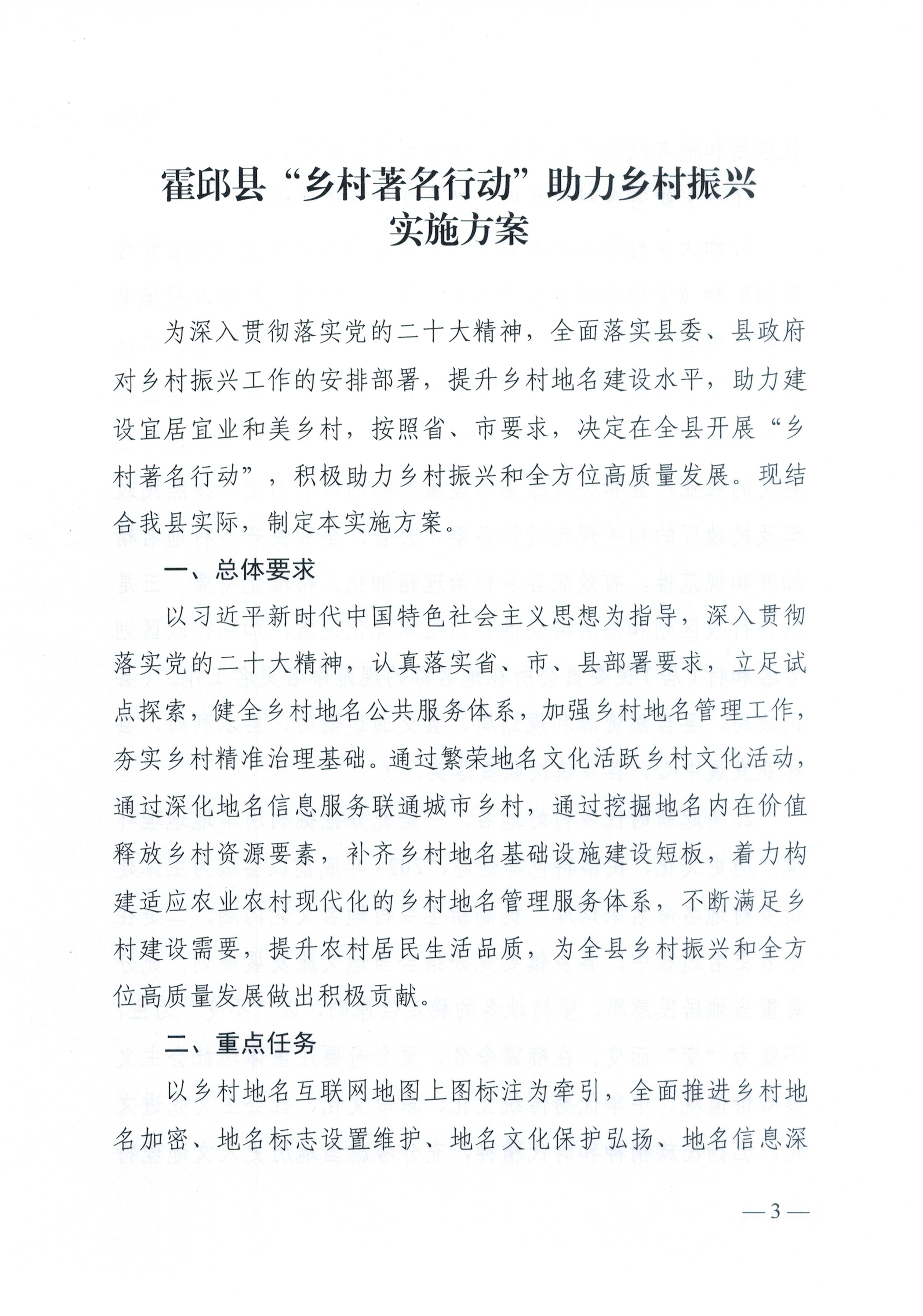 霍邱县“乡村著名行动”助力乡村振兴实施方案