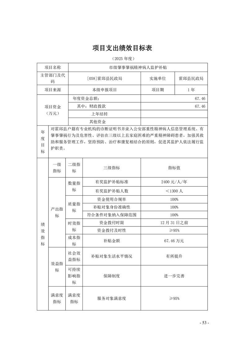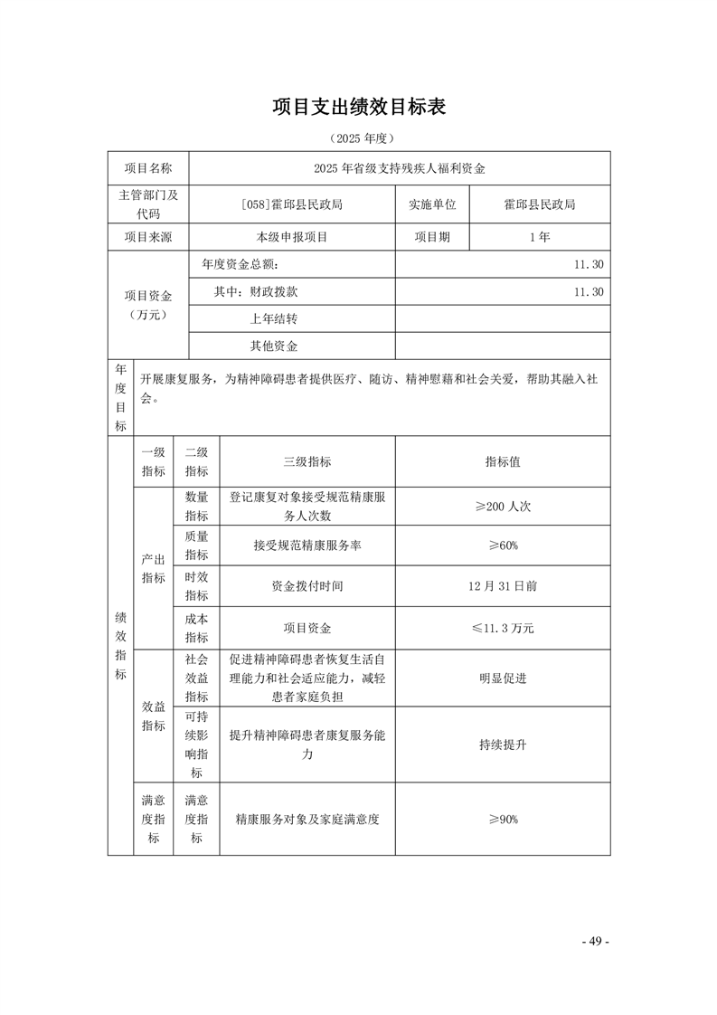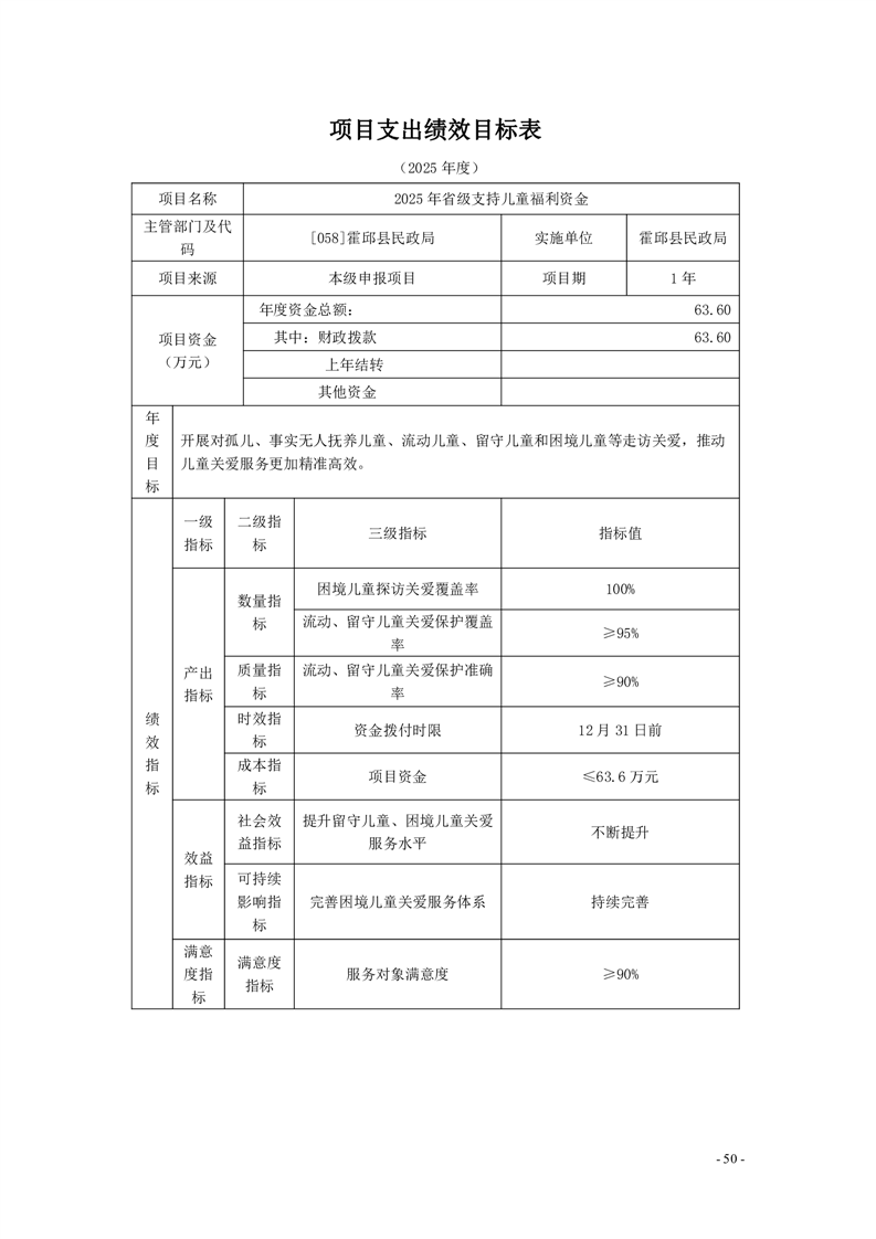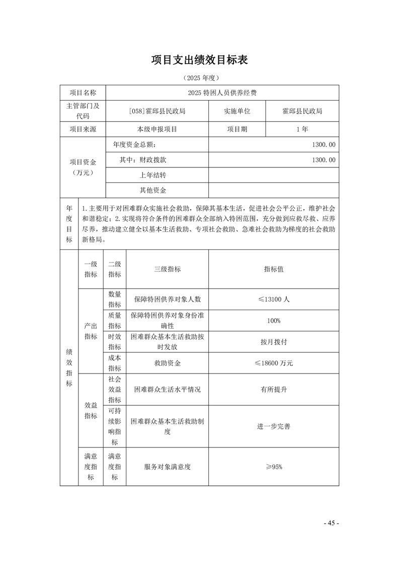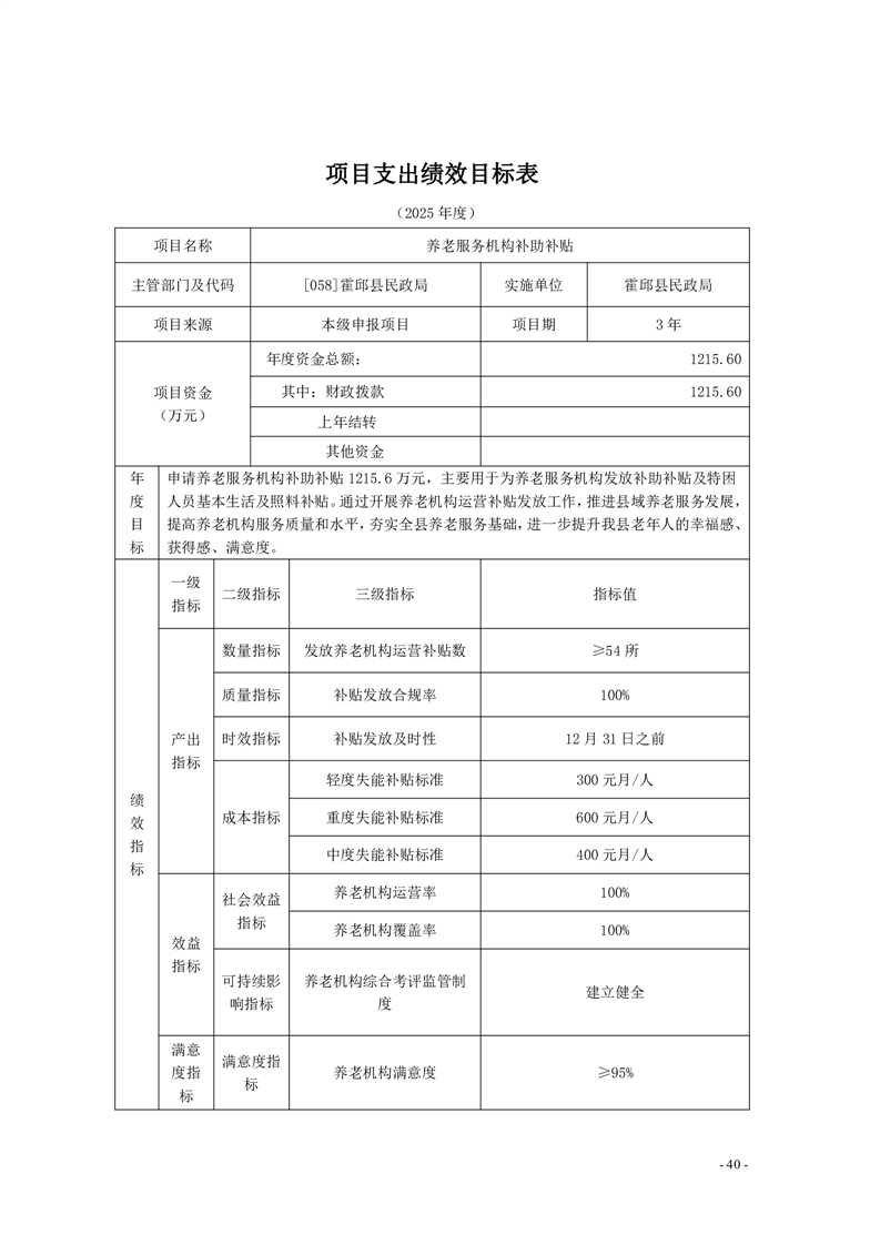 霍邱县民政局2025年部门项目支出绩效目标表