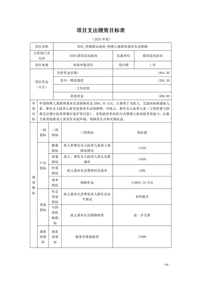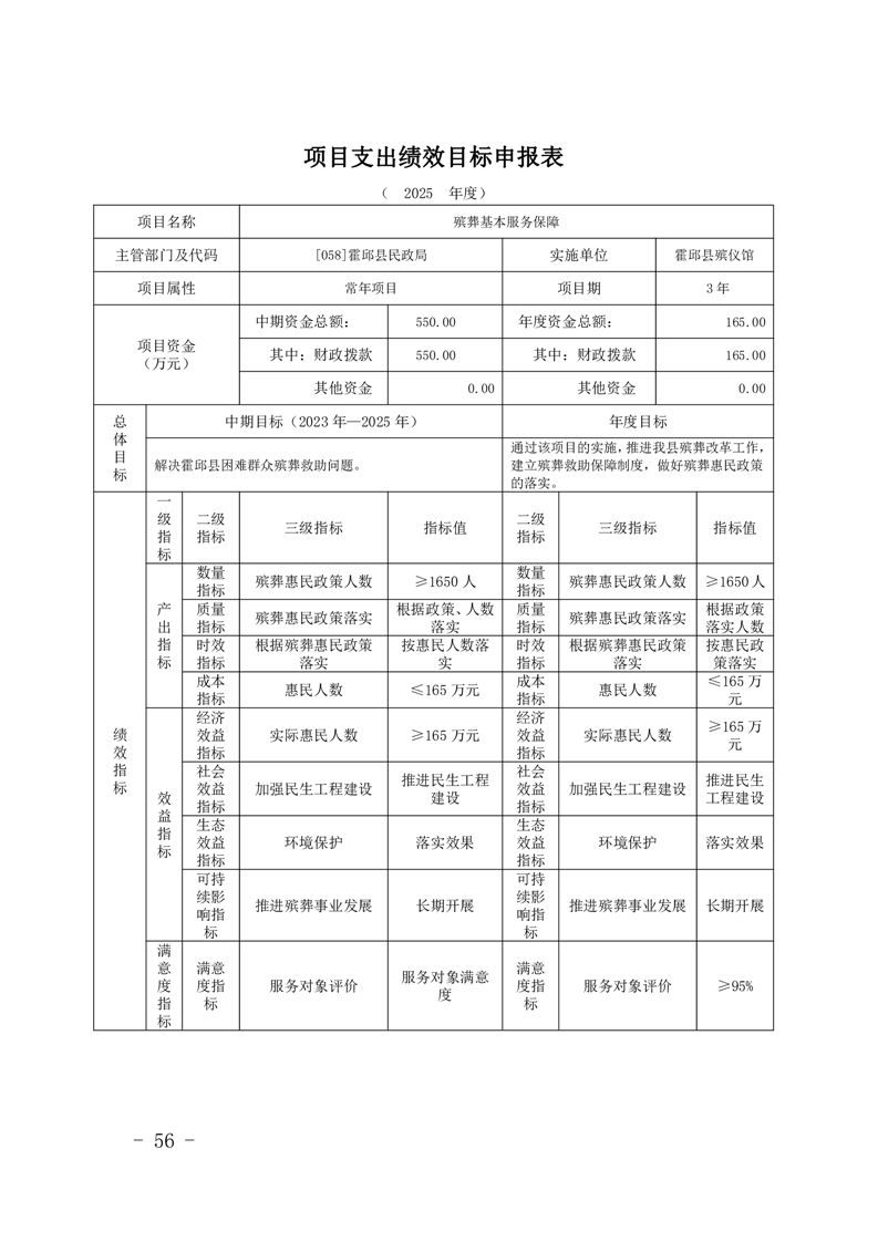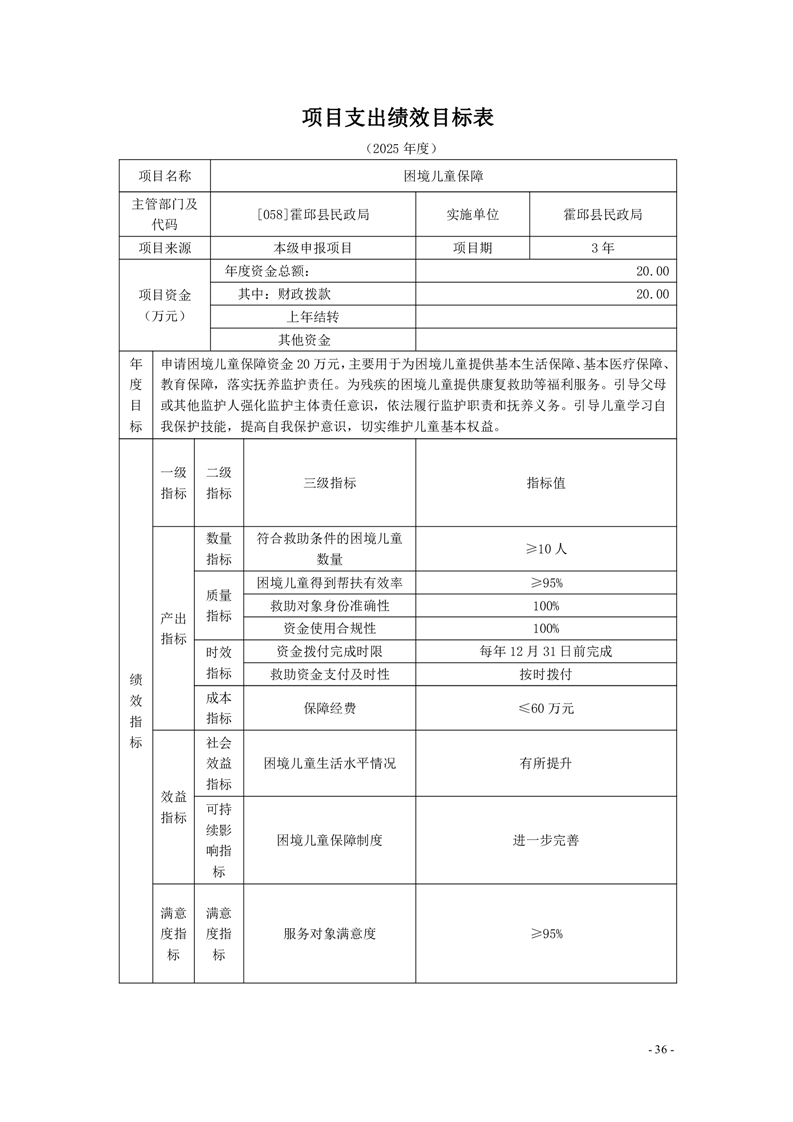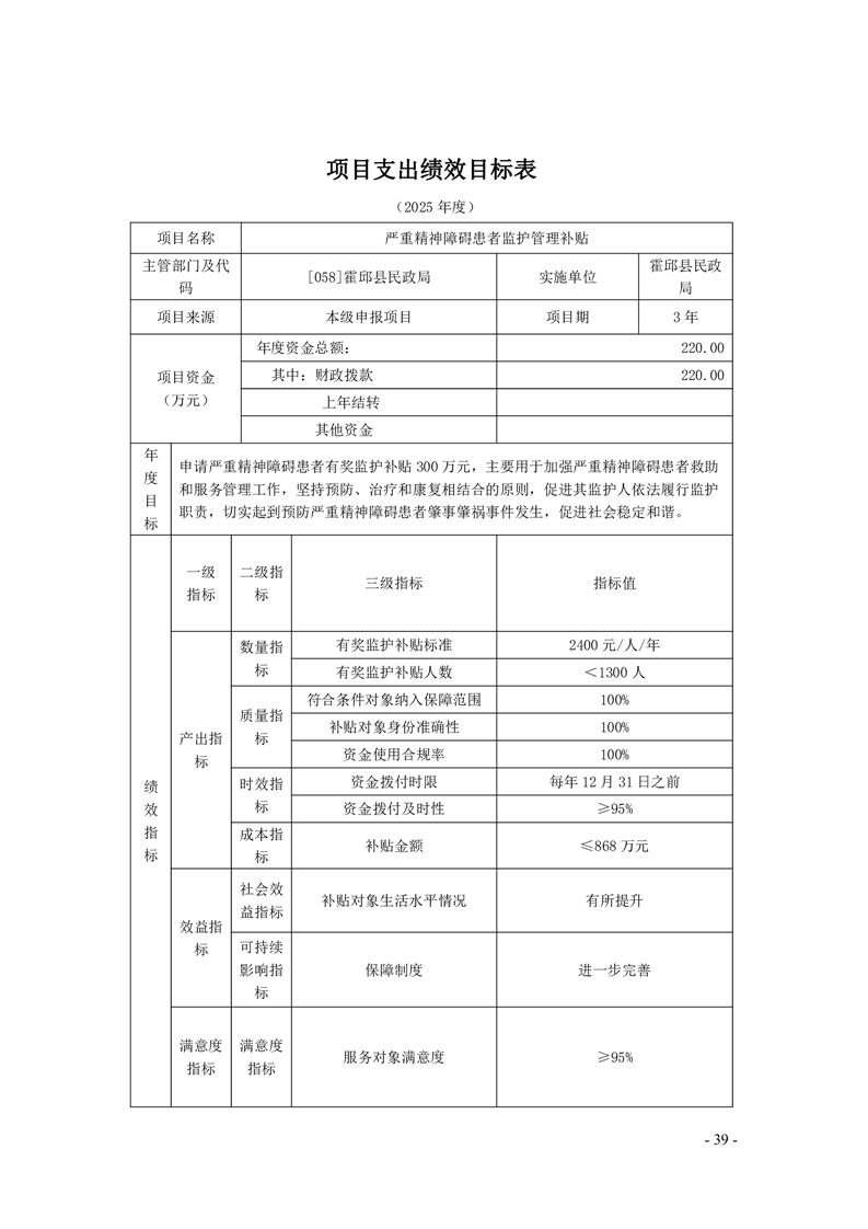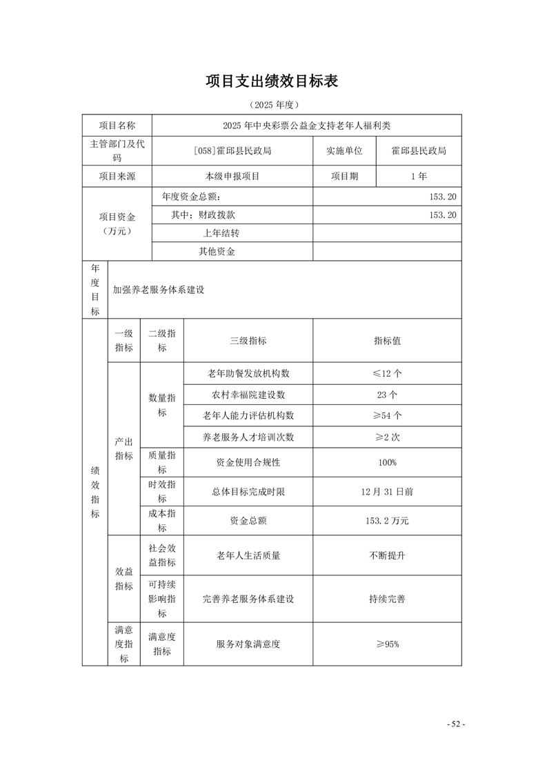 霍邱县民政局2025年部门项目支出绩效目标表