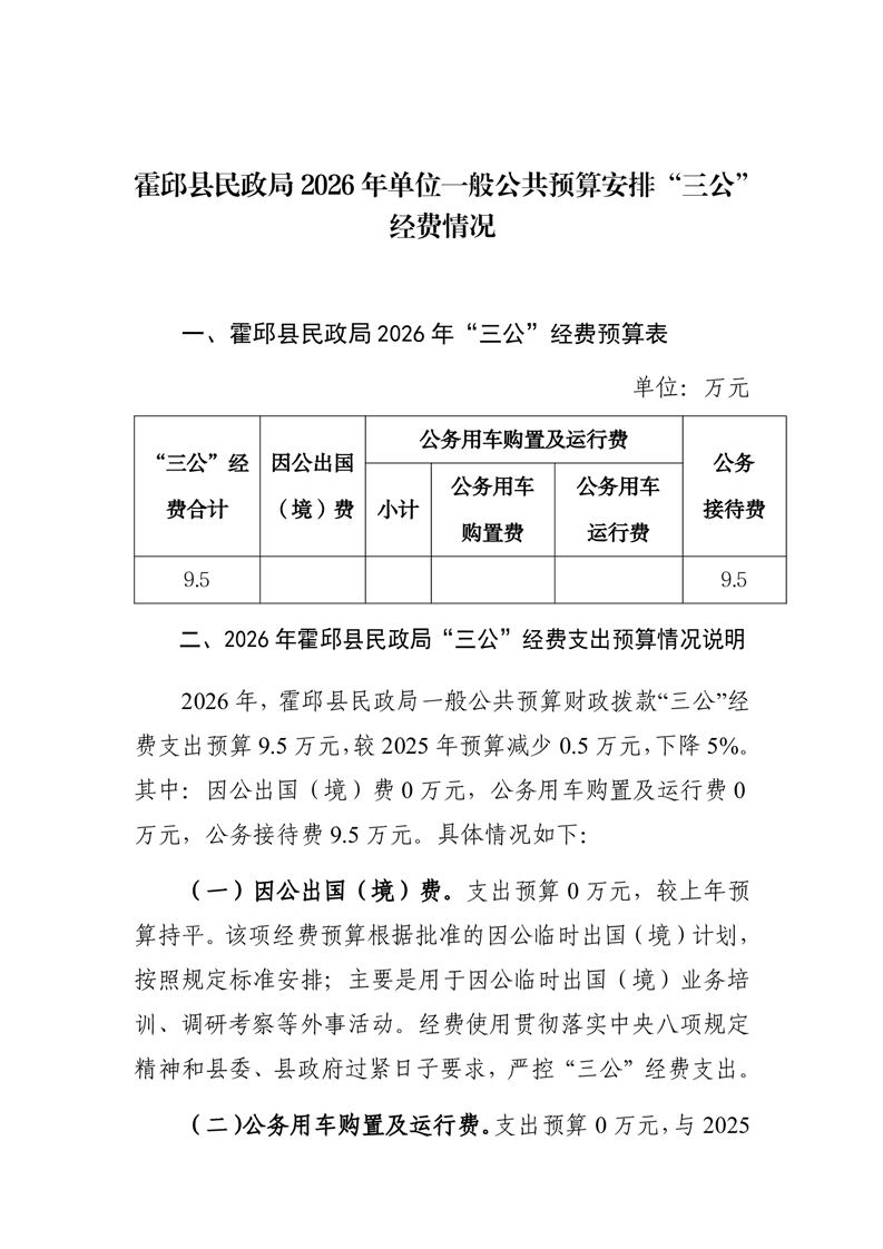 霍邱县民政局2026年单位一般公共预算安排“三公”经费情况