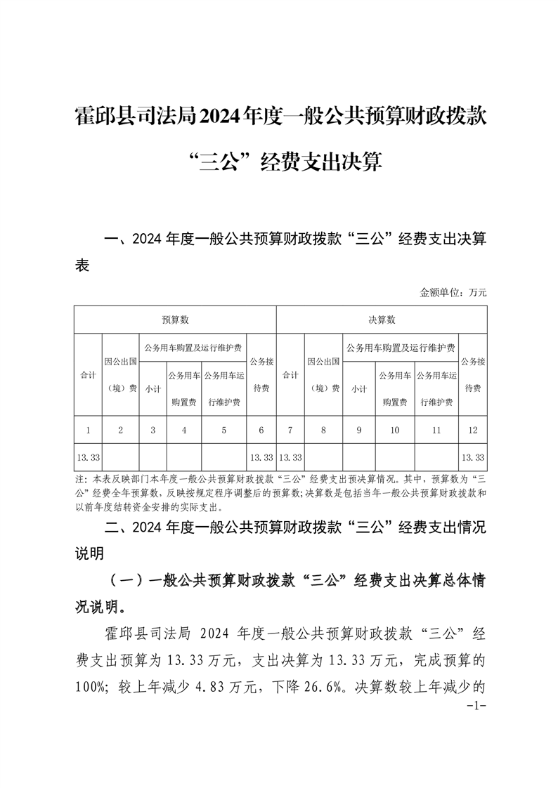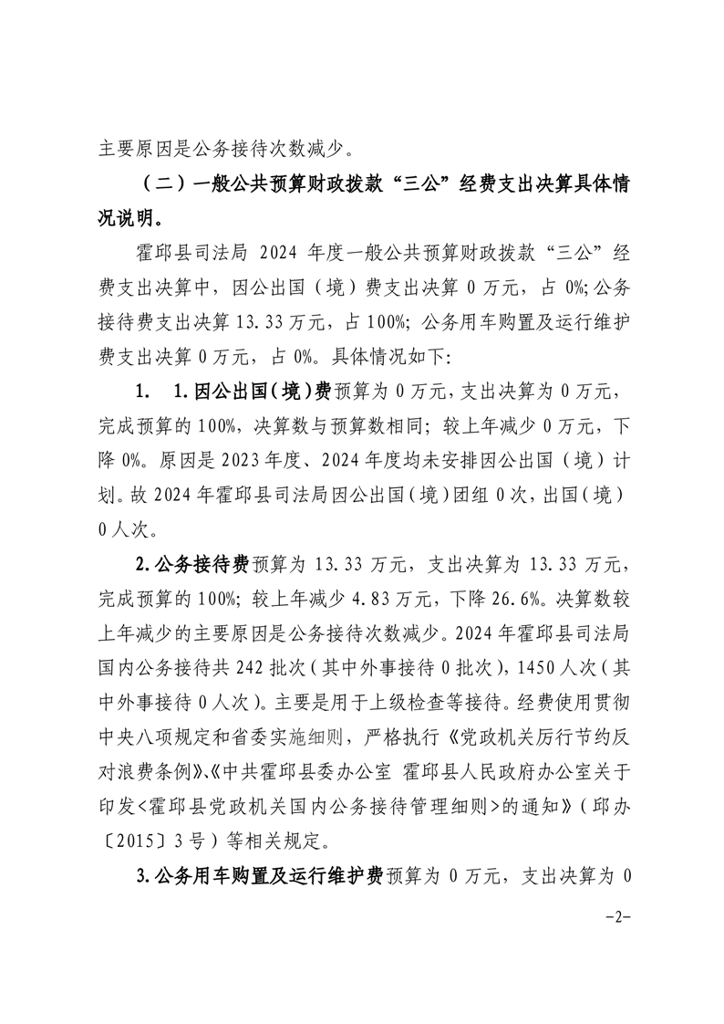 霍邱县司法局2024年度一般公共预算财政拨“三公”经费支出决算