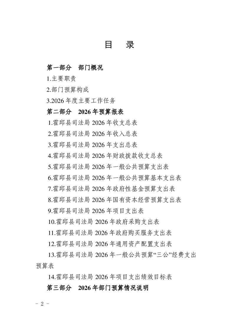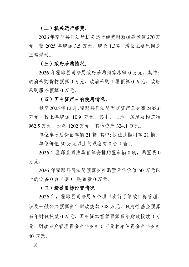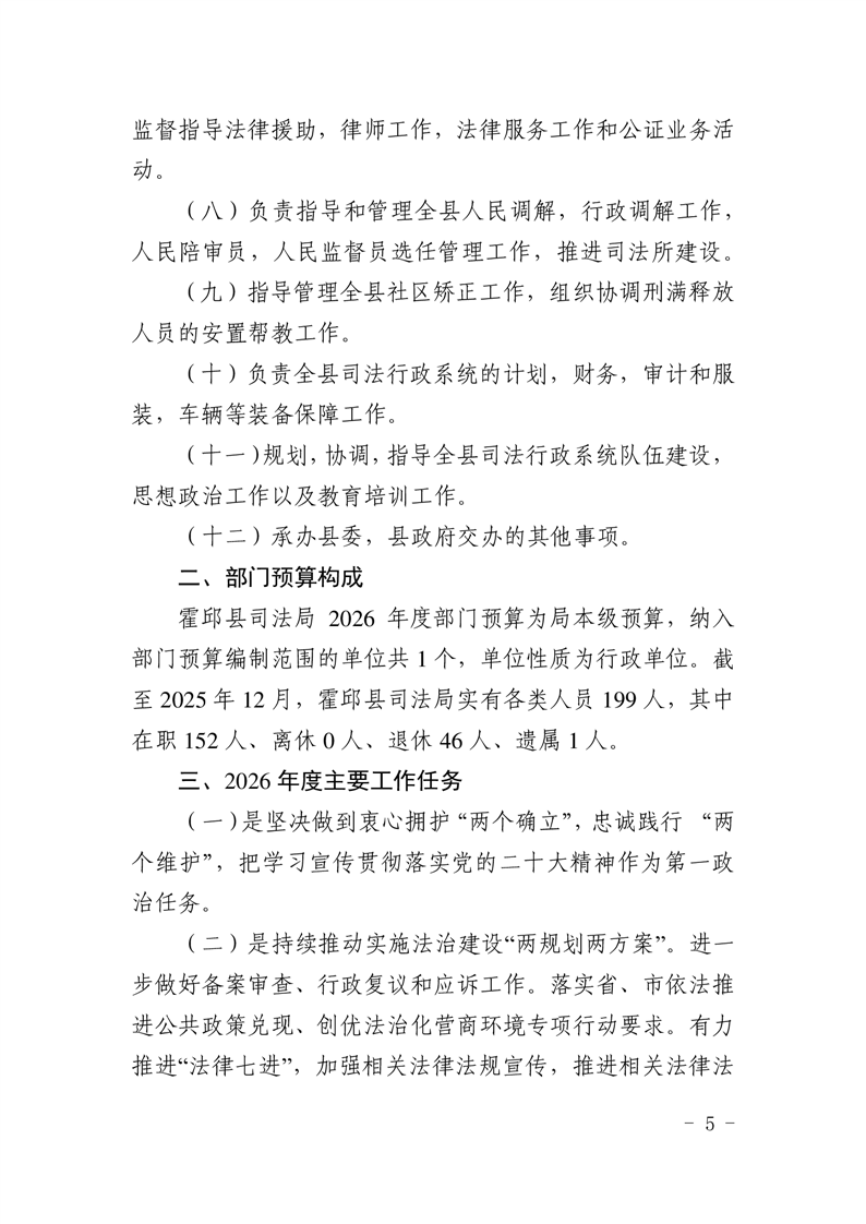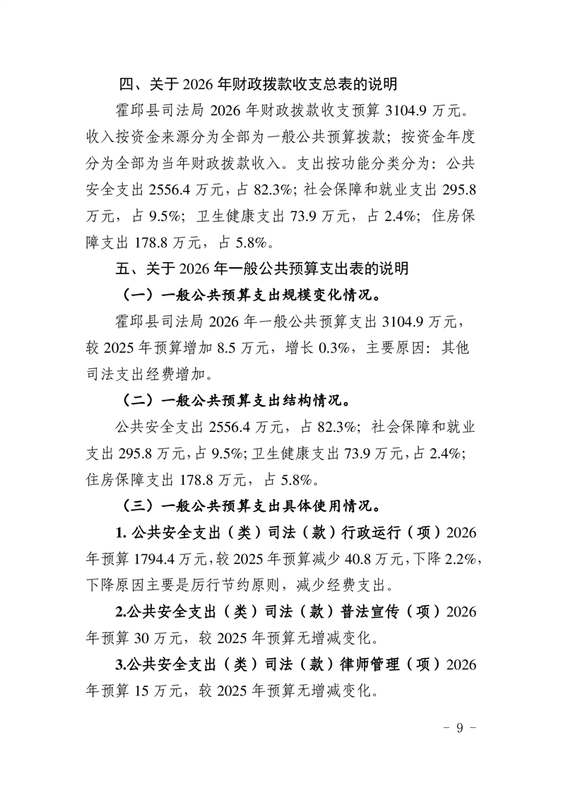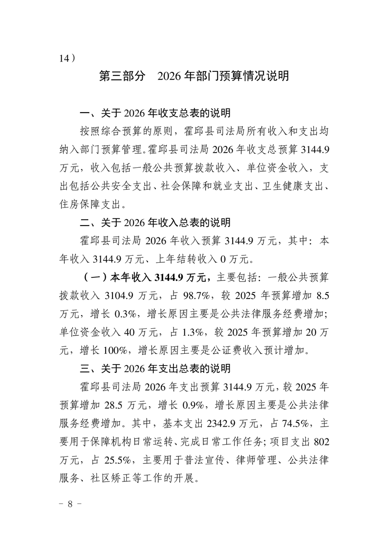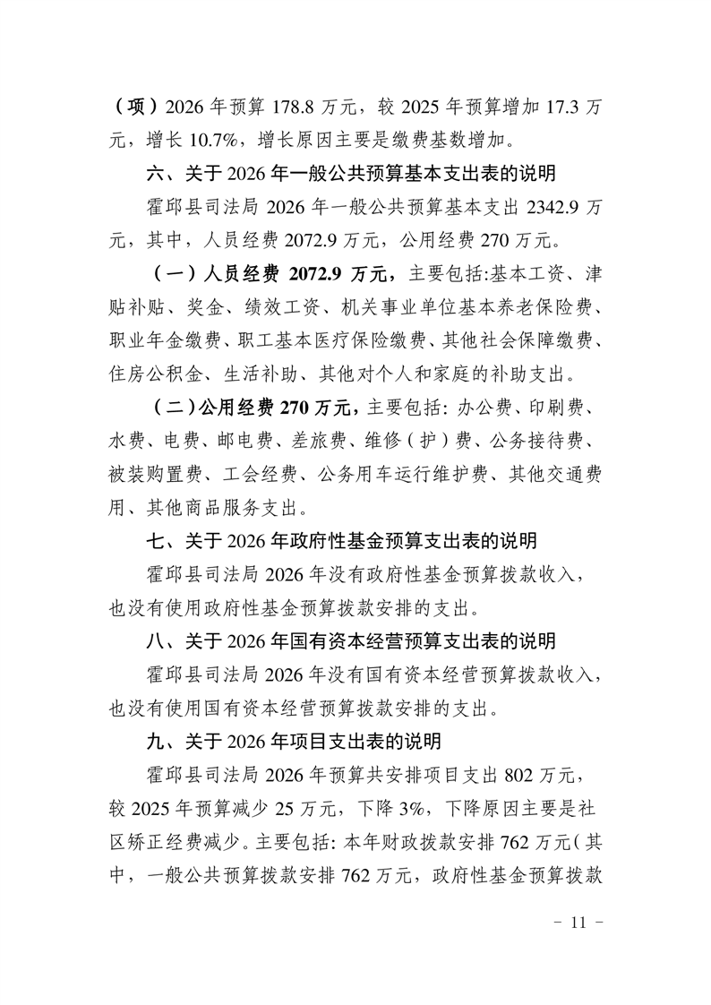 2026年霍邱县司法局预算公开