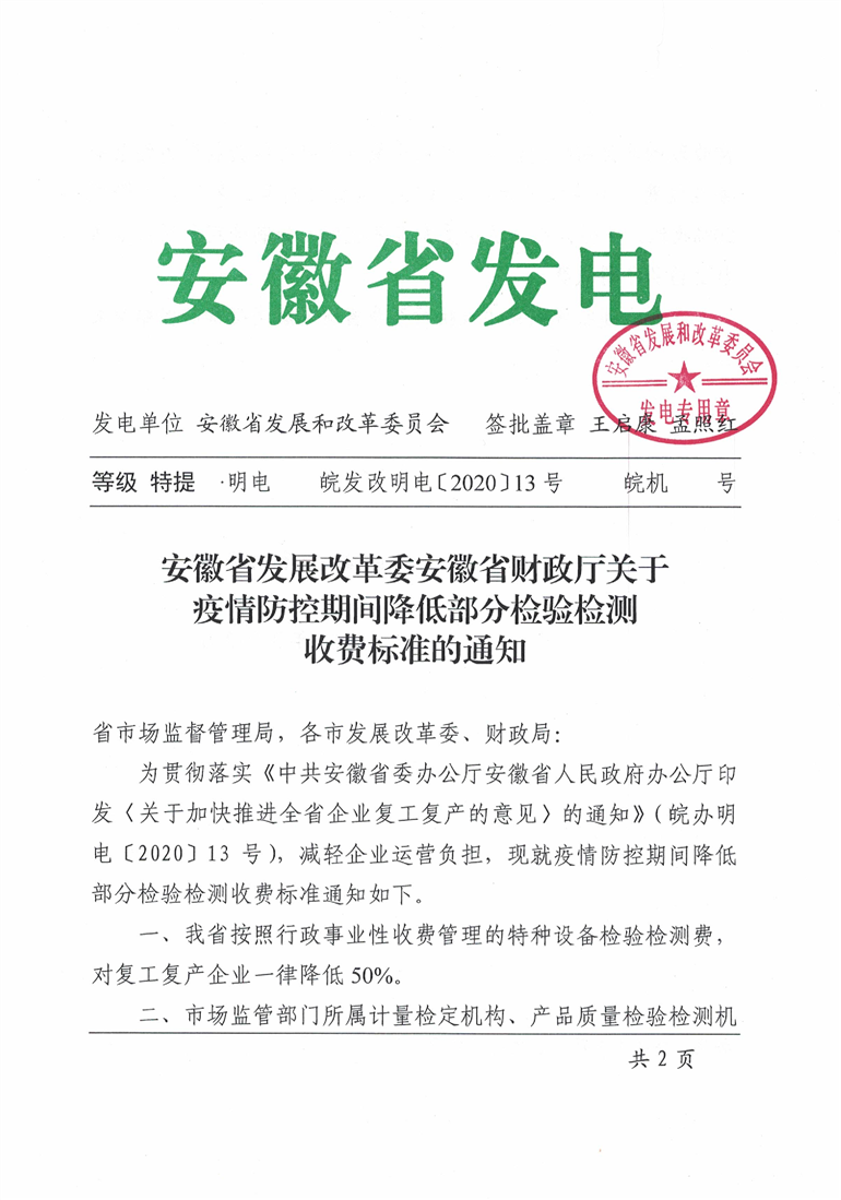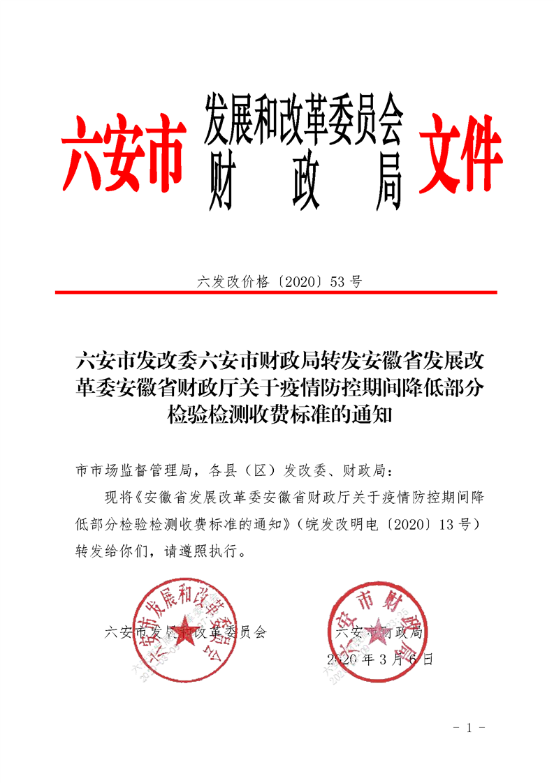 六安市发改委六安市财政局转发安徽省发展改革委安徽省财政厅关于疫情防控期间降低部分检验检测收费标准的通知
