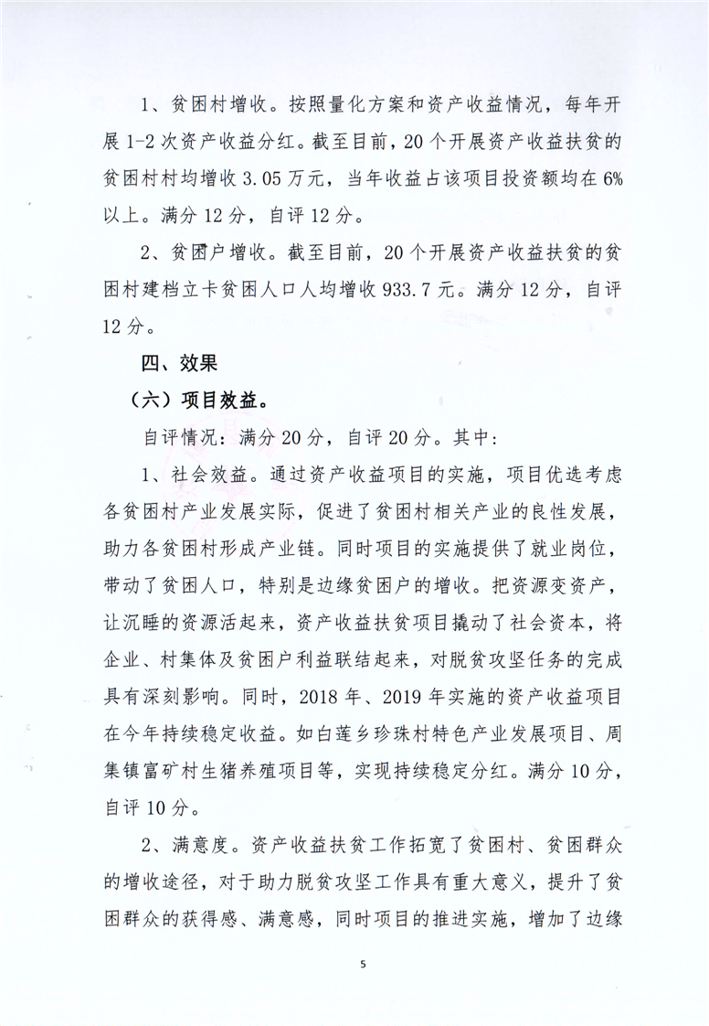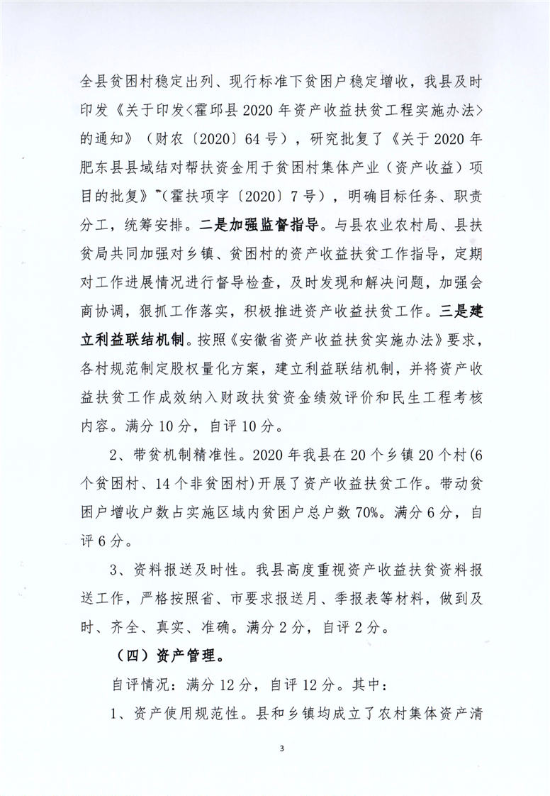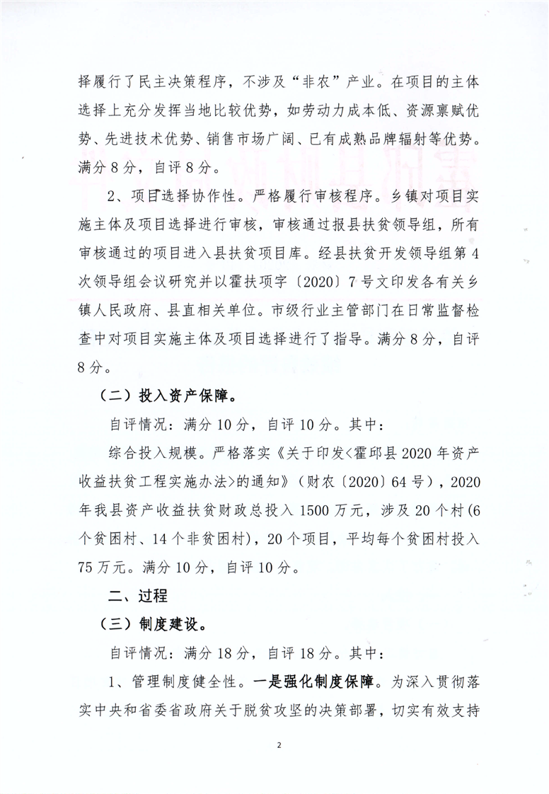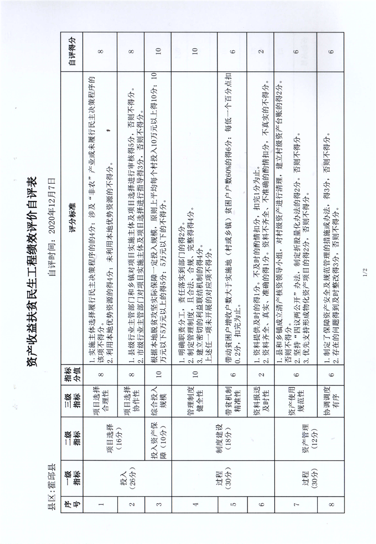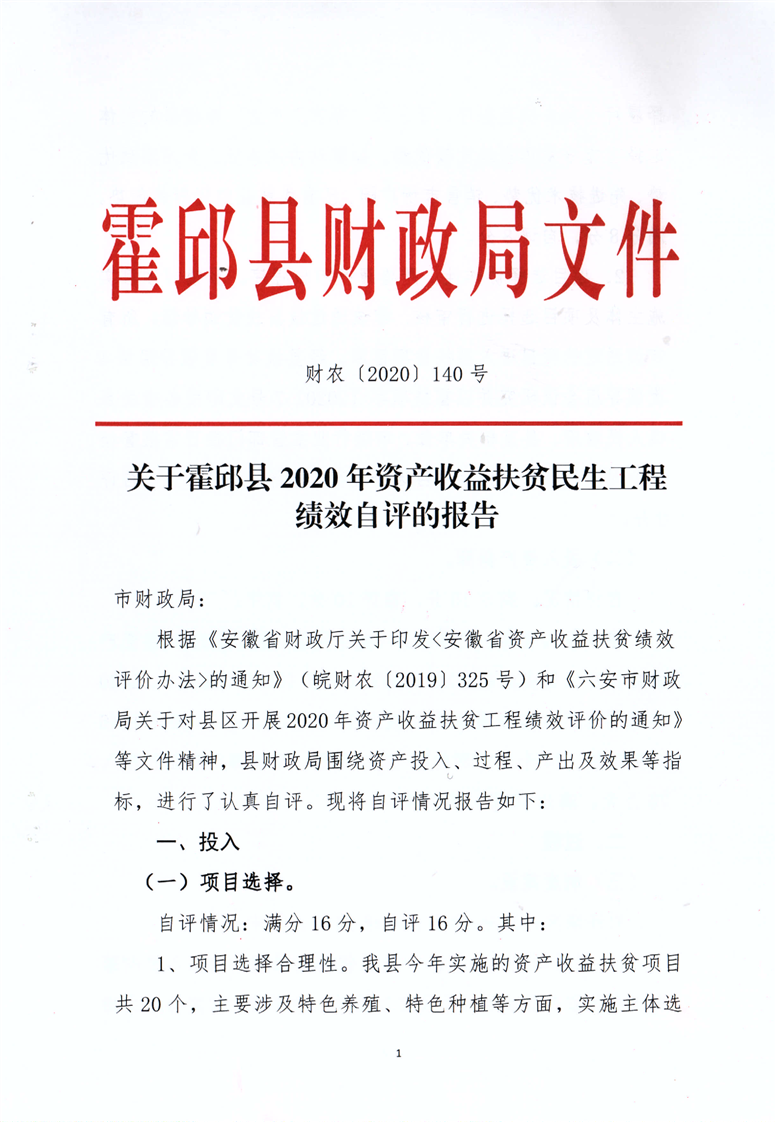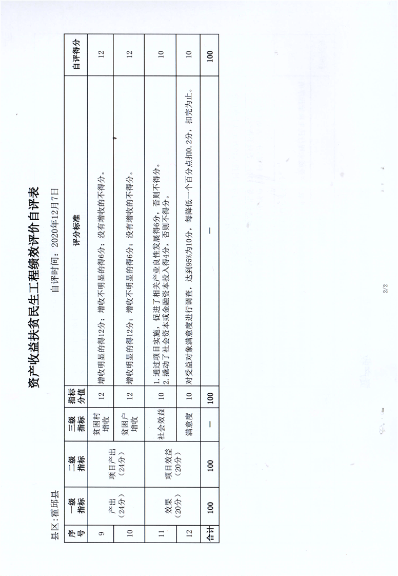 霍邱县2020年资产收益扶贫民生工程绩效自评报告