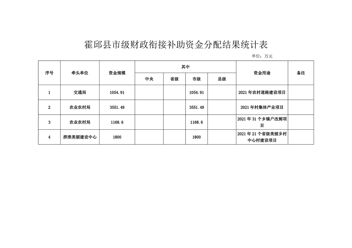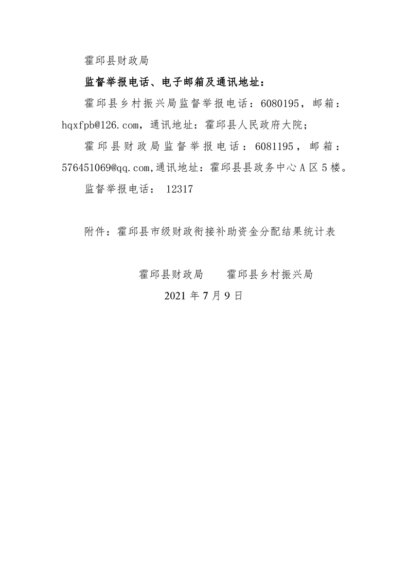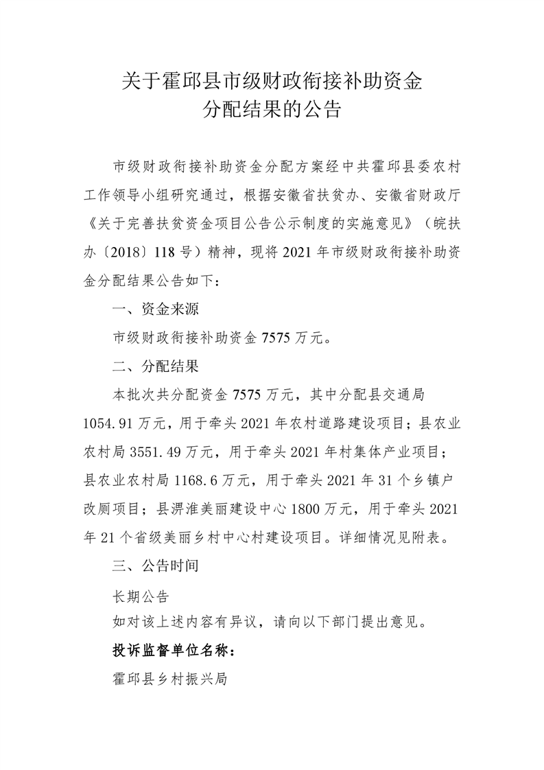关于霍邱县市级财政衔接补助资金分配结果的公告9175(7575)