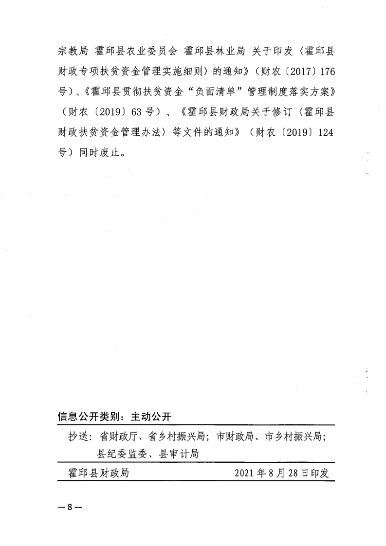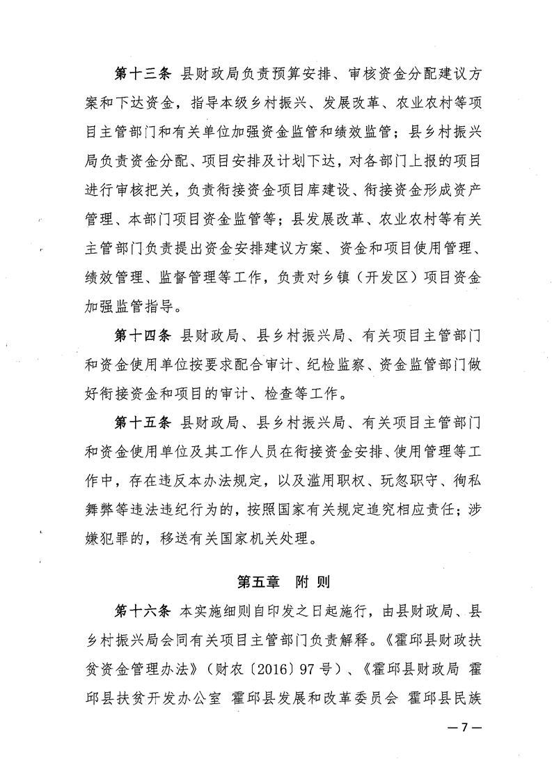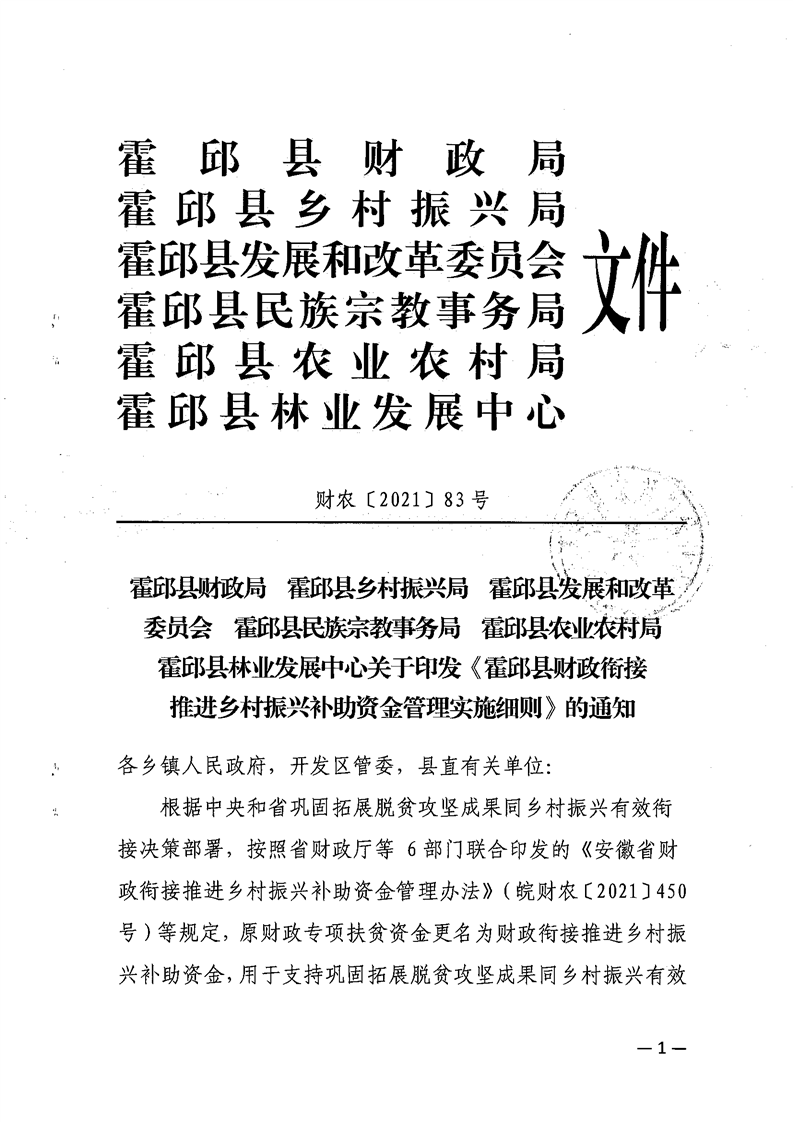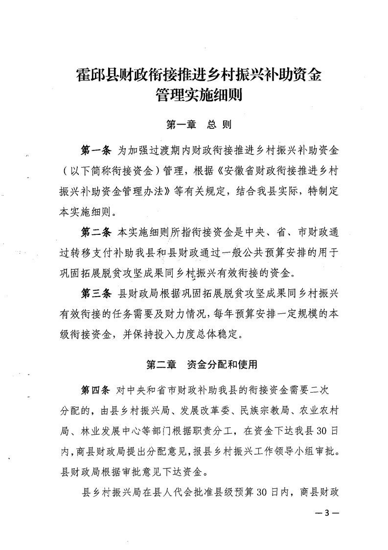 关于印发《霍邱县财政衔接推进乡村振兴补助资金管理实施细则》的通知