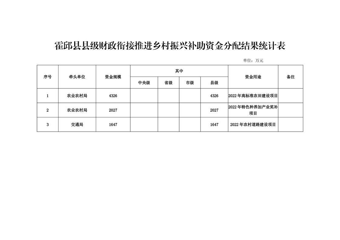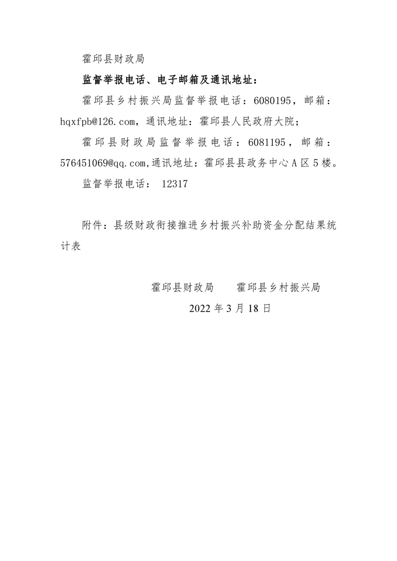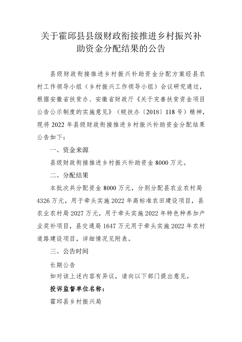 关于霍邱县县级财政衔接补助资金分配结果的公告8000